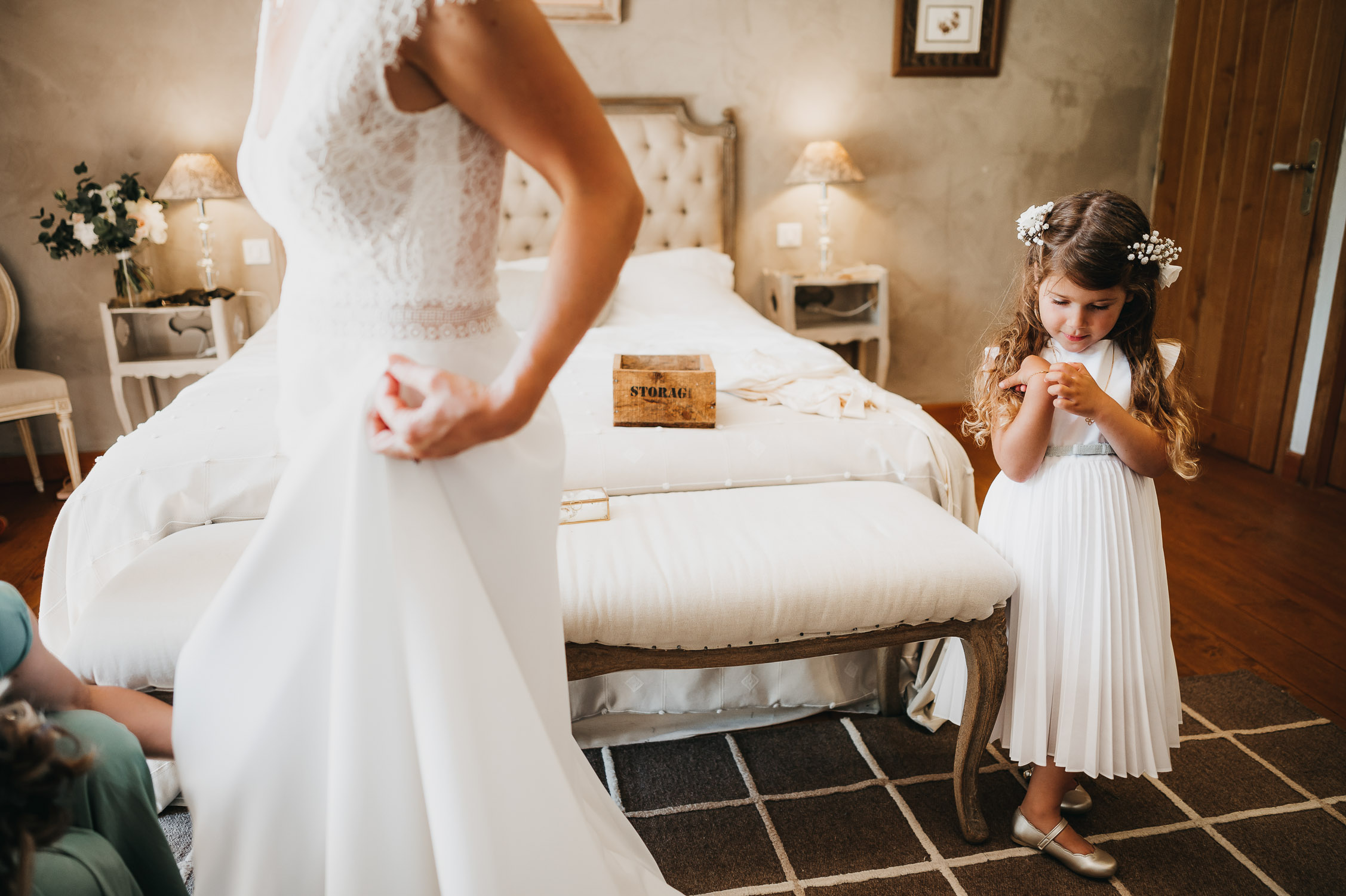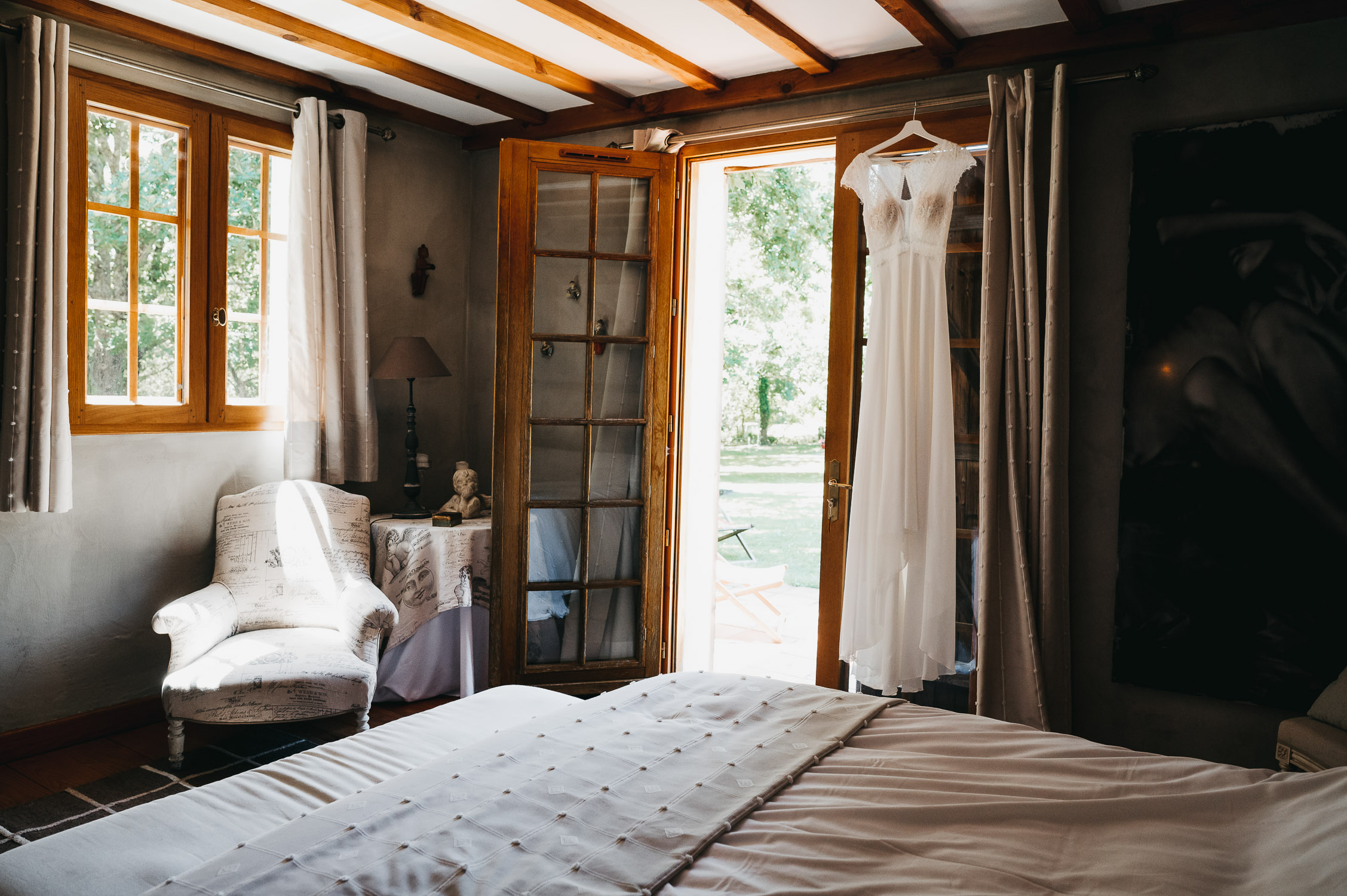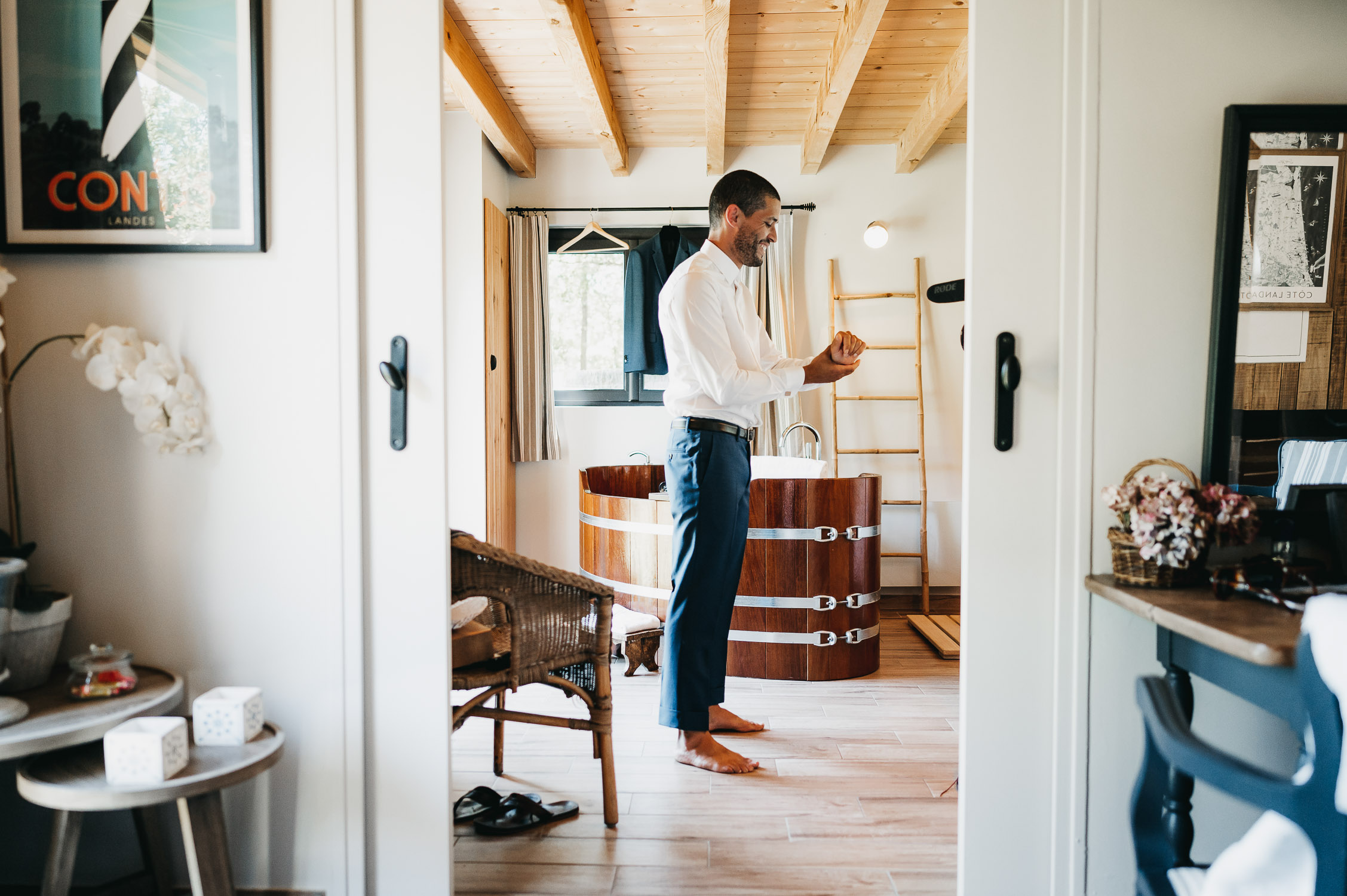 Je vous embarque avec moi, direction les landes ! Pour un mariage au Domaine de Petiosse. Avant de rentrer dans le vif du sujet, laissez-moi vous raconter la rencontre avec les mariés, Marion & Robin. Si ma mémoire est bonne, Marion m’a contacté à la fin du premier confinement. Elle attendait son deuxième enfant, Augustin. J’ai figé les premiers jours de vie de leur petit garçon, en famille, en mode « cocooning » dans leur ancien appartement bordelais.
