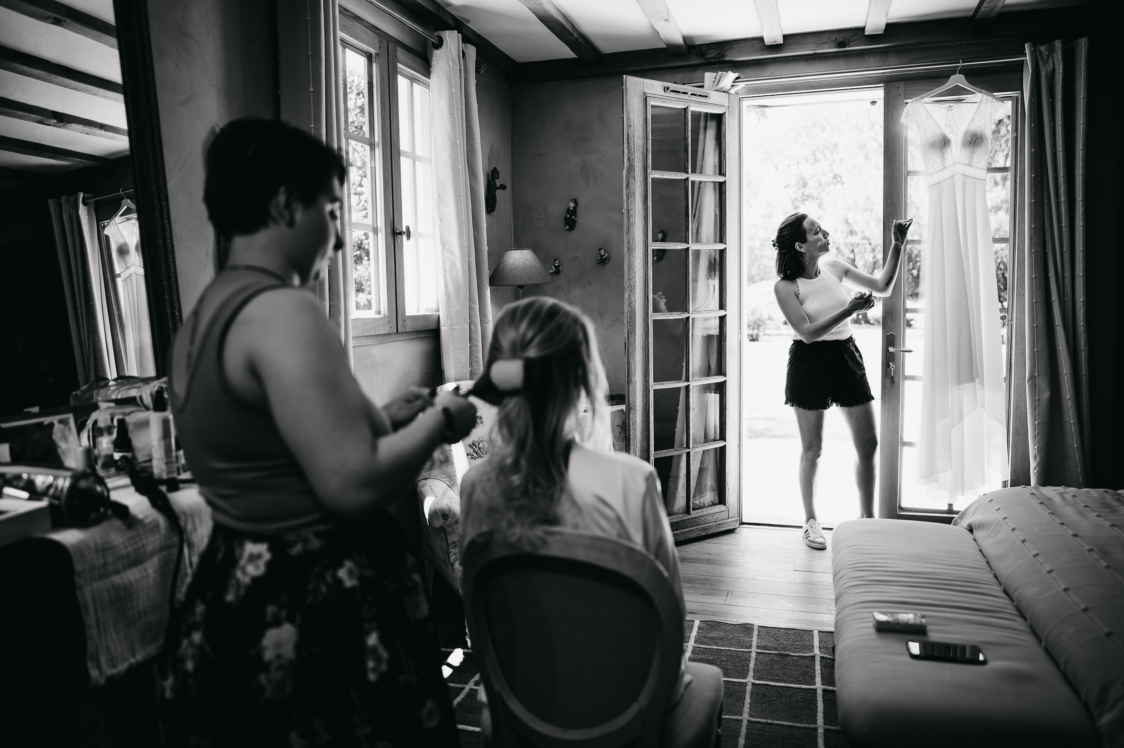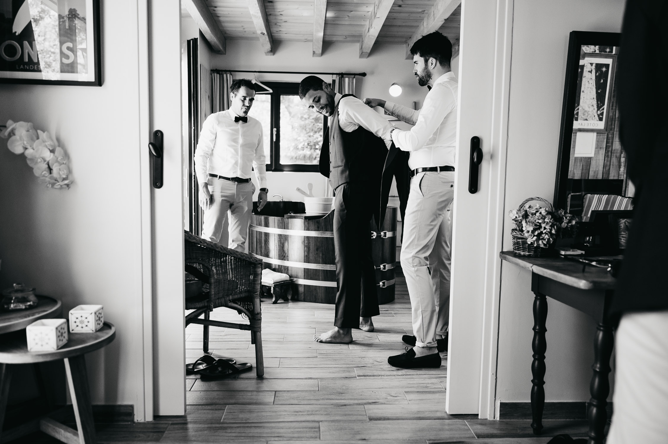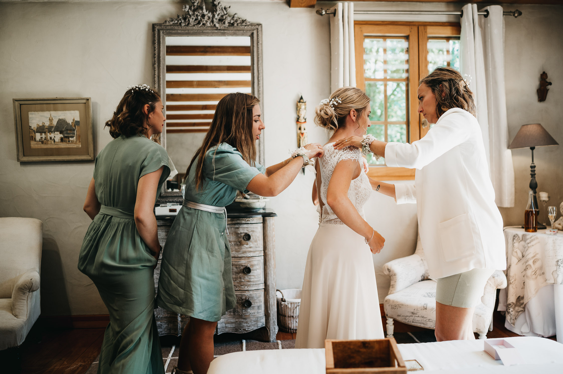 Je vous embarque avec moi, direction les landes ! Pour un mariage au Domaine de Petiosse. Avant de rentrer dans le vif du sujet, laissez-moi vous raconter la rencontre avec les mariés, Marion & Robin. Si ma mémoire est bonne, Marion m’a contacté à la fin du premier confinement. Elle attendait son deuxième enfant, Augustin. J’ai figé les premiers jours de vie de leur petit garçon, en famille, en mode « cocooning » dans leur ancien appartement bordelais.