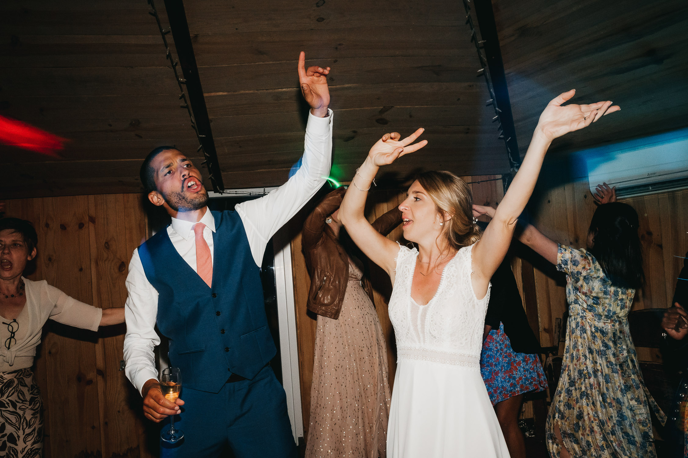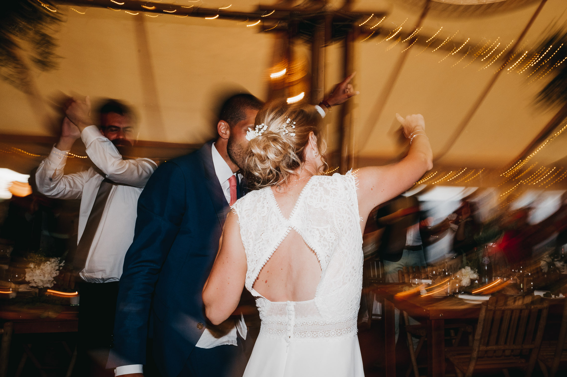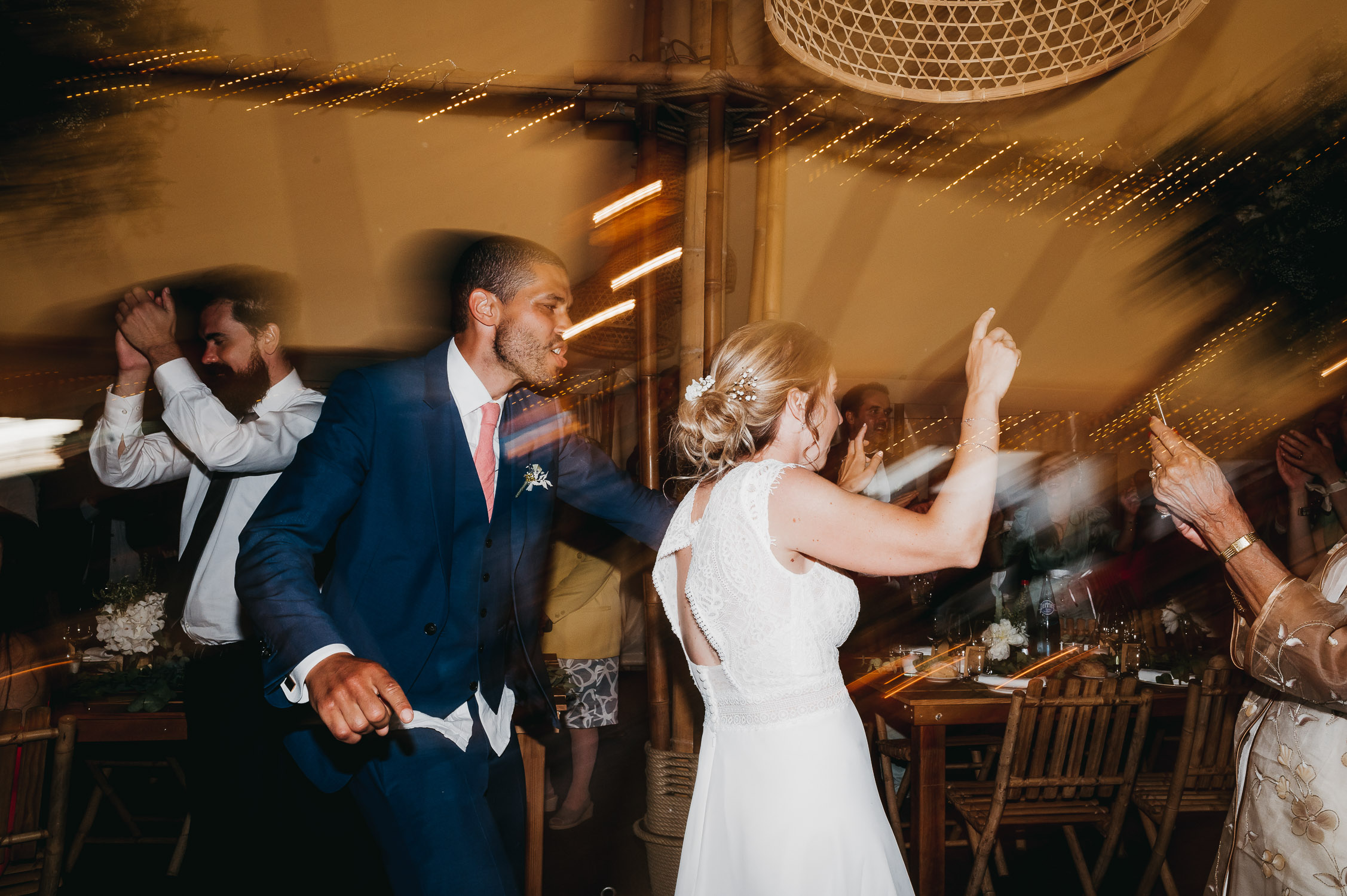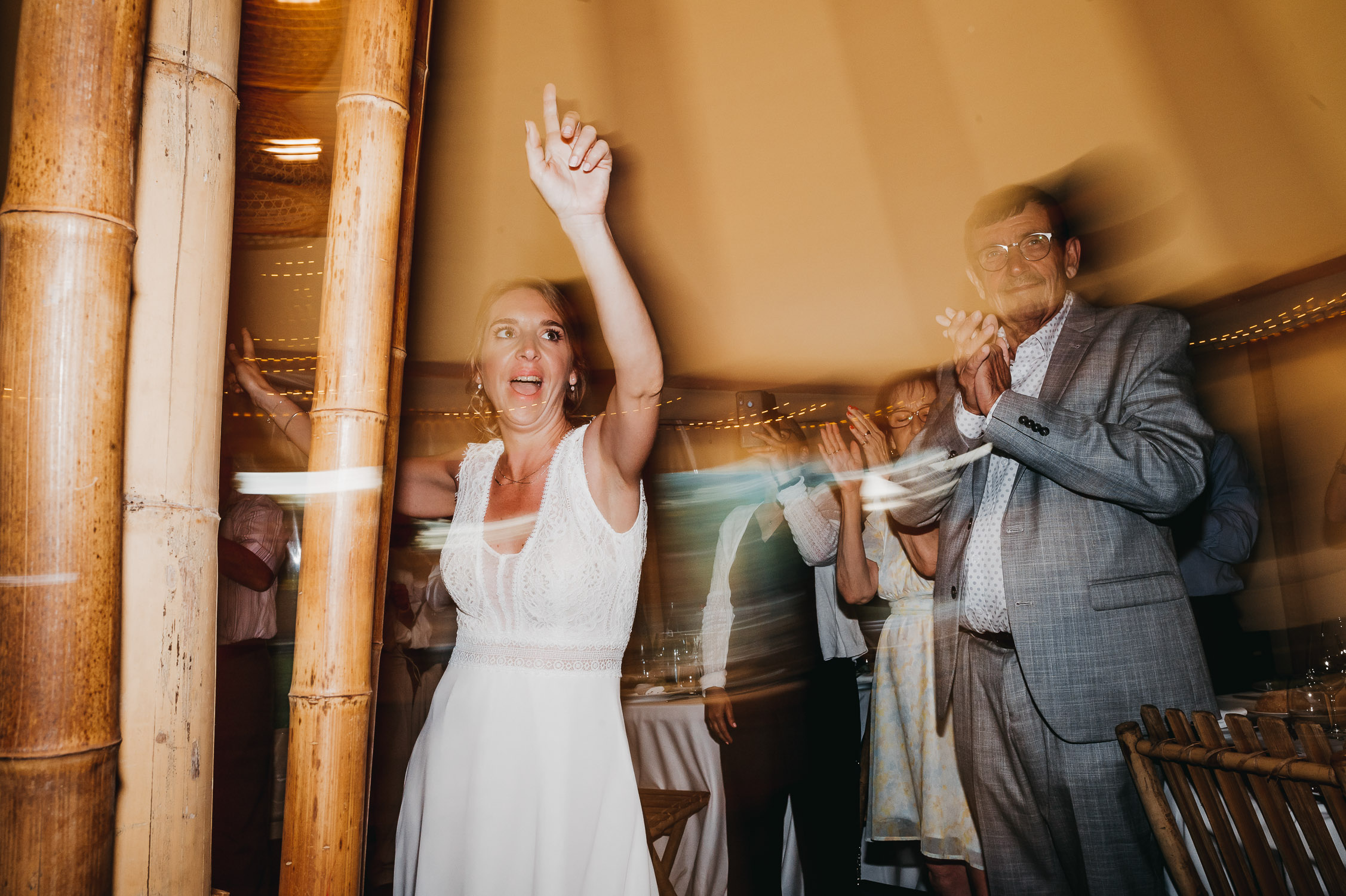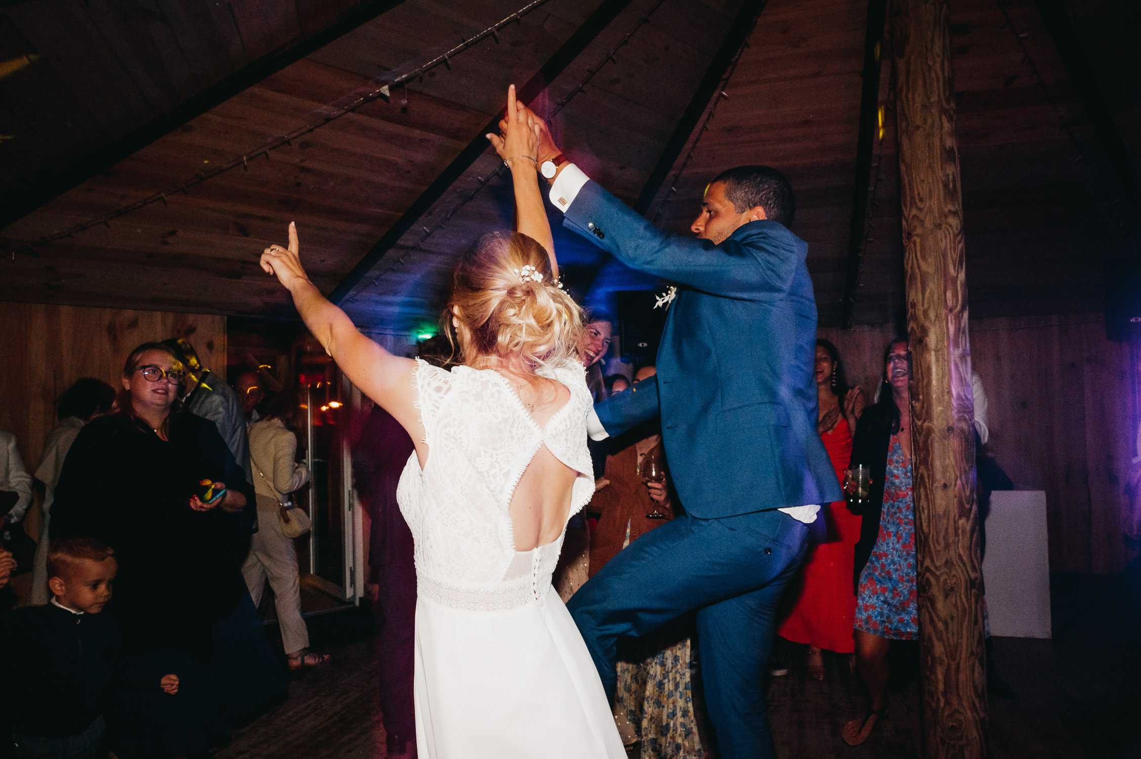 Cette journée laissera de doux et pétillants souvenirs ; des préparatifs accompagnés de leurs amis et enfants, une cérémonie chaudement émotive, une jolie décoration florale, leurs enfants qui pétillent d’amour, la jolie chanson surprise de Lily, des sauts dans les airs, une balade d’amour pour leur séance couple, un cocktail version karaoké, une entrée en salle de folie ! Une ouverture de bal qui scintille et une piste de danse qui vrille de sourires.