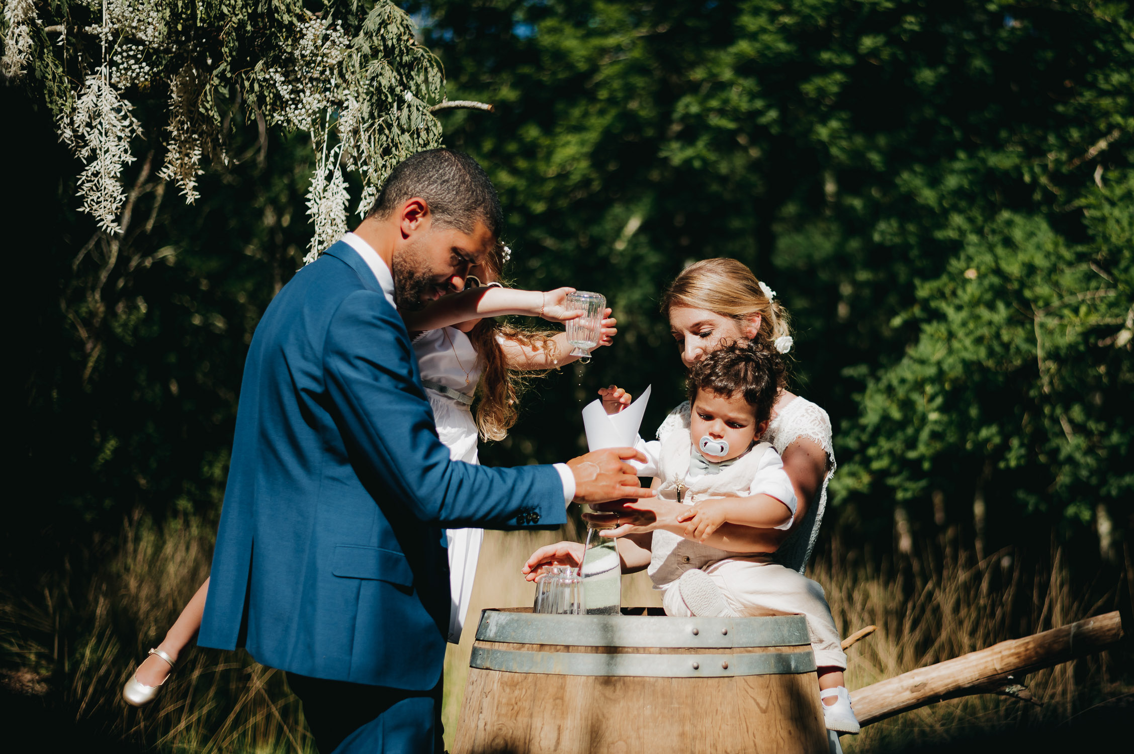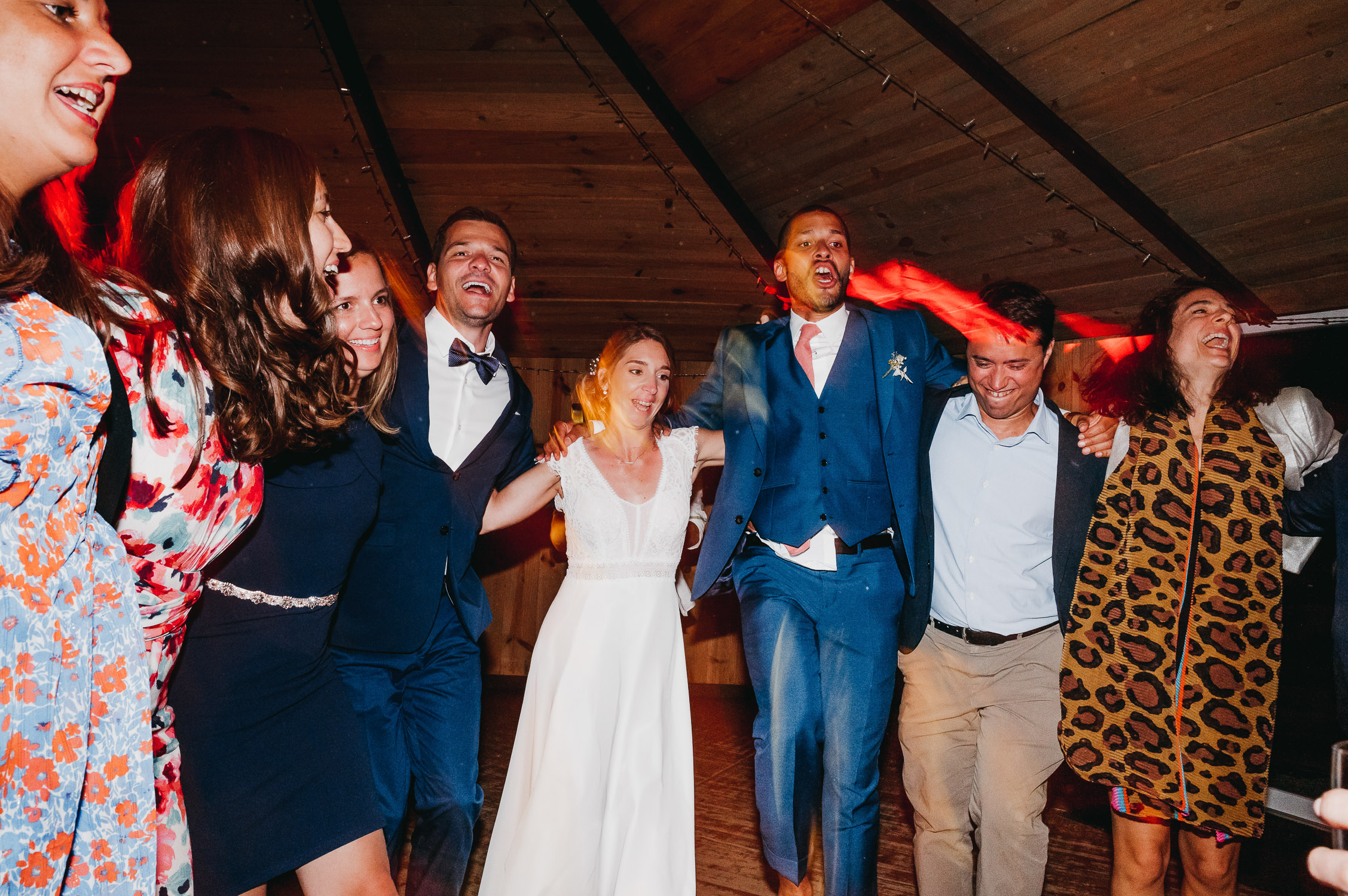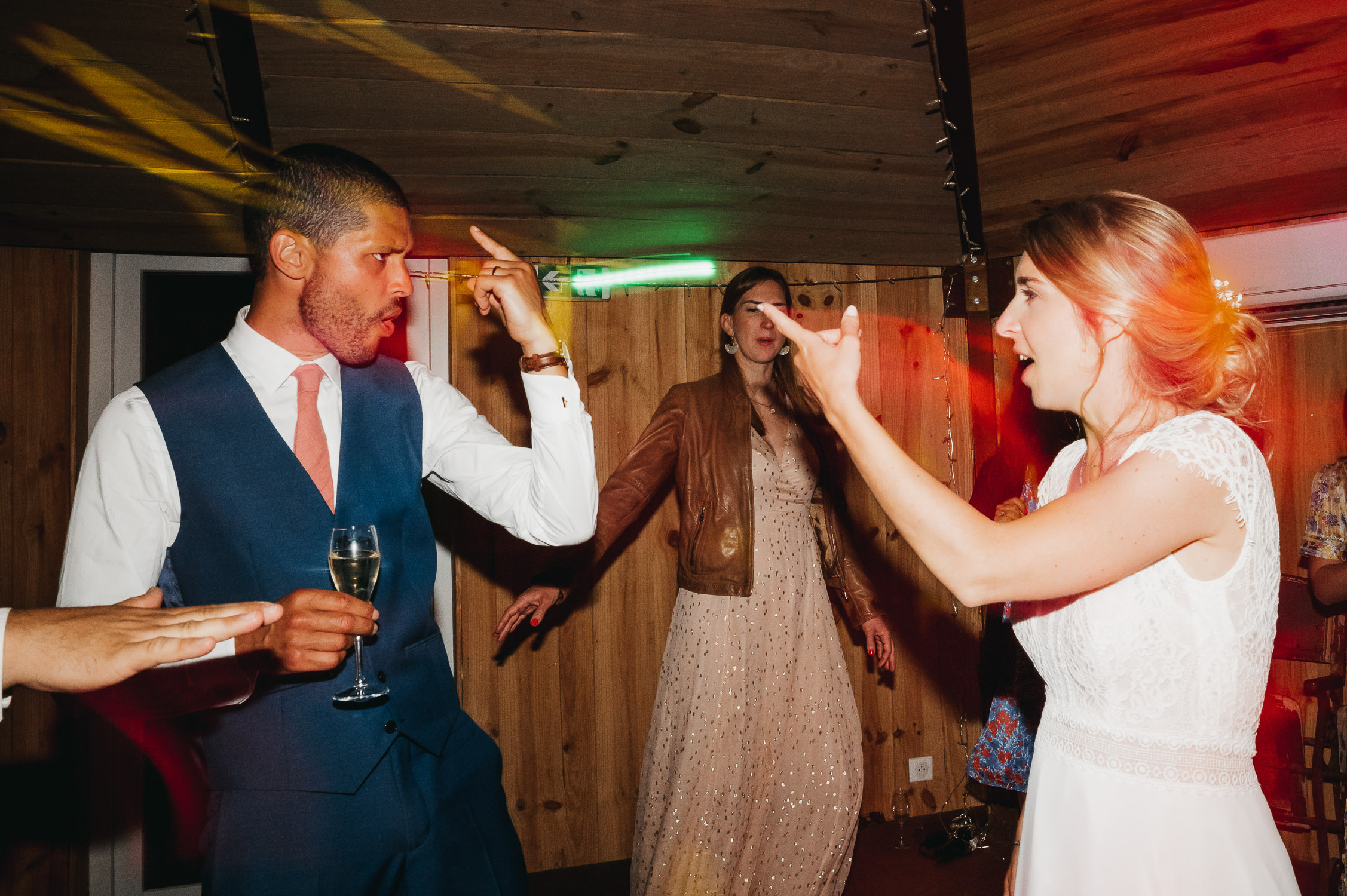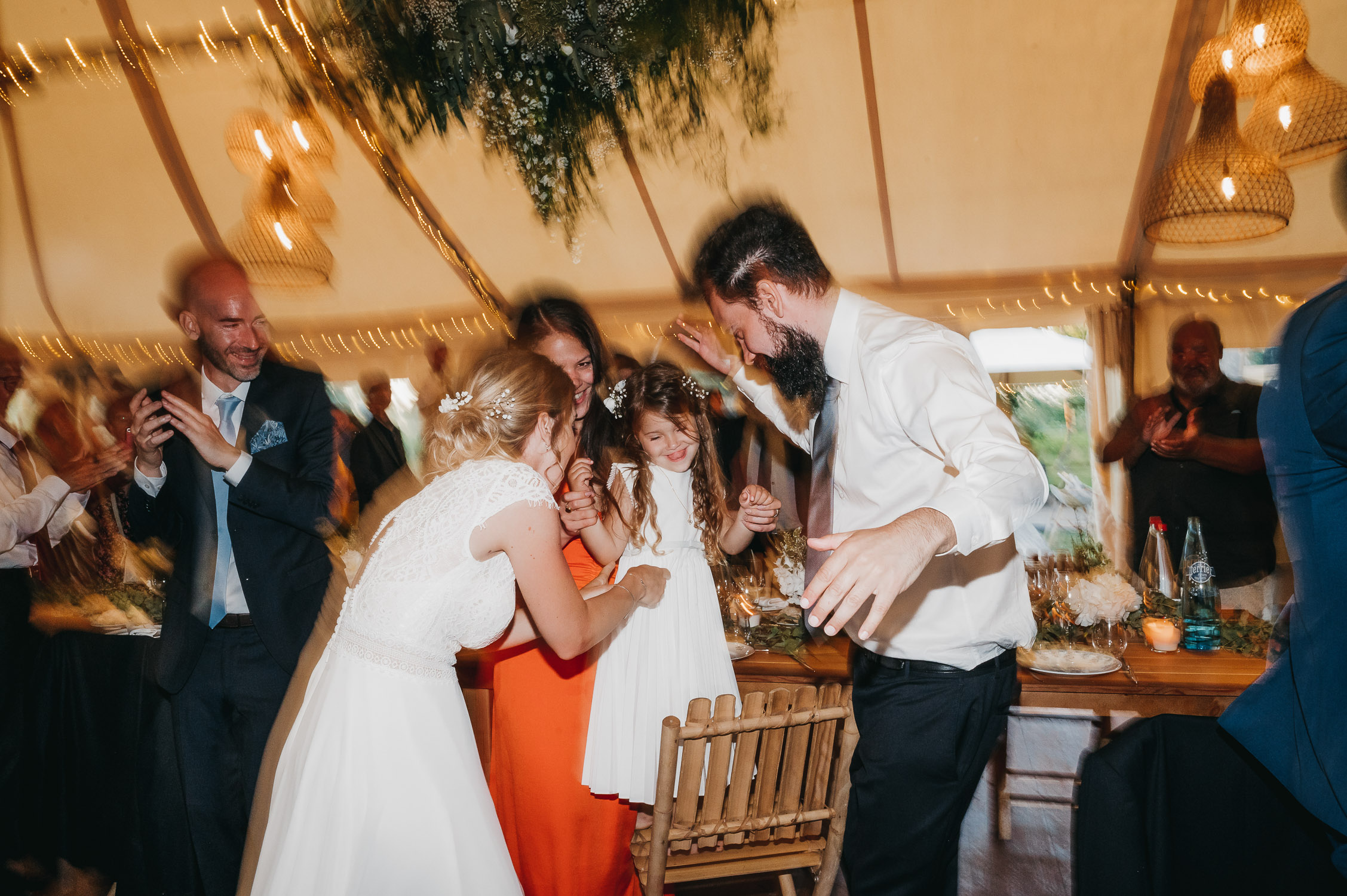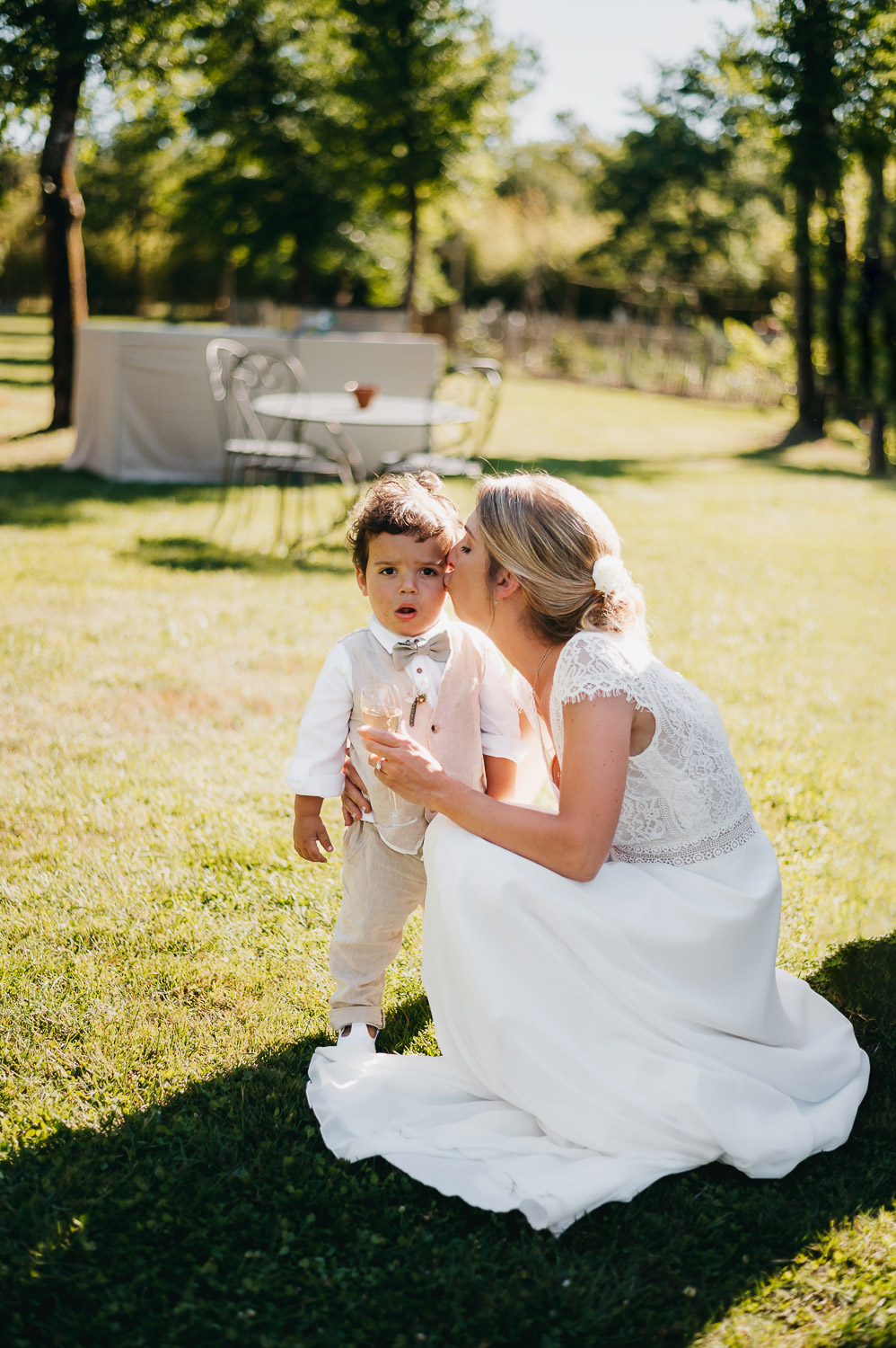 Cette journée laissera de doux et pétillants souvenirs ; des préparatifs accompagnés de leurs amis et enfants, une cérémonie chaudement émotive, une jolie décoration florale, leurs enfants qui pétillent d’amour, la jolie chanson surprise de Lily, des sauts dans les airs, une balade d’amour pour leur séance couple, un cocktail version karaoké, une entrée en salle de folie ! Une ouverture de bal qui scintille et une piste de danse qui vrille de sourires.