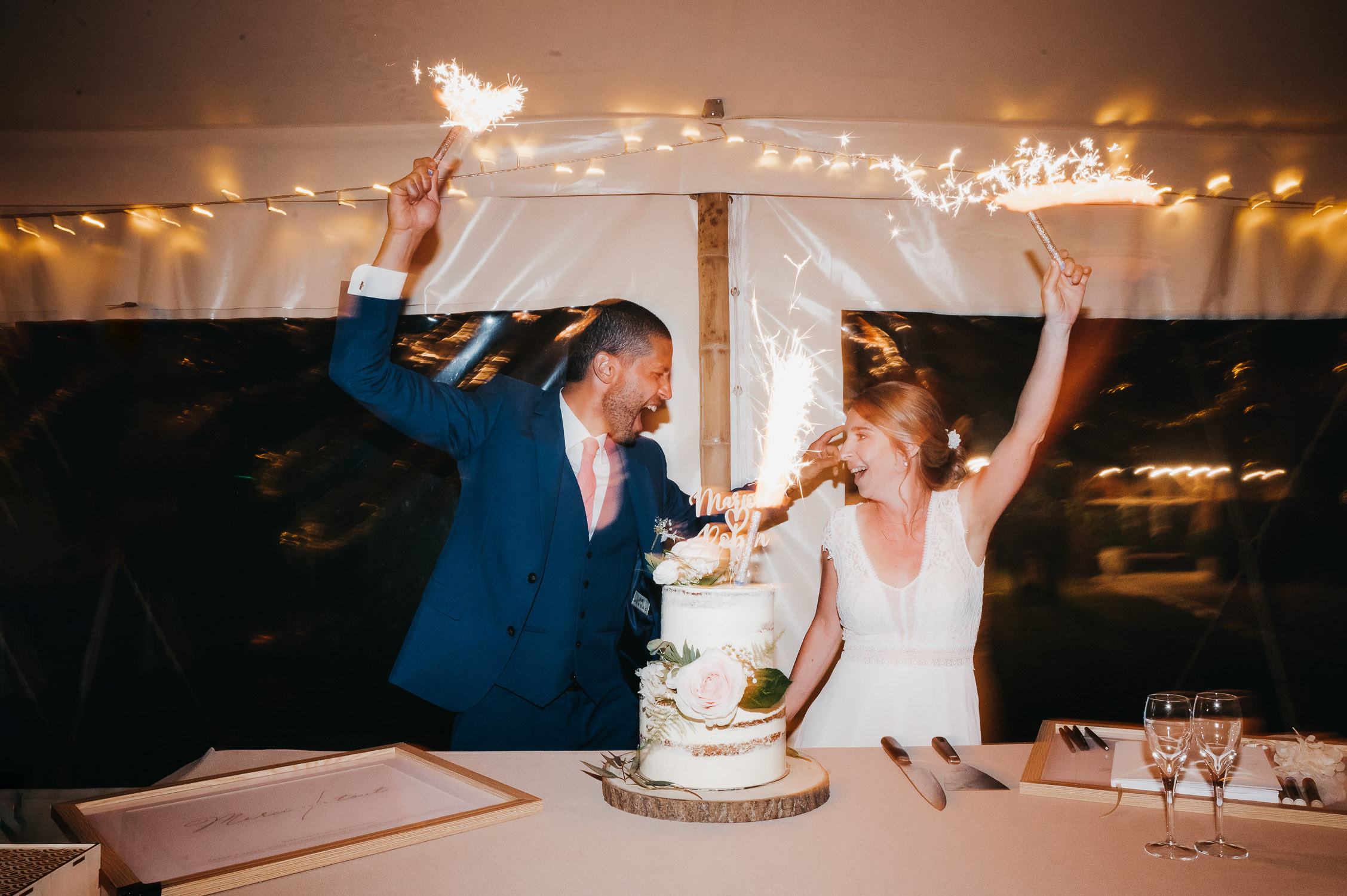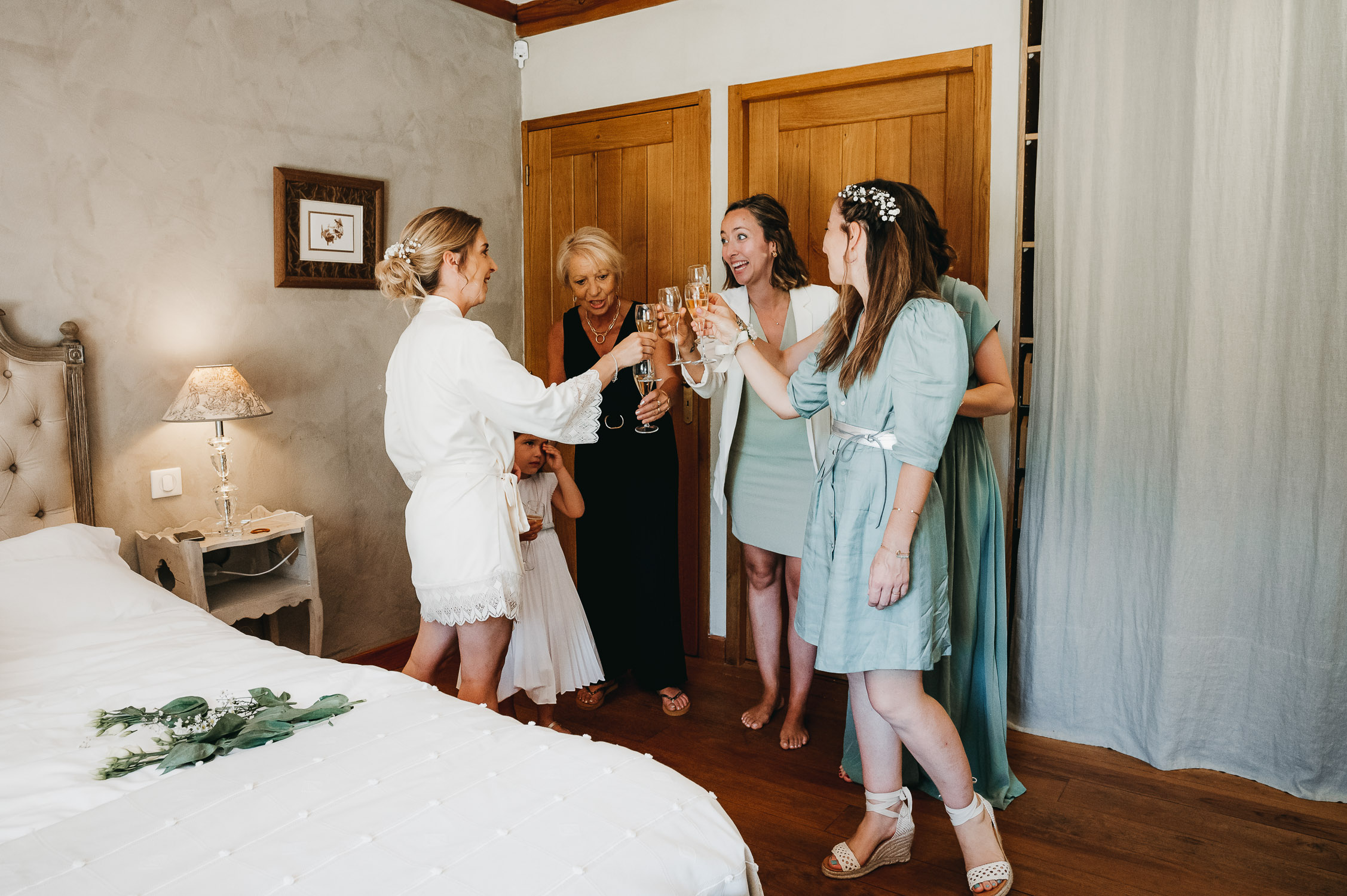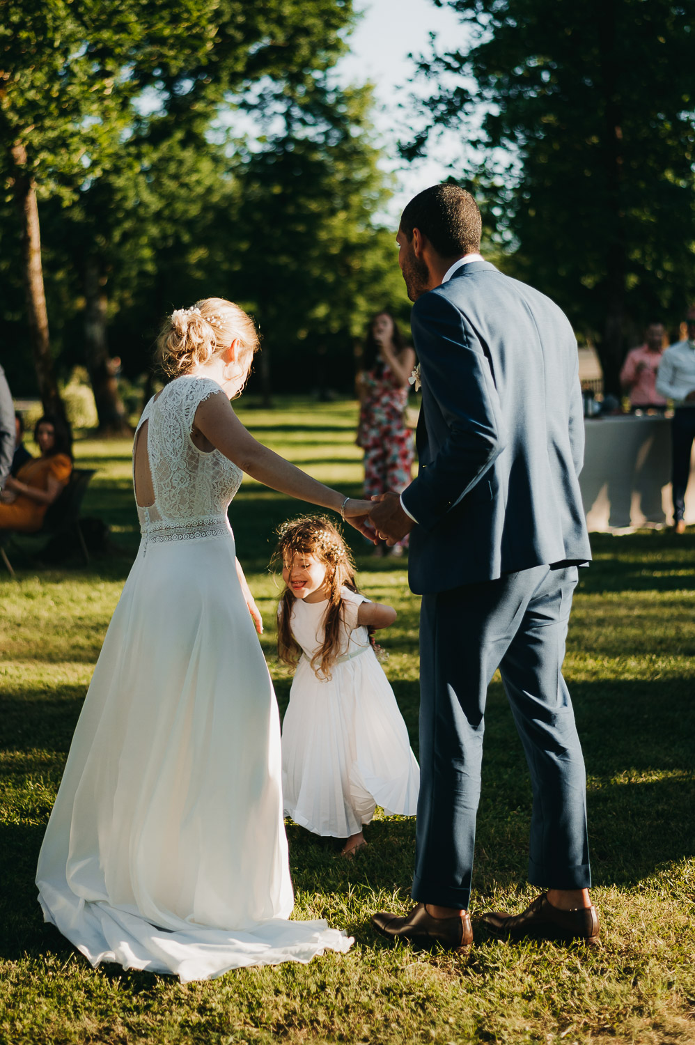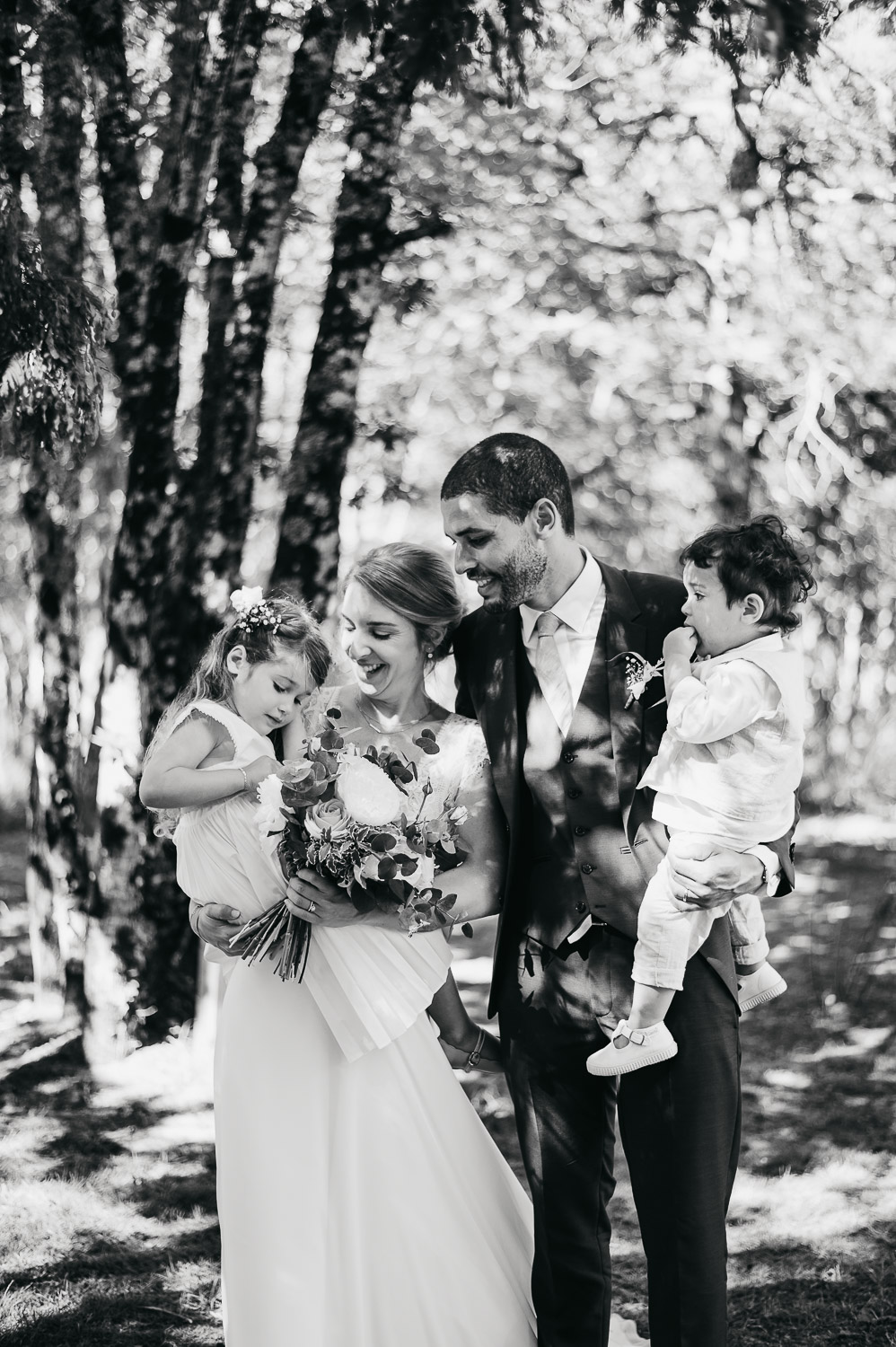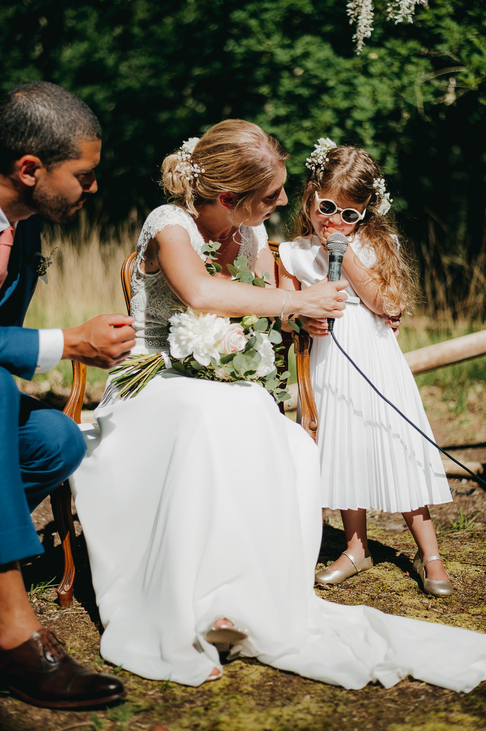 Cette journée laissera de doux et pétillants souvenirs ; des préparatifs accompagnés de leurs amis et enfants, une cérémonie chaudement émotive, une jolie décoration florale, leurs enfants qui pétillent d’amour, la jolie chanson surprise de Lily, des sauts dans les airs, une balade d’amour pour leur séance couple, un cocktail version karaoké, une entrée en salle de folie ! Une ouverture de bal qui scintille et une piste de danse qui vrille de sourires.