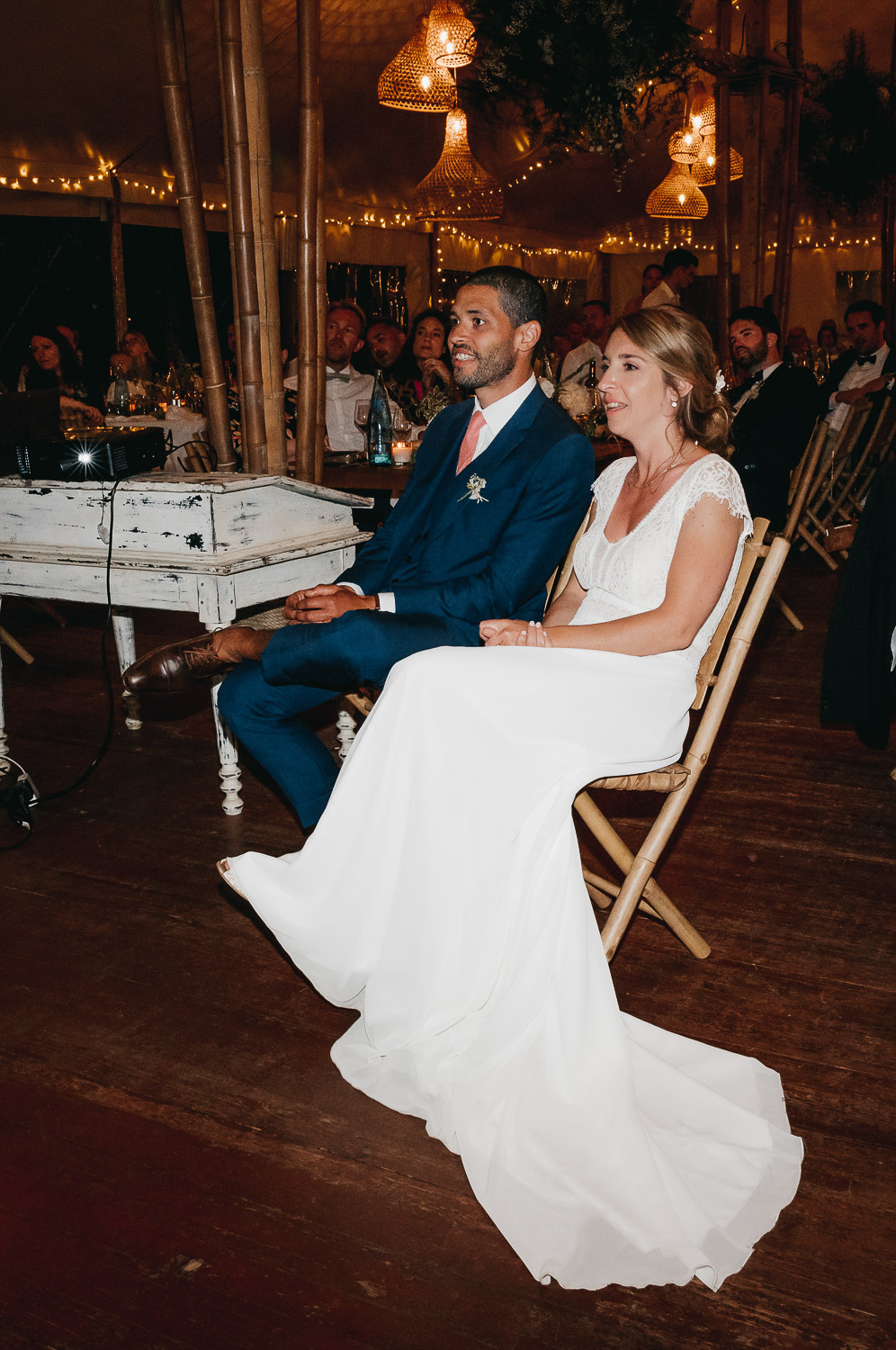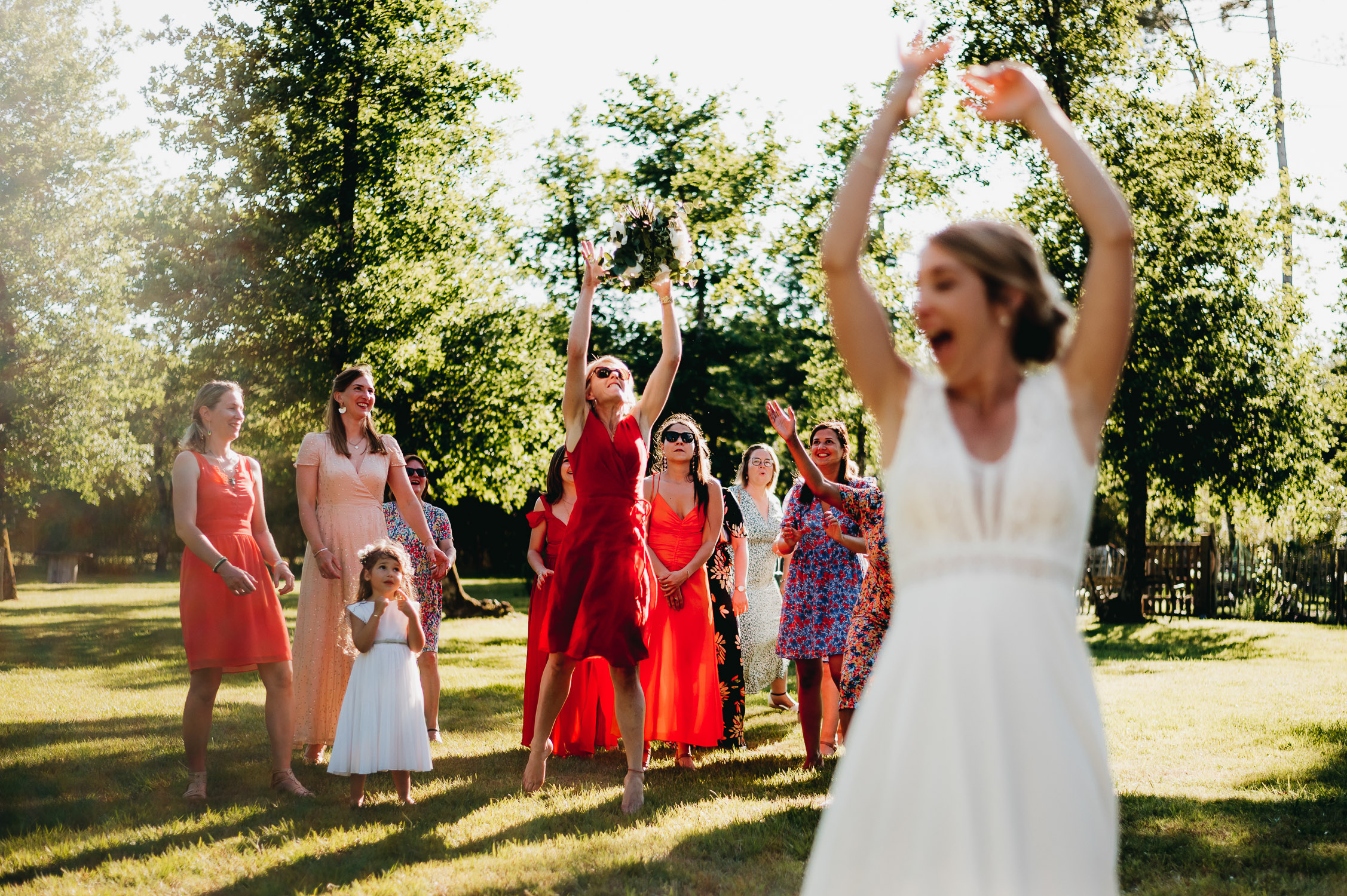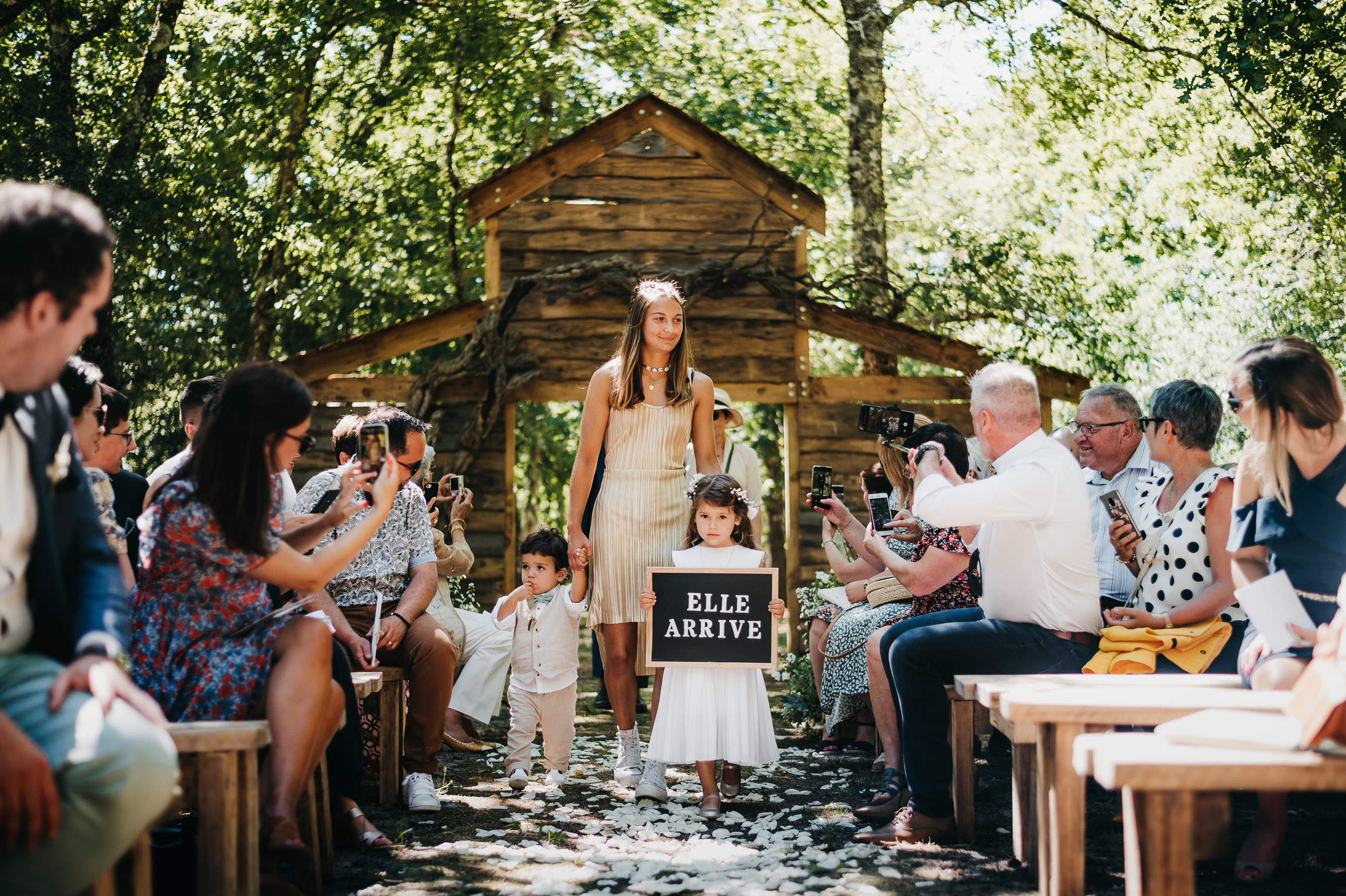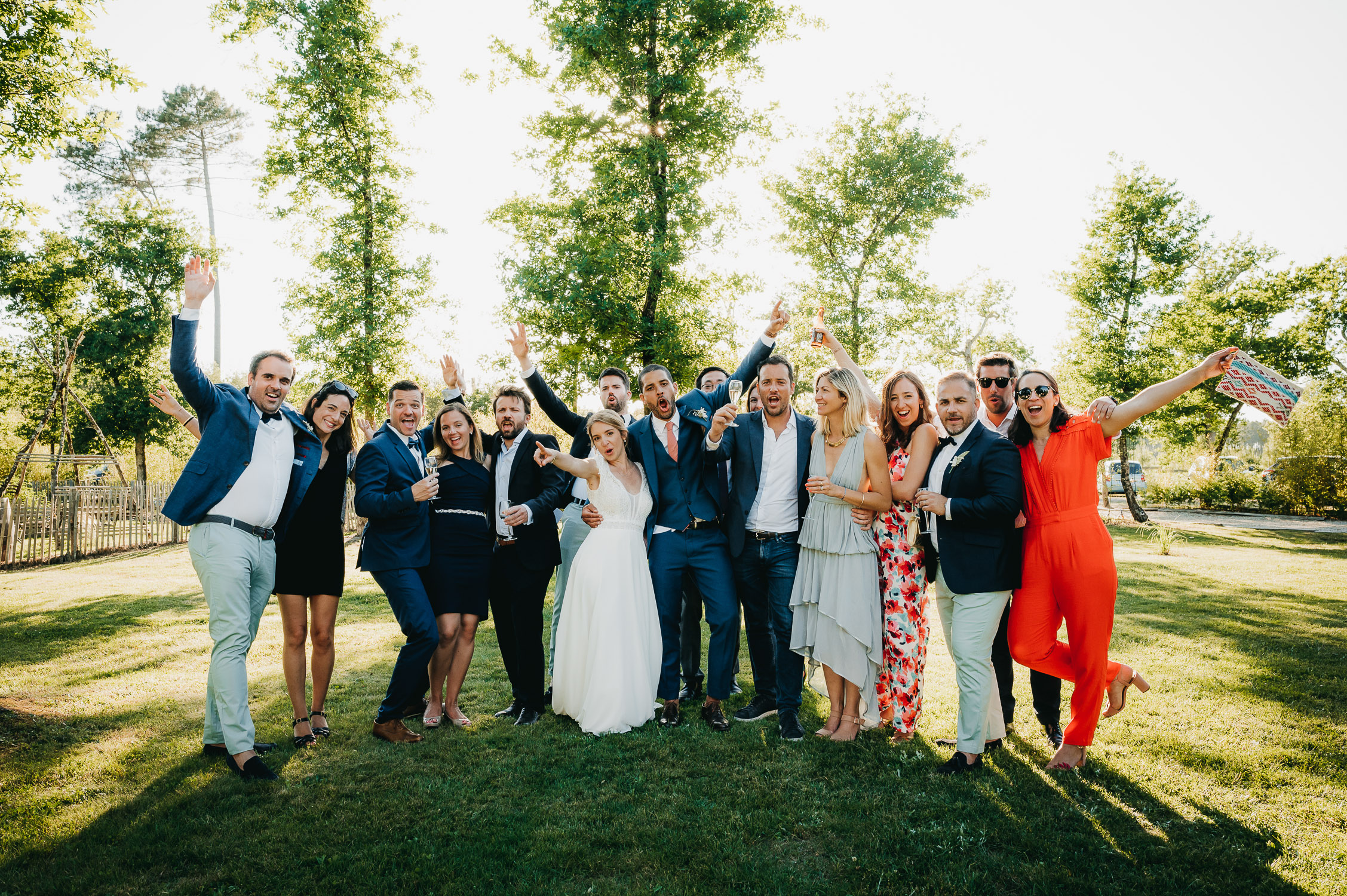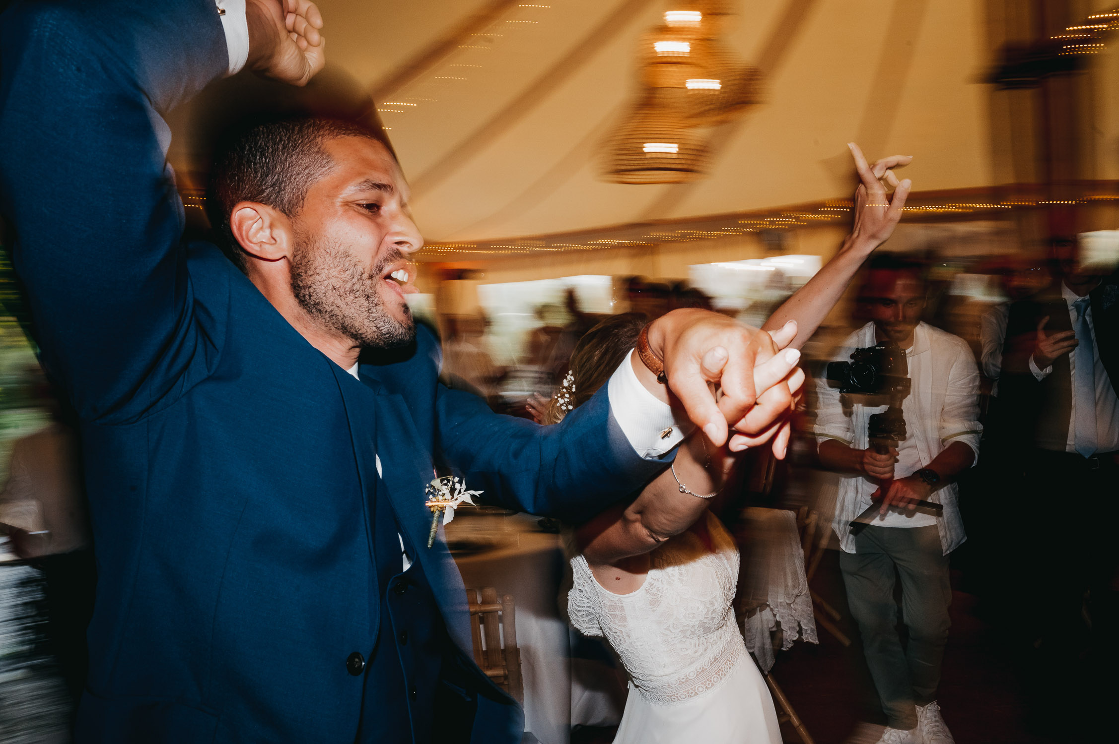 Cette journée laissera de doux et pétillants souvenirs ; des préparatifs accompagnés de leurs amis et enfants, une cérémonie chaudement émotive, une jolie décoration florale, leurs enfants qui pétillent d’amour, la jolie chanson surprise de Lily, des sauts dans les airs, une balade d’amour pour leur séance couple, un cocktail version karaoké, une entrée en salle de folie ! Une ouverture de bal qui scintille et une piste de danse qui vrille de sourires.
