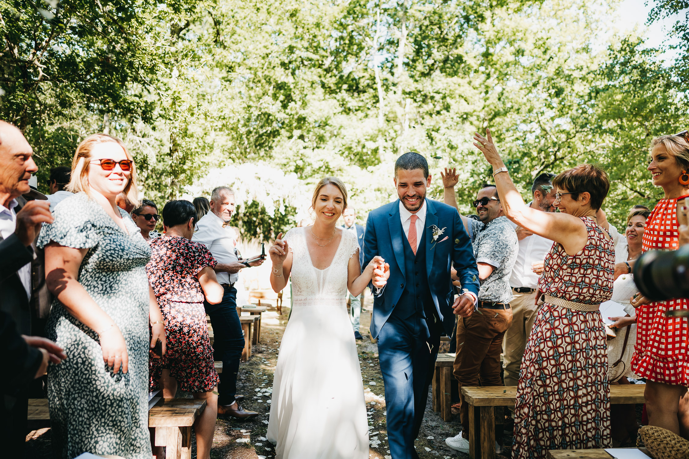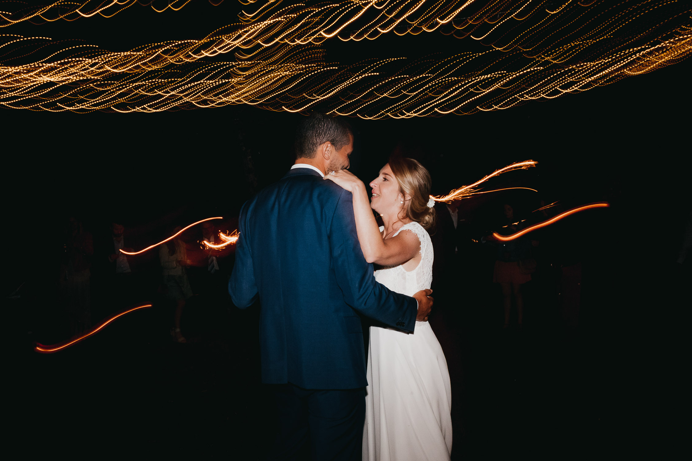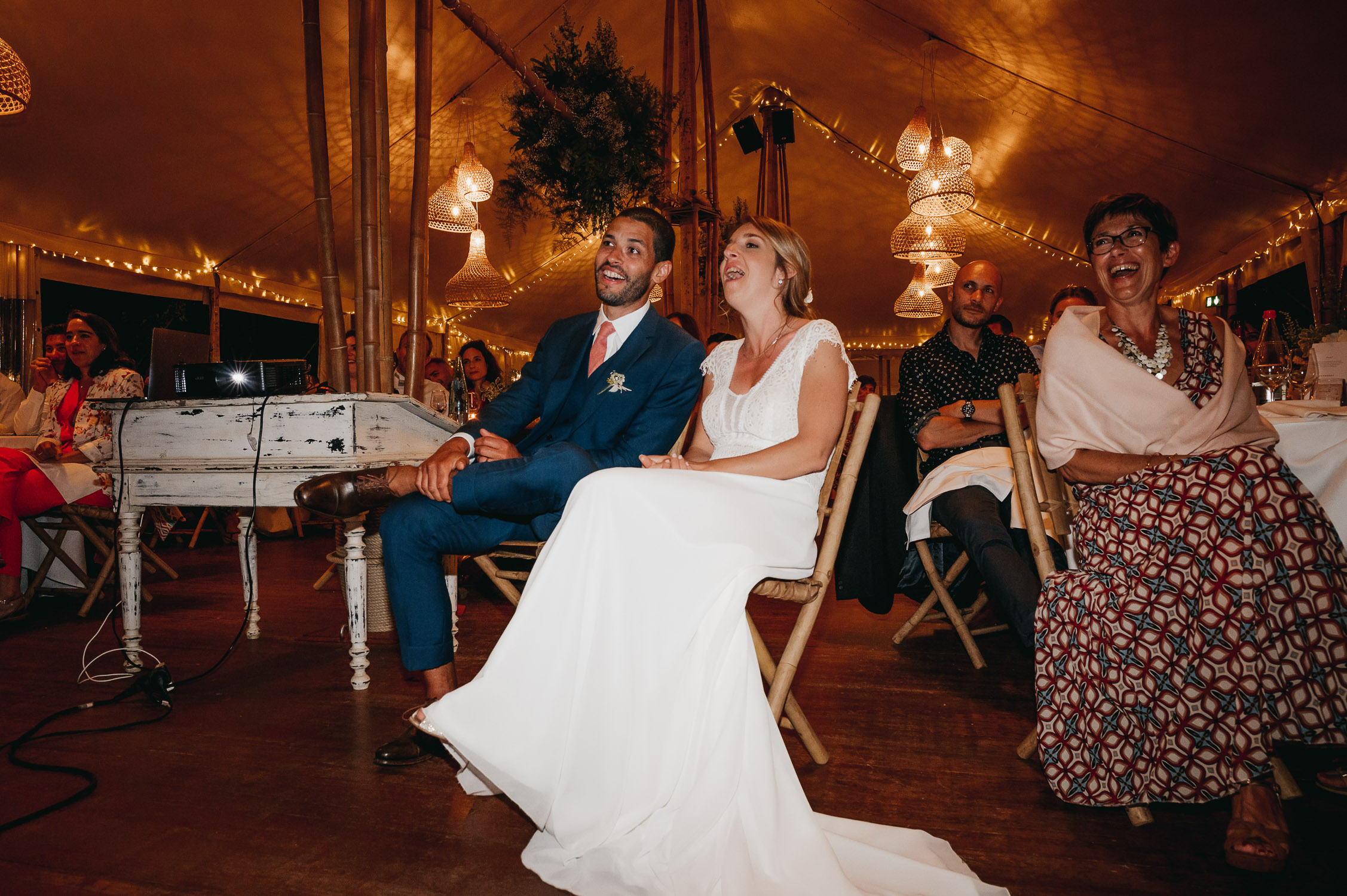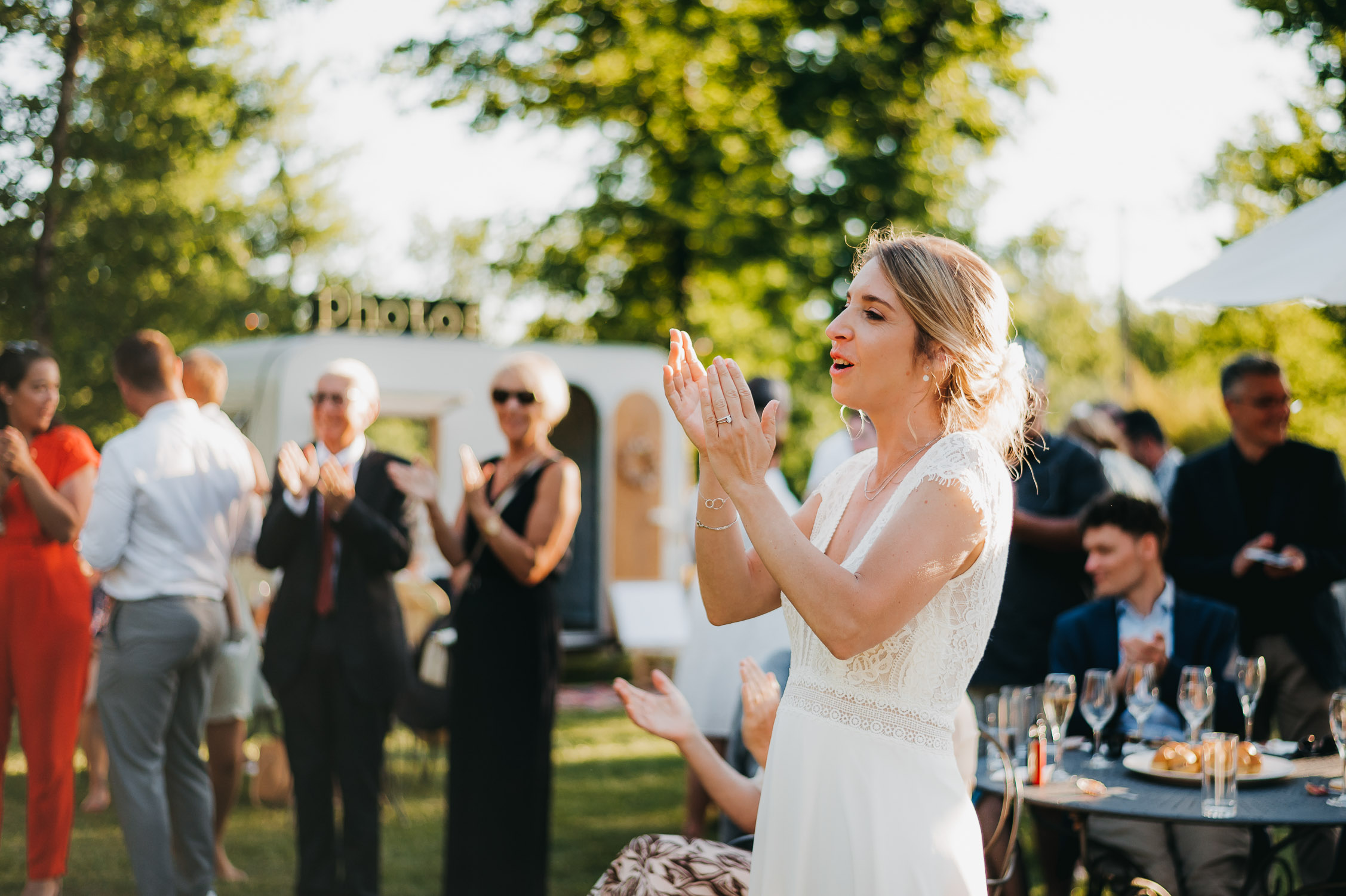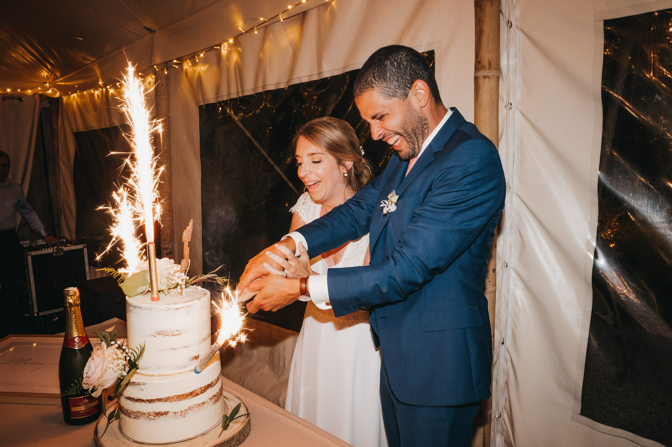 Cette journée laissera de doux et pétillants souvenirs ; des préparatifs accompagnés de leurs amis et enfants, une cérémonie chaudement émotive, une jolie décoration florale, leurs enfants qui pétillent d’amour, la jolie chanson surprise de Lily, des sauts dans les airs, une balade d’amour pour leur séance couple, un cocktail version karaoké, une entrée en salle de folie ! Une ouverture de bal qui scintille et une piste de danse qui vrille de sourires.