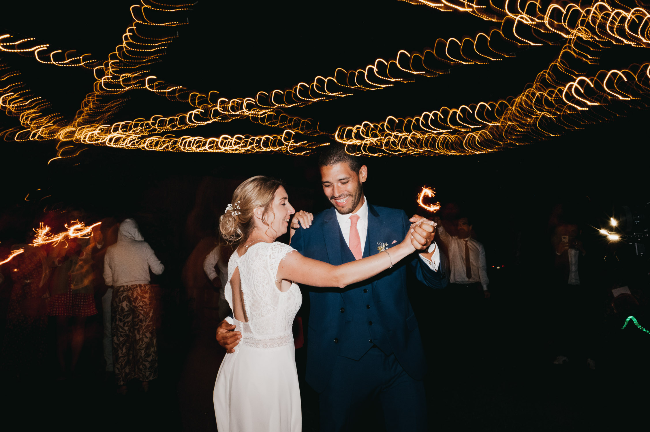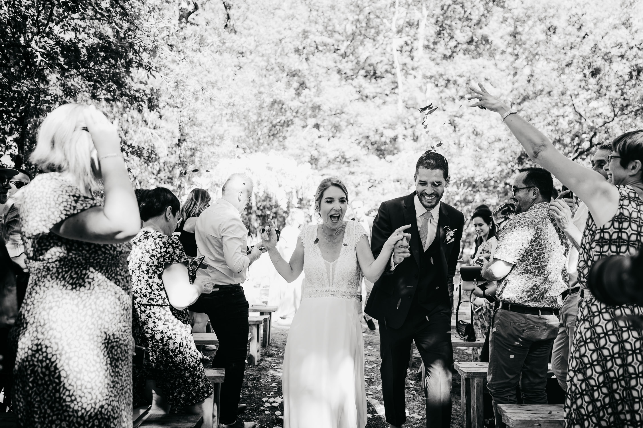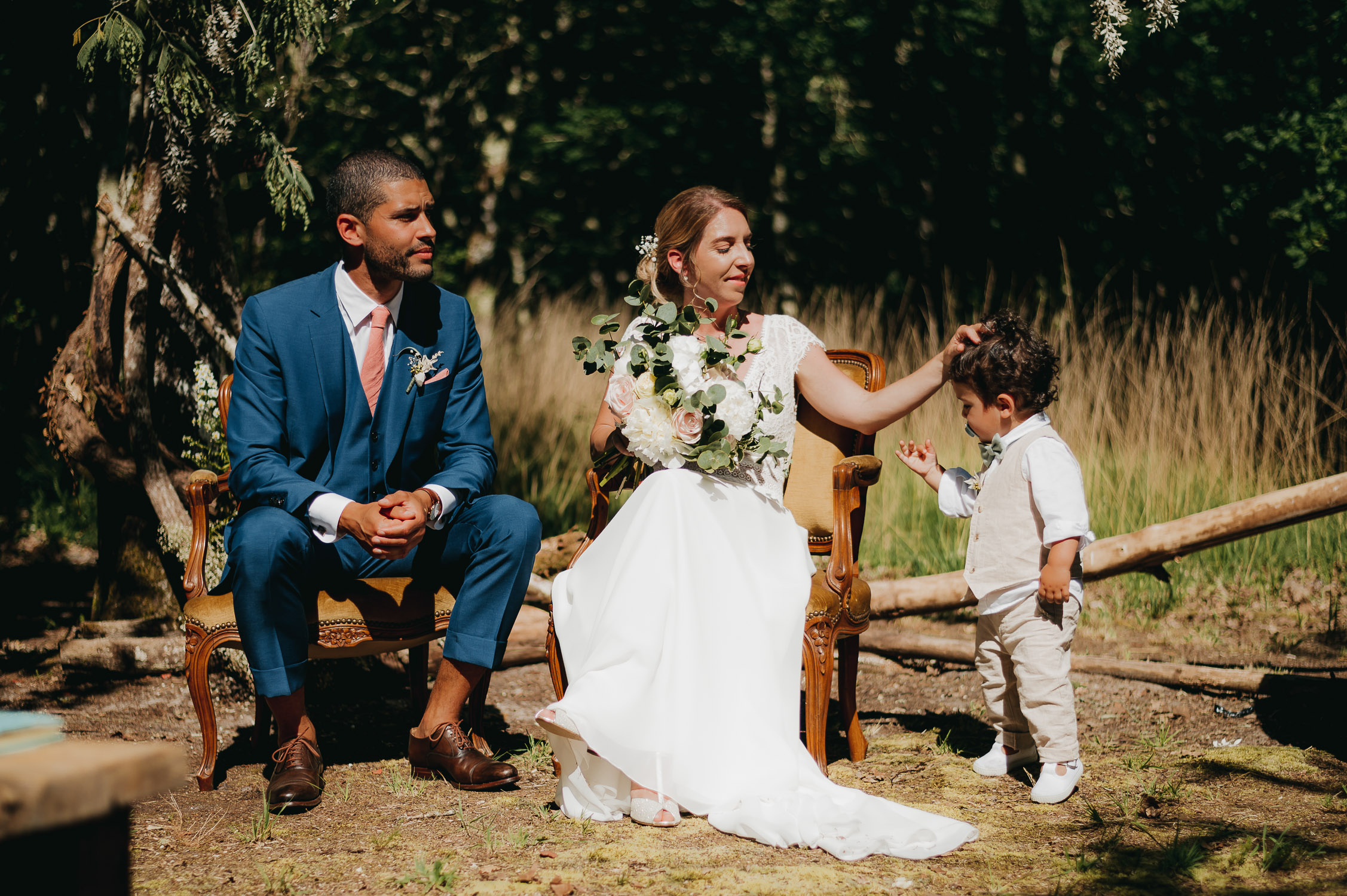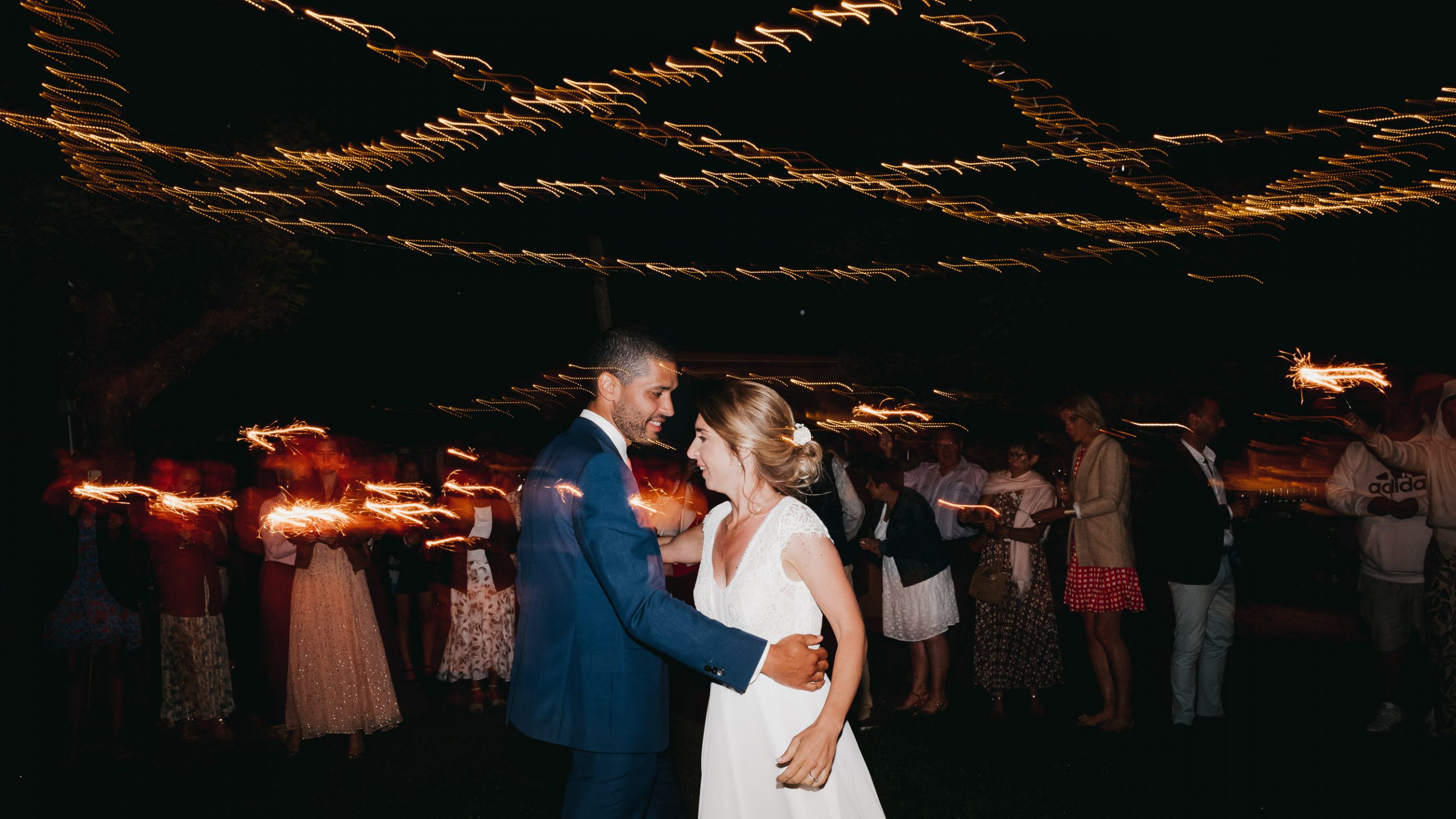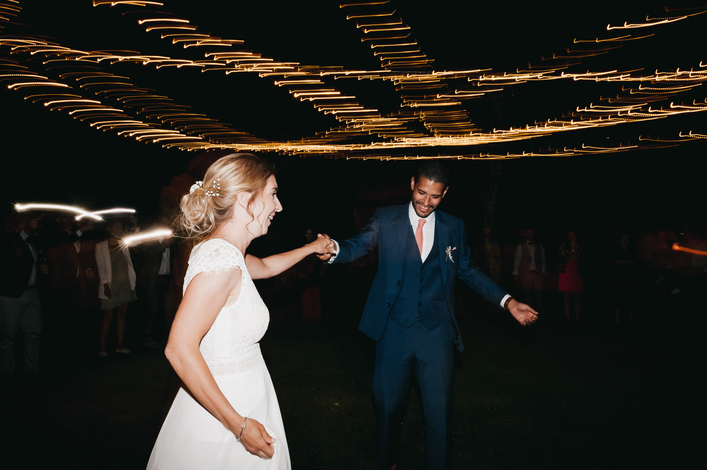 Cette journée laissera de doux et pétillants souvenirs ; des préparatifs accompagnés de leurs amis et enfants, une cérémonie chaudement émotive, une jolie décoration florale, leurs enfants qui pétillent d’amour, la jolie chanson surprise de Lily, des sauts dans les airs, une balade d’amour pour leur séance couple, un cocktail version karaoké, une entrée en salle de folie ! Une ouverture de bal qui scintille et une piste de danse qui vrille de sourires.