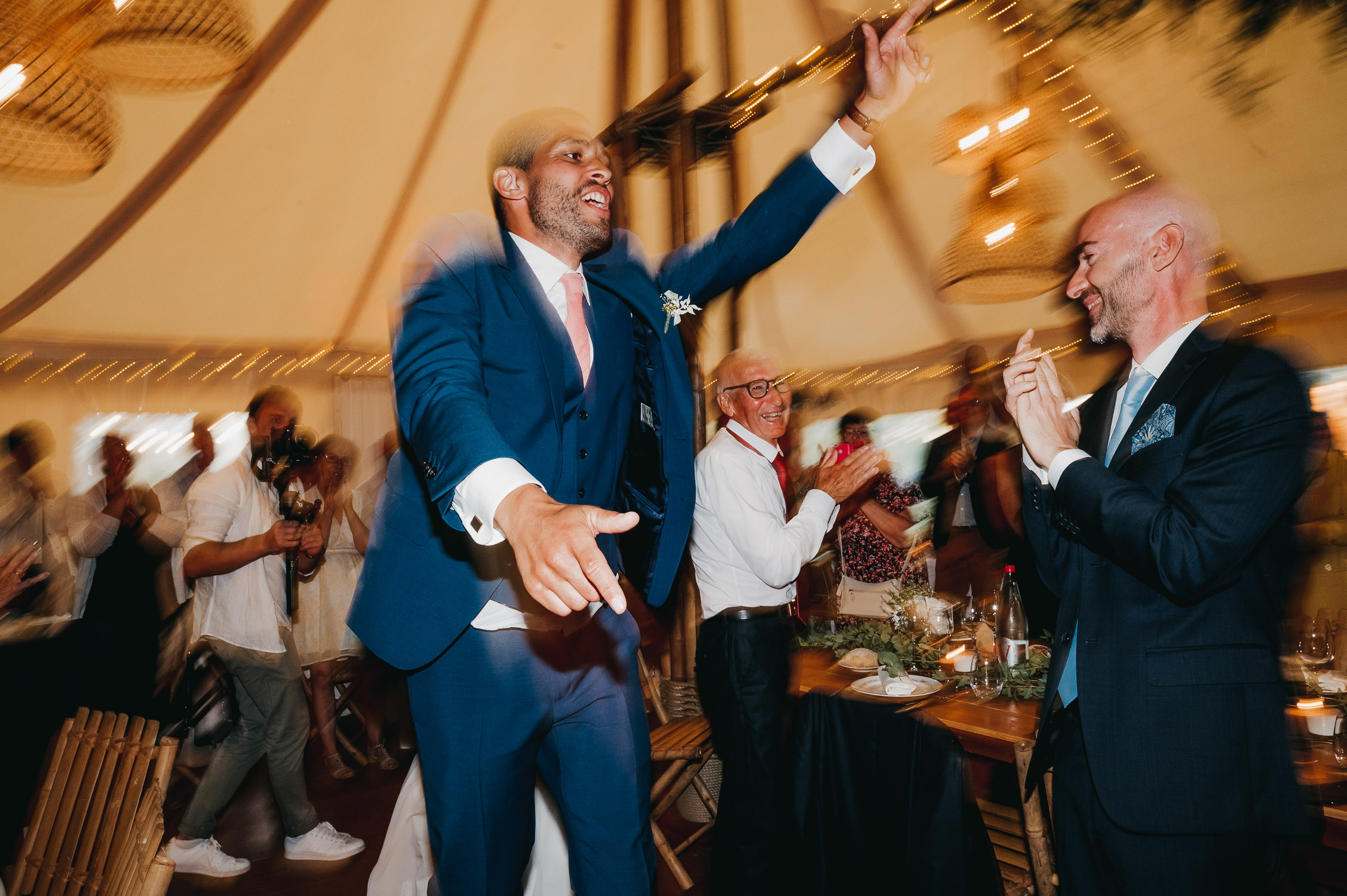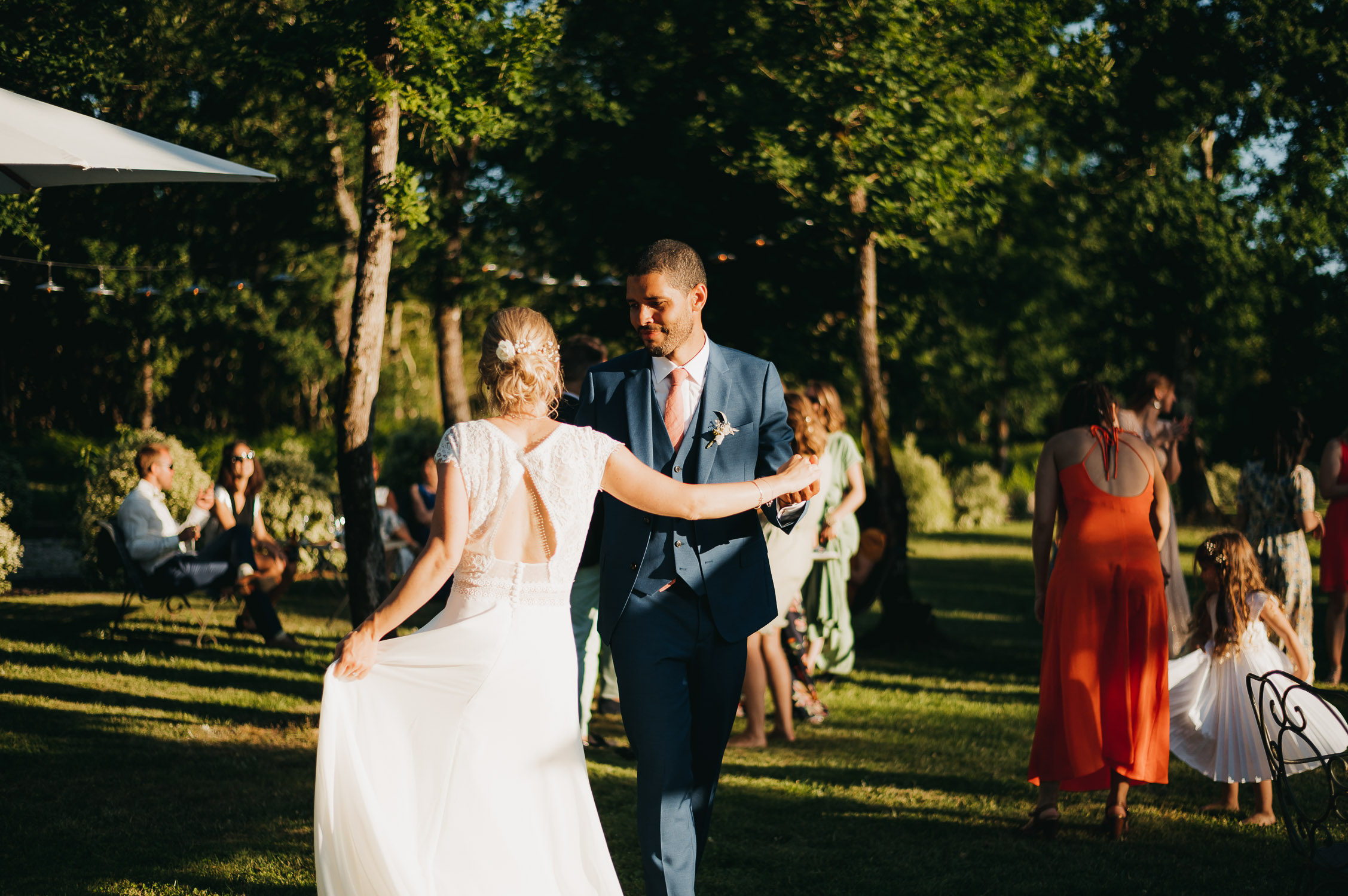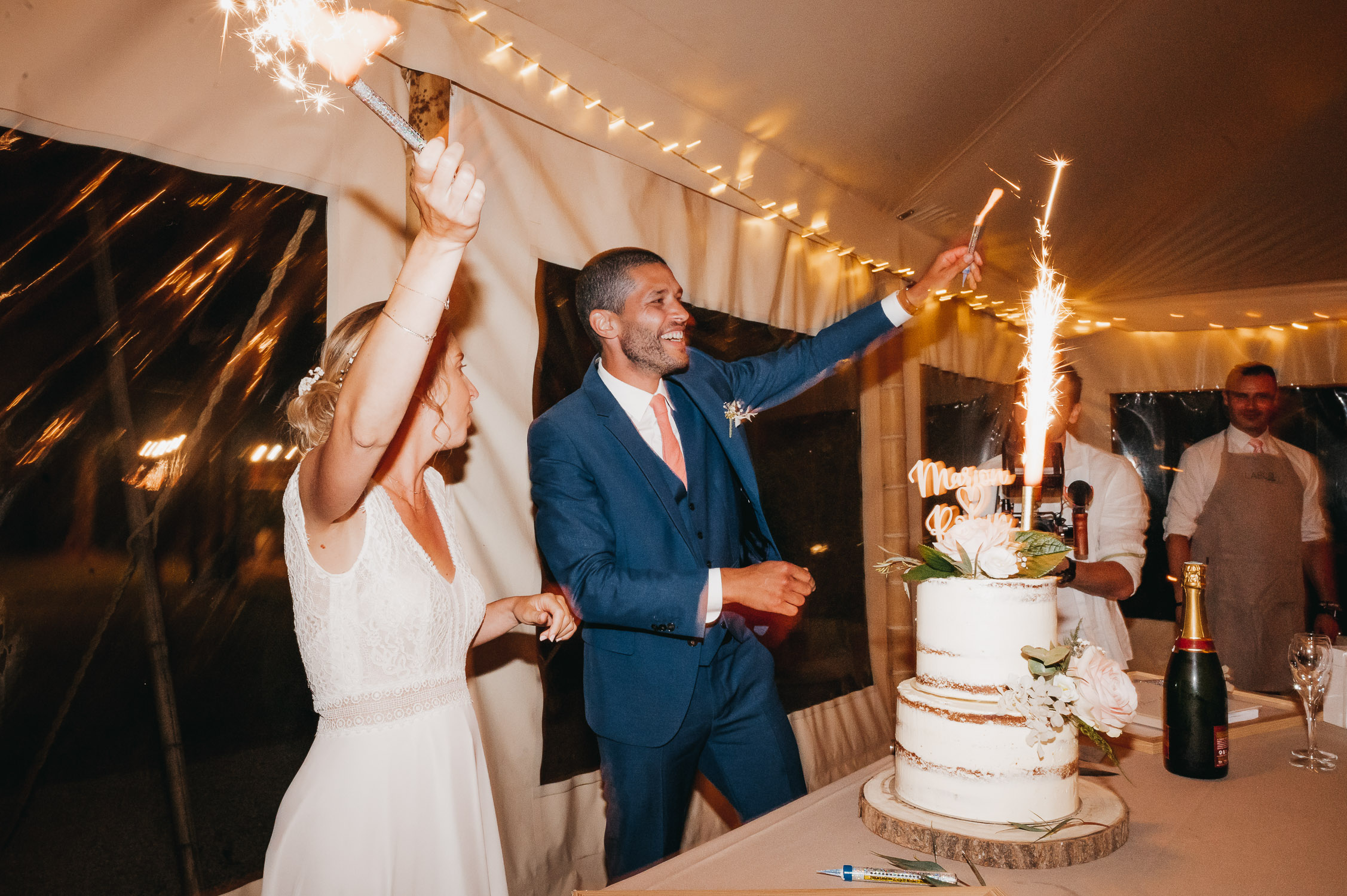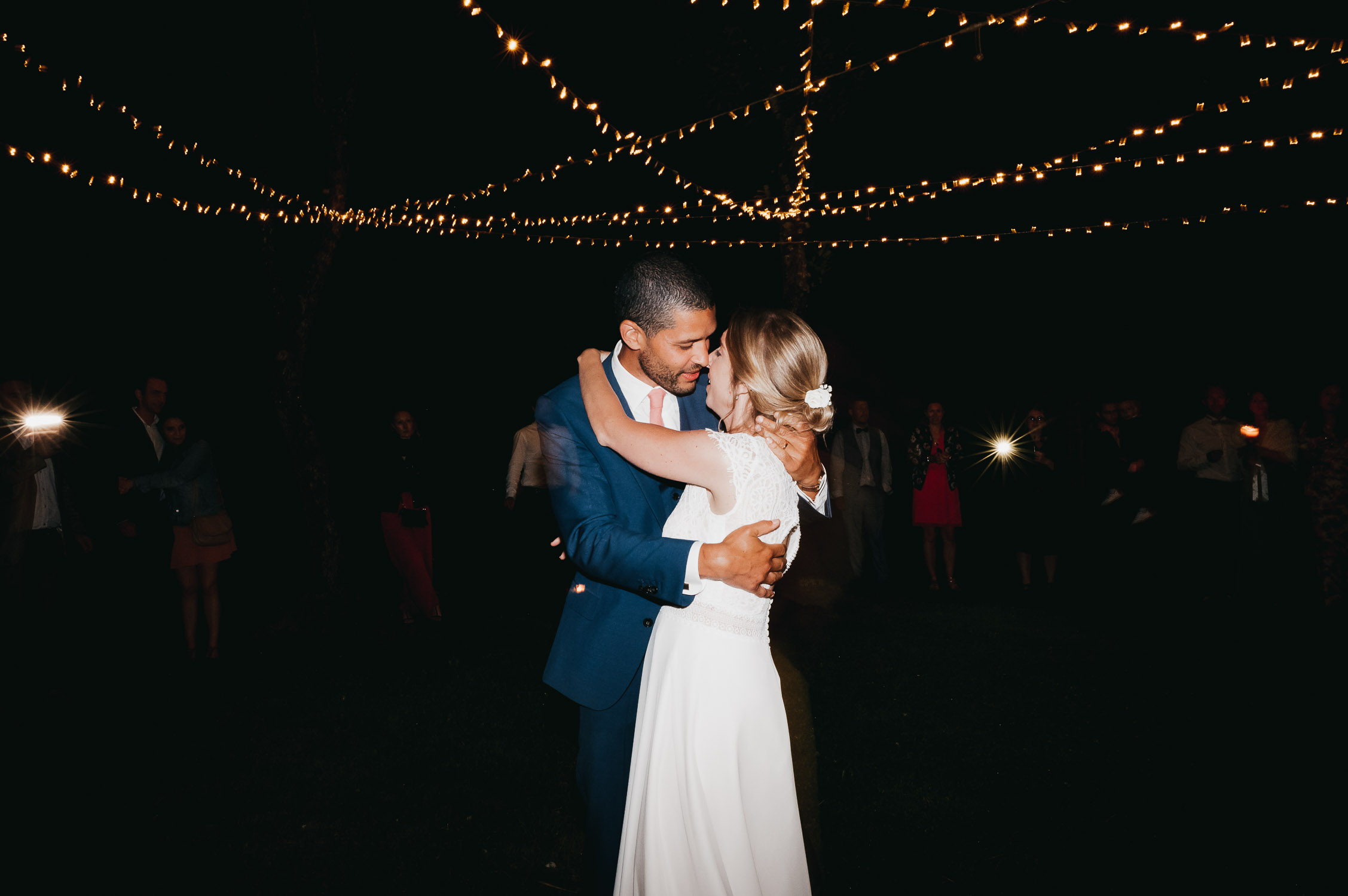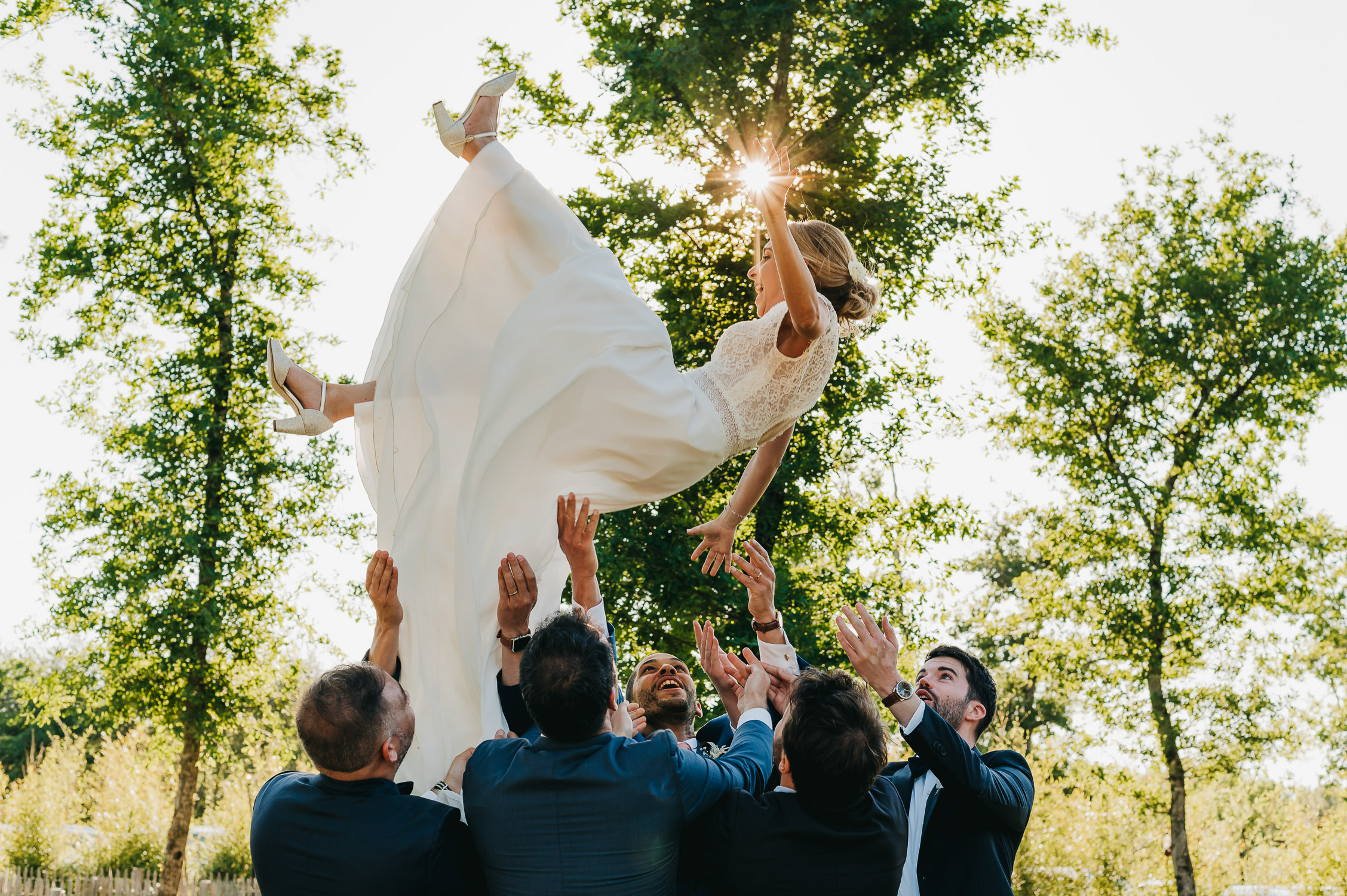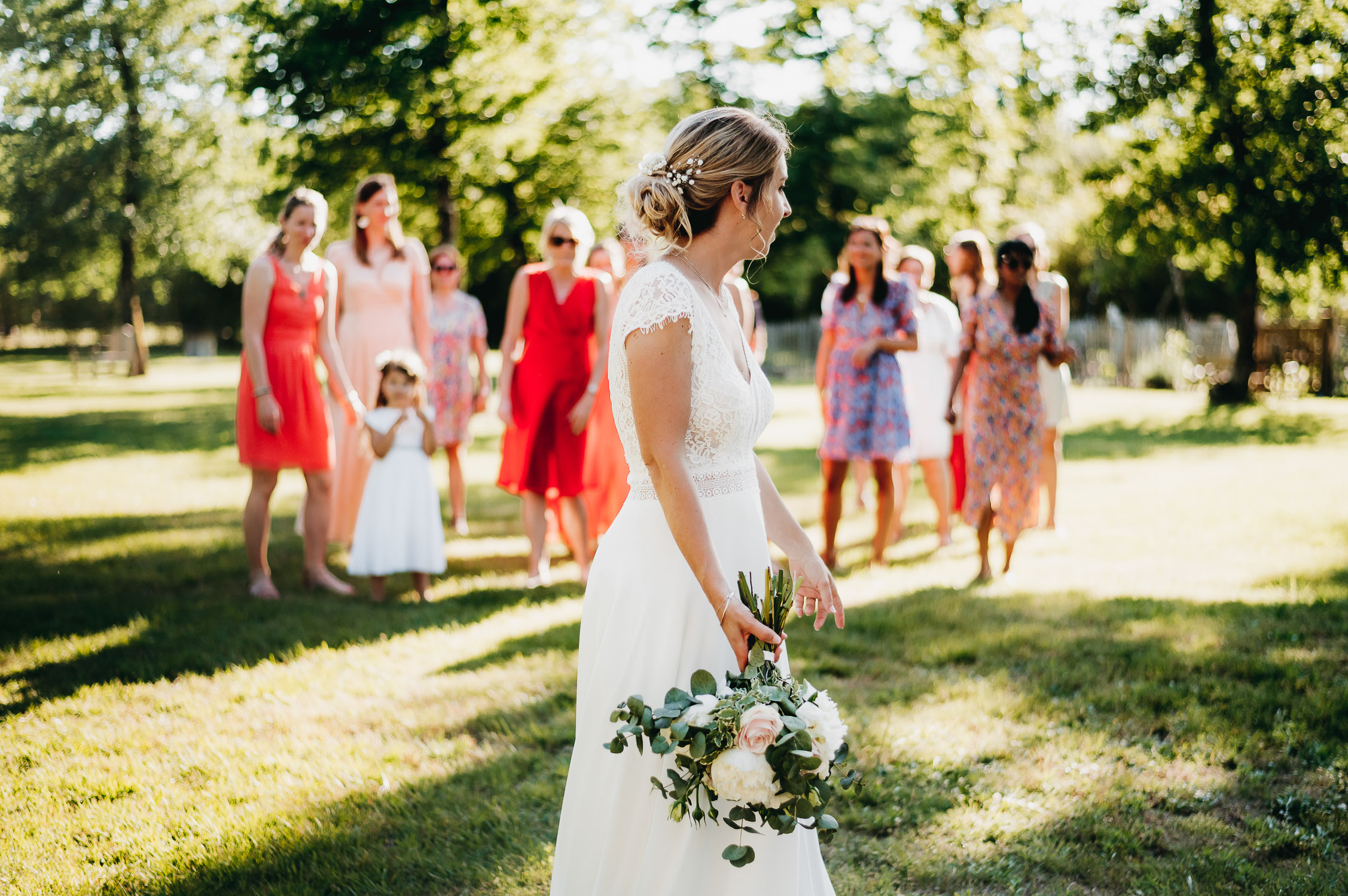 Cette journée laissera de doux et pétillants souvenirs ; des préparatifs accompagnés de leurs amis et enfants, une cérémonie chaudement émotive, une jolie décoration florale, leurs enfants qui pétillent d’amour, la jolie chanson surprise de Lily, des sauts dans les airs, une balade d’amour pour leur séance couple, un cocktail version karaoké, une entrée en salle de folie ! Une ouverture de bal qui scintille et une piste de danse qui vrille de sourires.