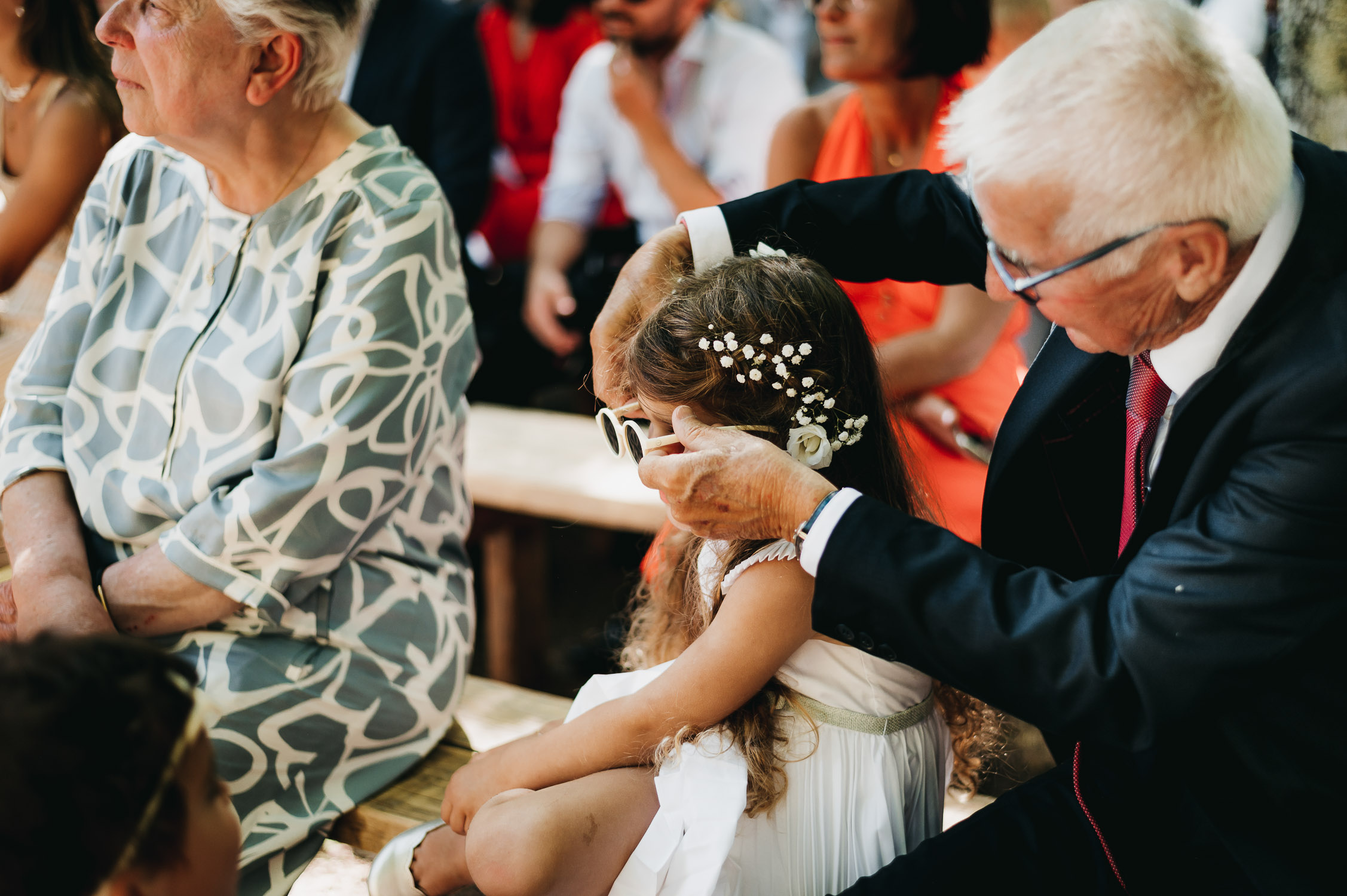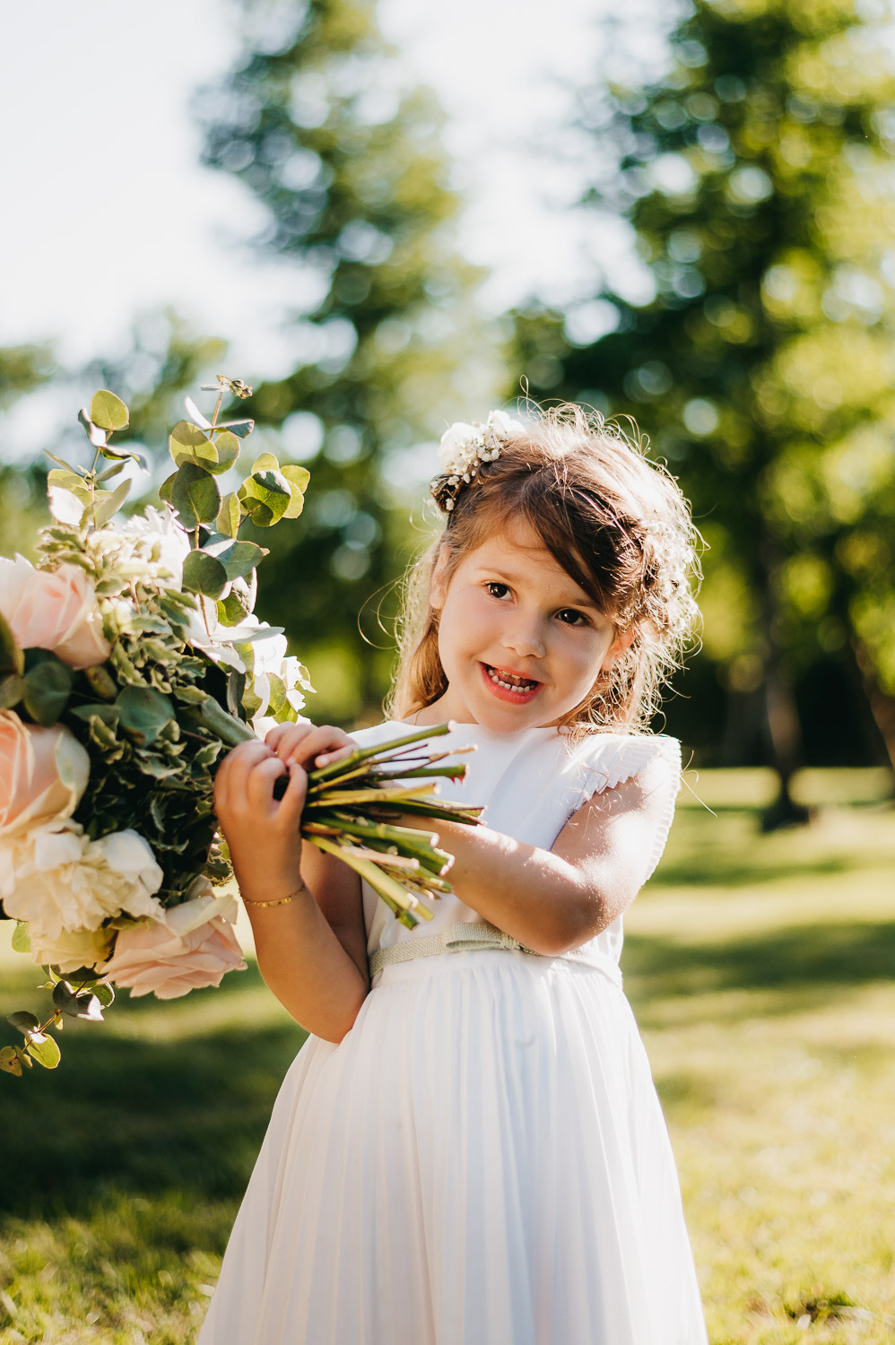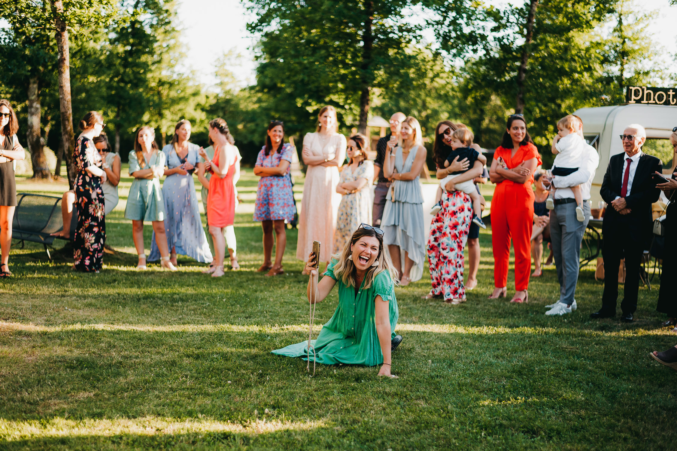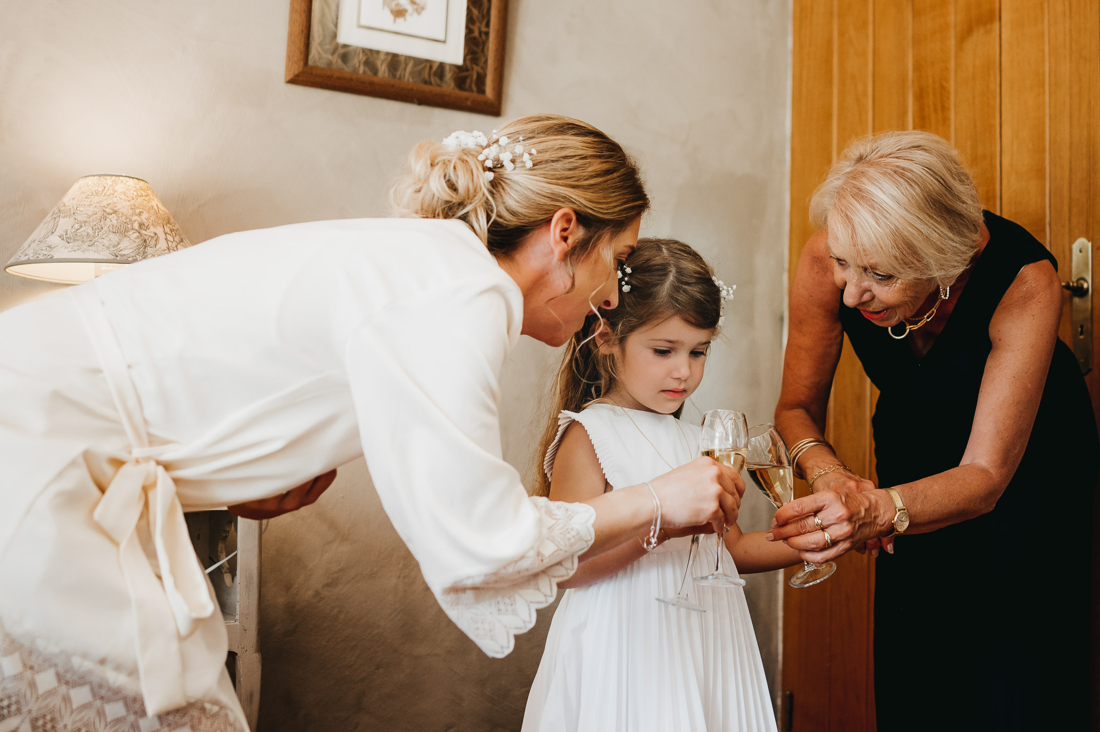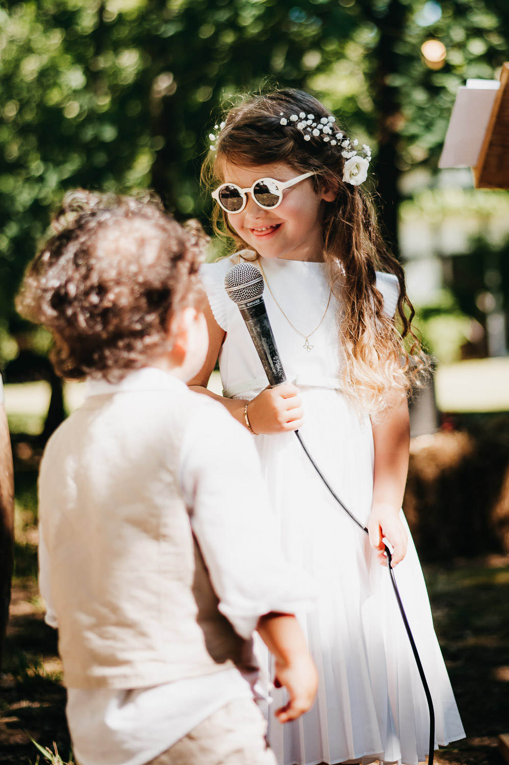 Cette journée laissera de doux et pétillants souvenirs ; des préparatifs accompagnés de leurs amis et enfants, une cérémonie chaudement émotive, une jolie décoration florale, leurs enfants qui pétillent d’amour, la jolie chanson surprise de Lily, des sauts dans les airs, une balade d’amour pour leur séance couple, un cocktail version karaoké, une entrée en salle de folie ! Une ouverture de bal qui scintille et une piste de danse qui vrille de sourires.