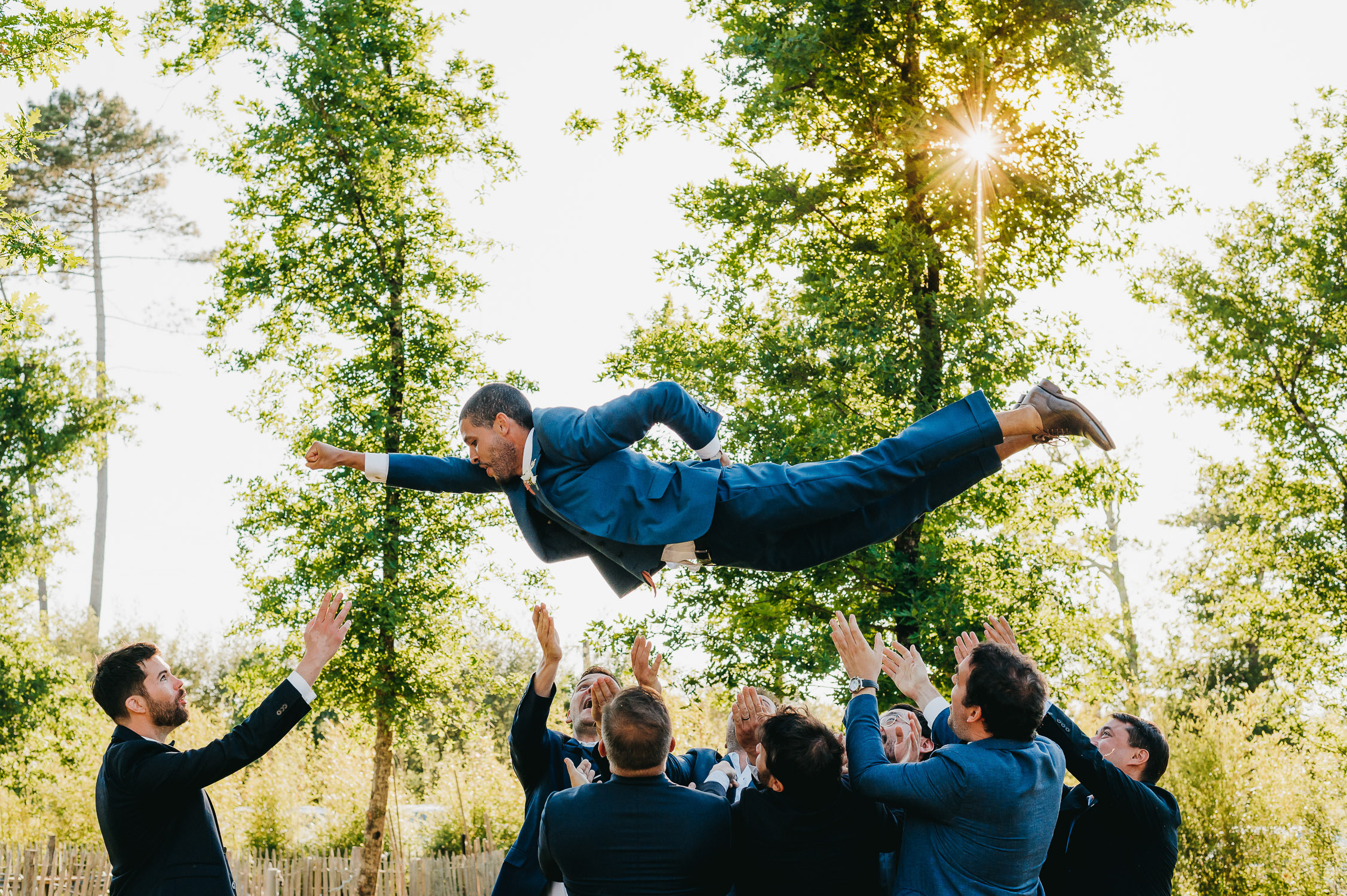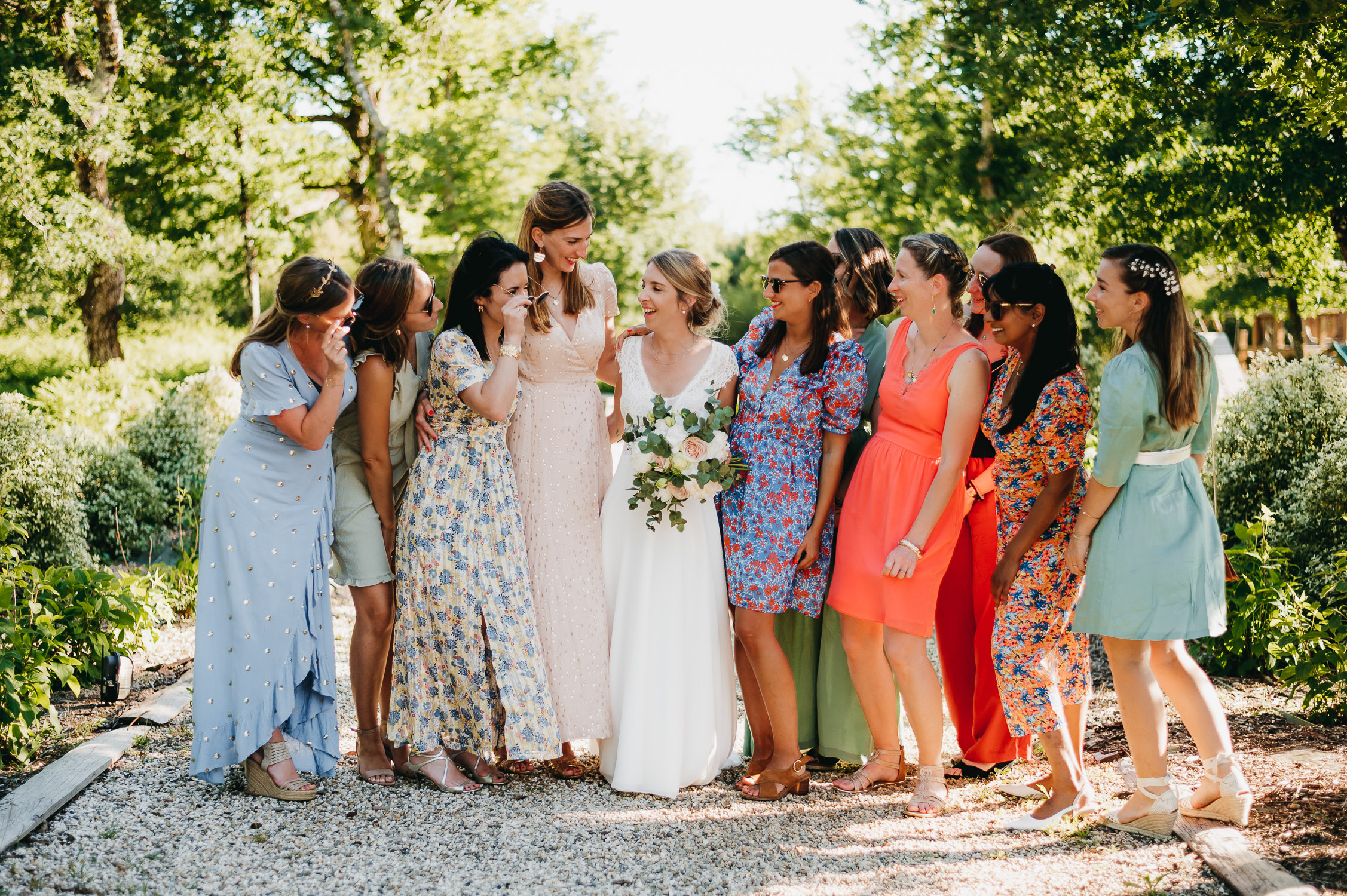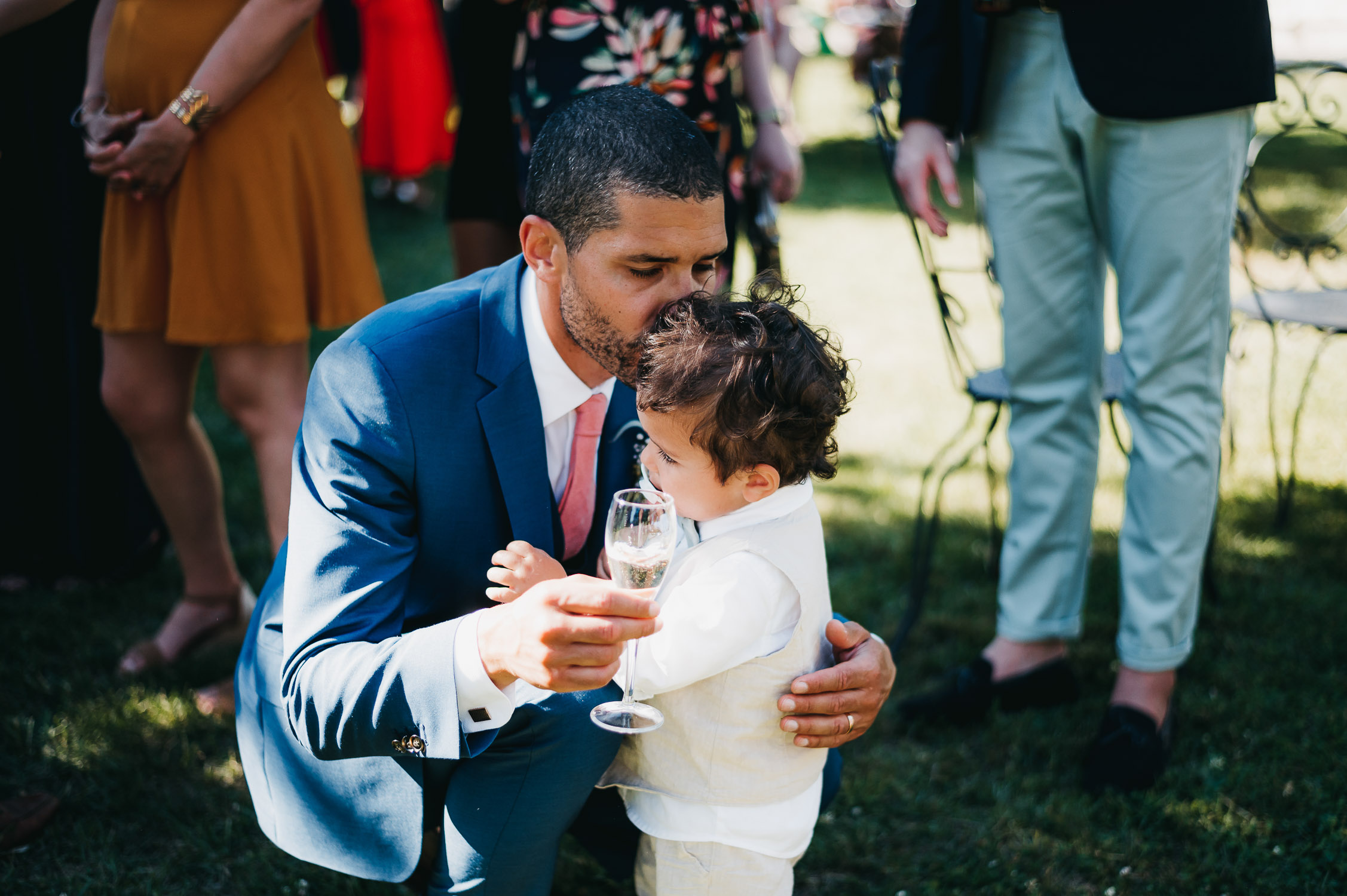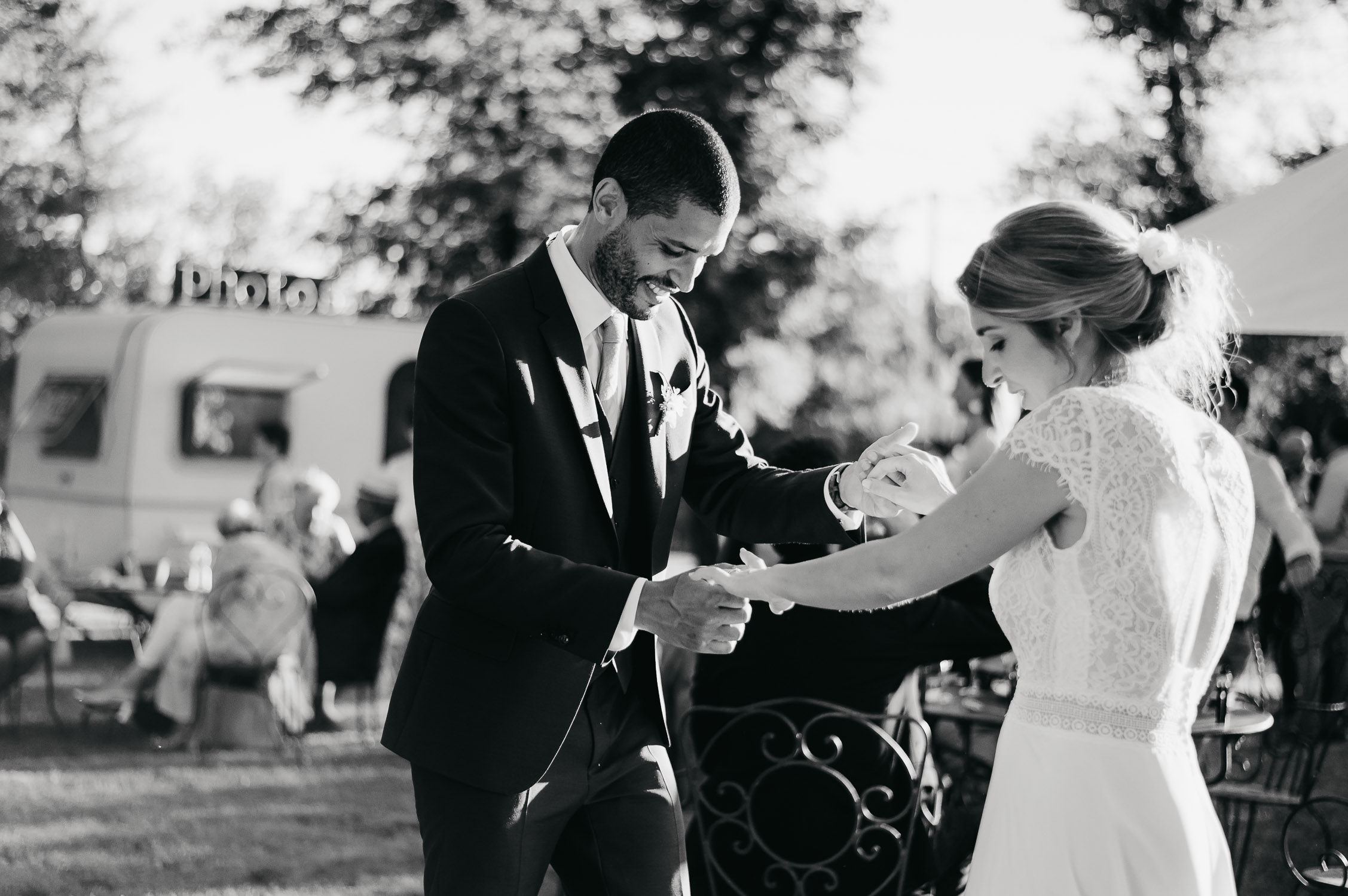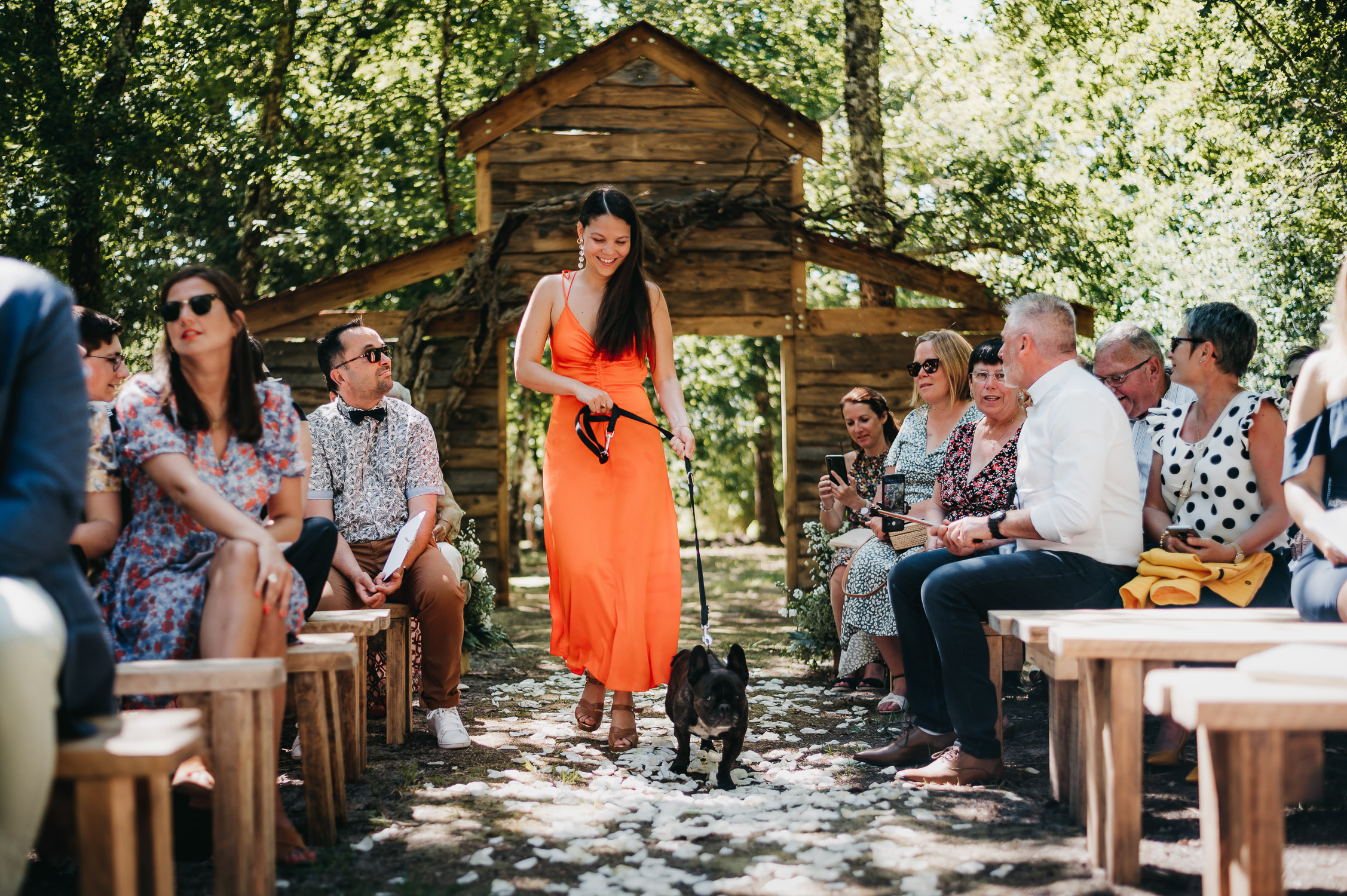Cette journée laissera de doux et pétillants souvenirs ; des préparatifs accompagnés de leurs amis et enfants, une cérémonie chaudement émotive, une jolie décoration florale, leurs enfants qui pétillent d’amour, la jolie chanson surprise de Lily, des sauts dans les airs, une balade d’amour pour leur séance couple, un cocktail version karaoké, une entrée en salle de folie ! Une ouverture de bal qui scintille et une piste de danse qui vrille de sourires.
