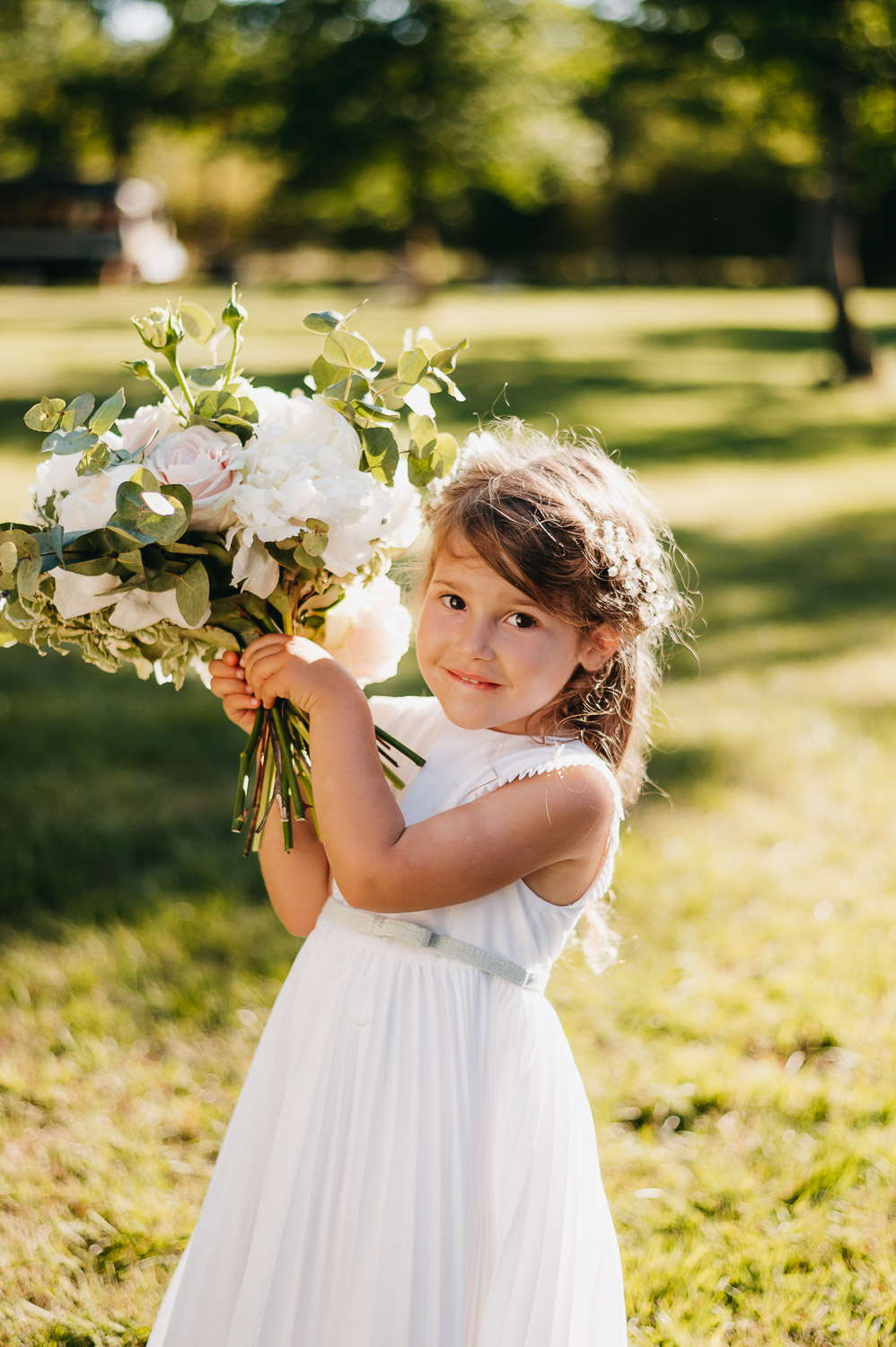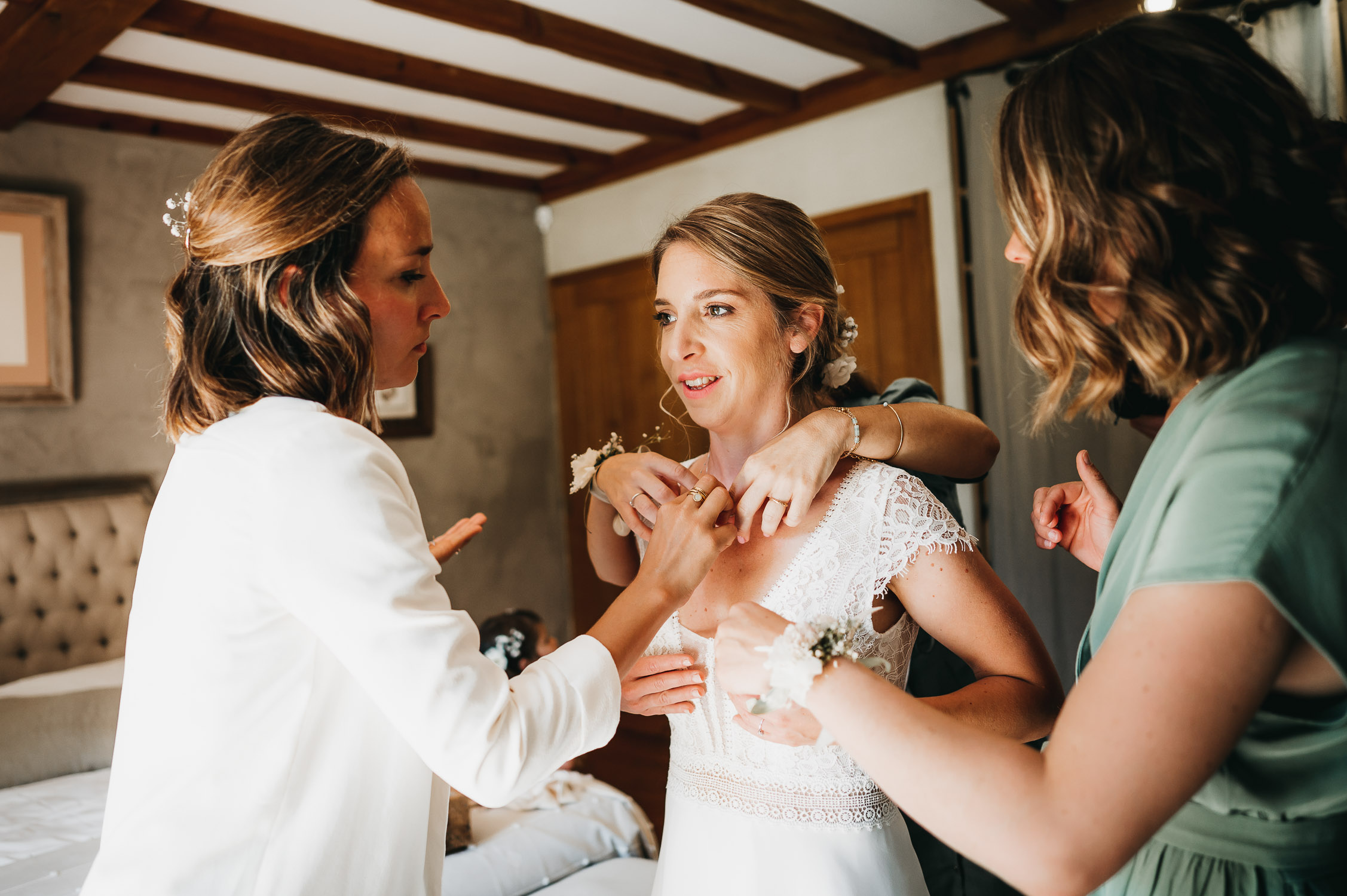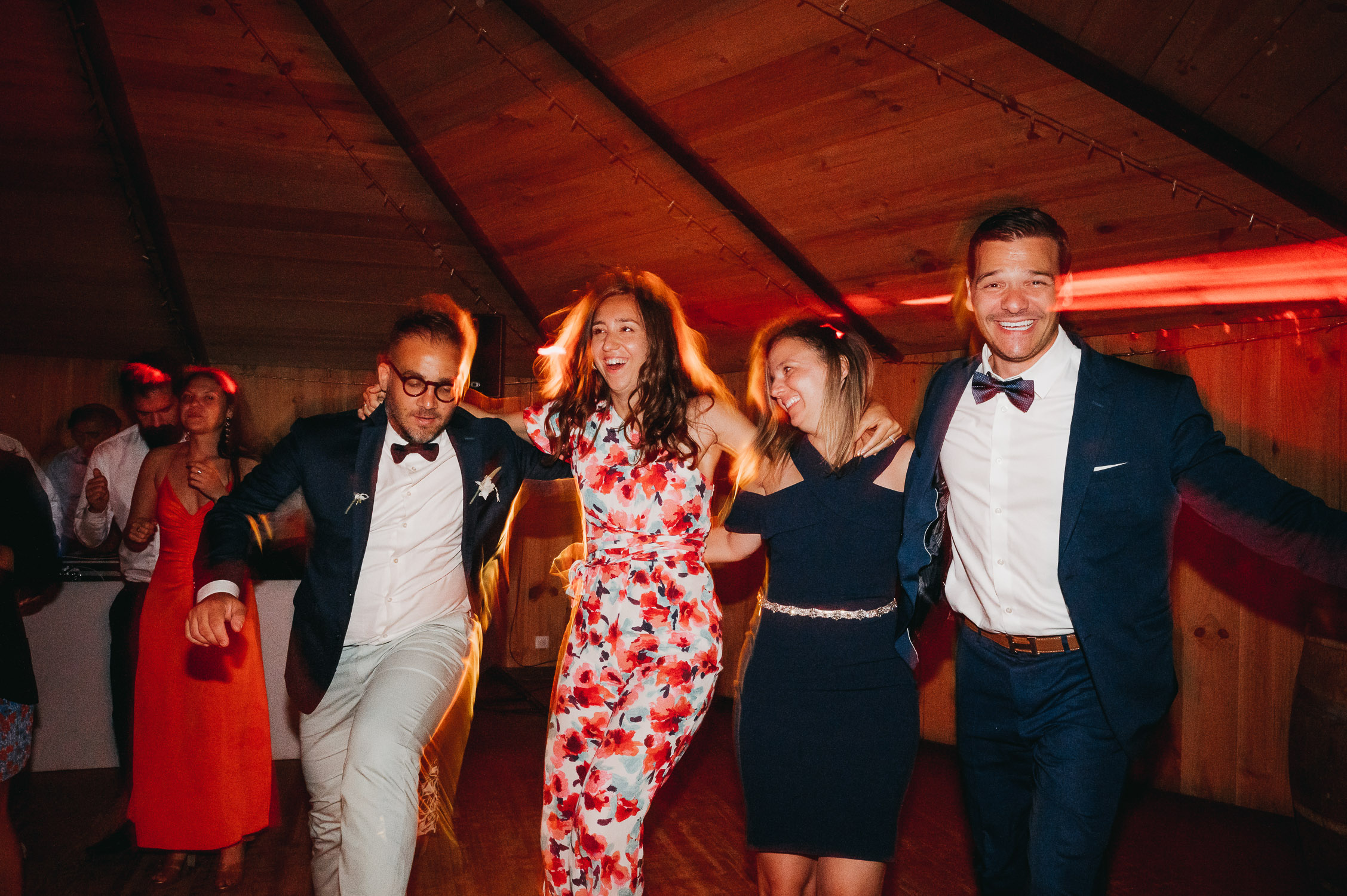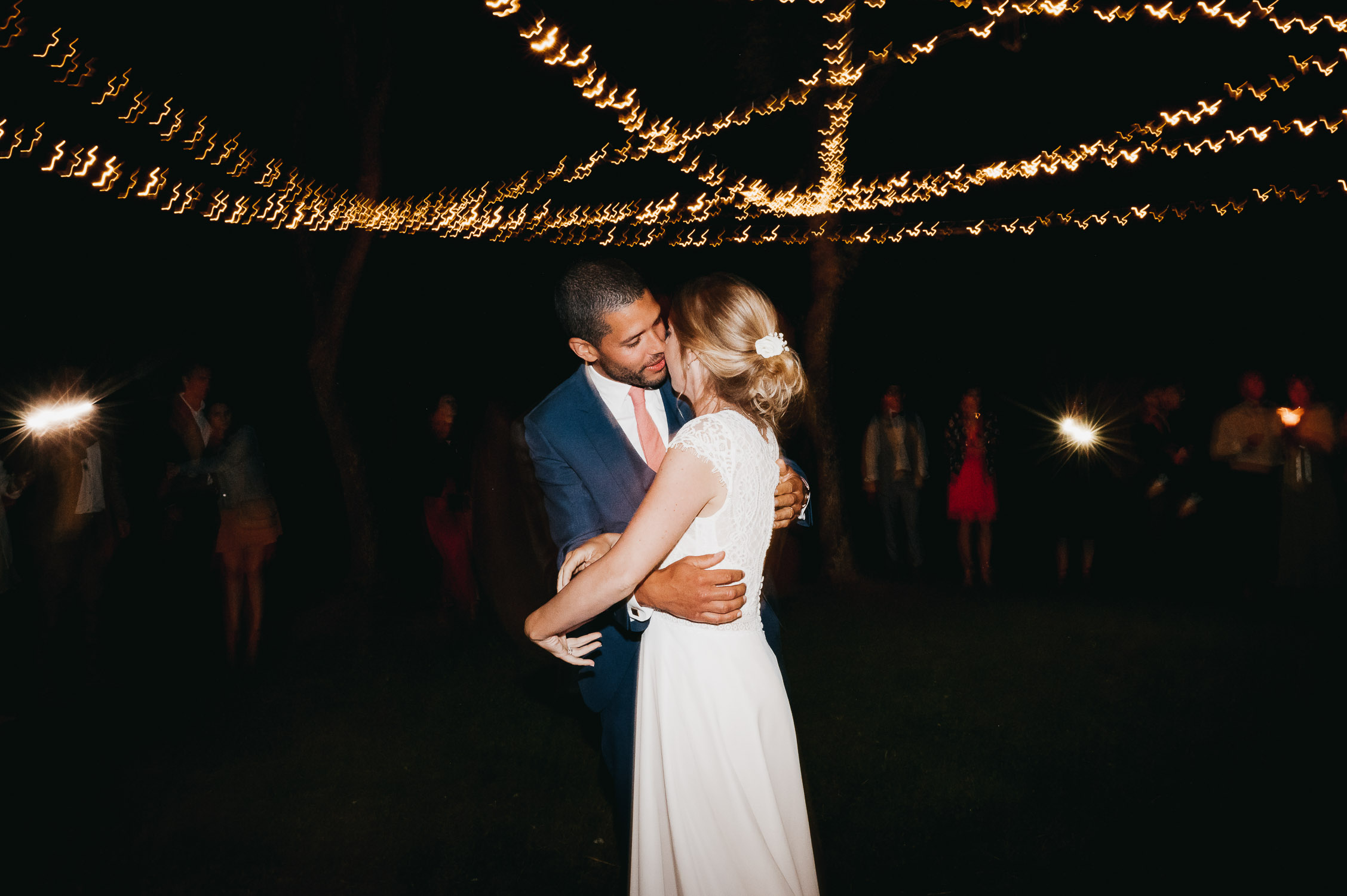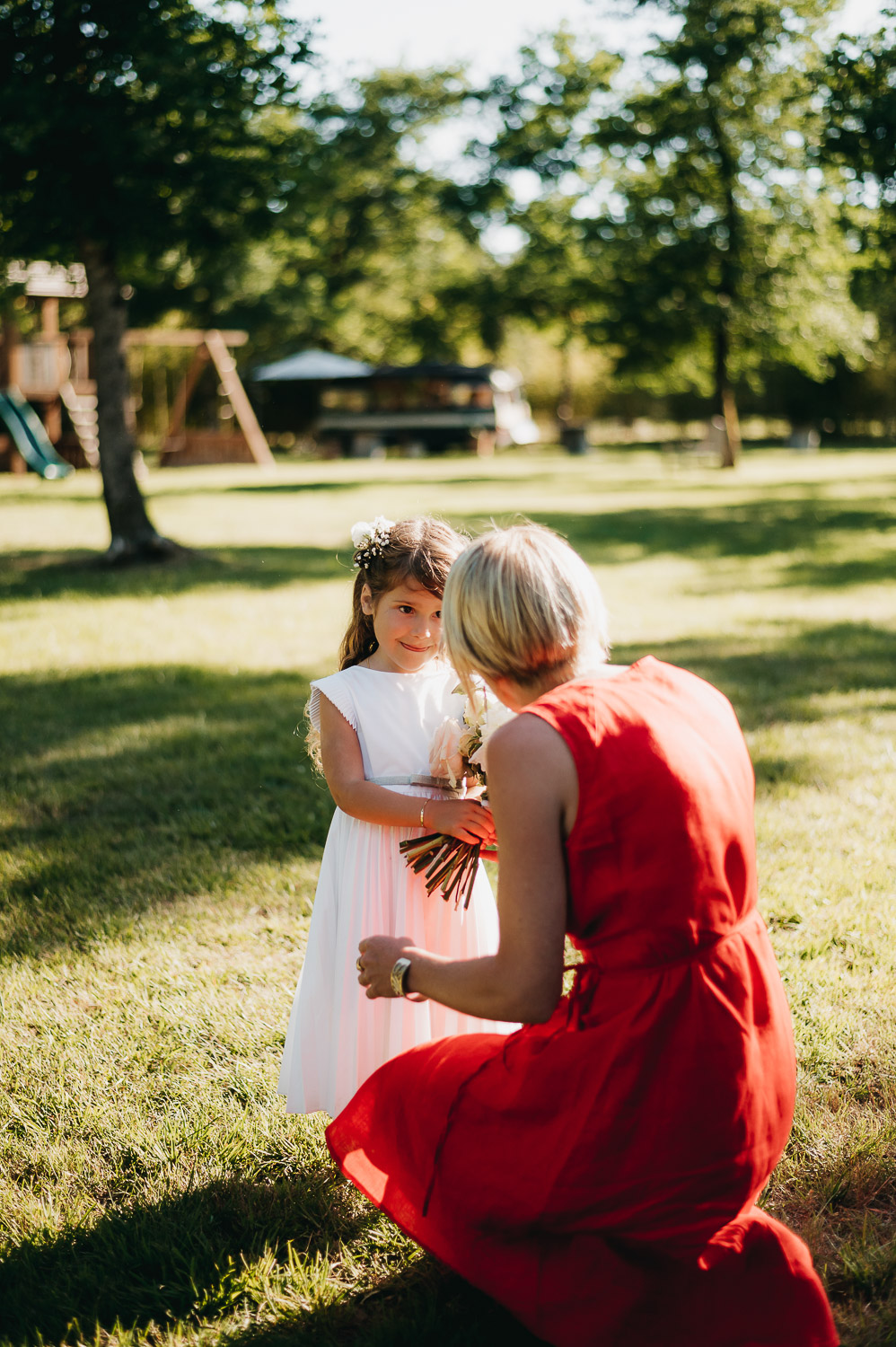 Cette journée laissera de doux et pétillants souvenirs ; des préparatifs accompagnés de leurs amis et enfants, une cérémonie chaudement émotive, une jolie décoration florale, leurs enfants qui pétillent d’amour, la jolie chanson surprise de Lily, des sauts dans les airs, une balade d’amour pour leur séance couple, un cocktail version karaoké, une entrée en salle de folie ! Une ouverture de bal qui scintille et une piste de danse qui vrille de sourires.
