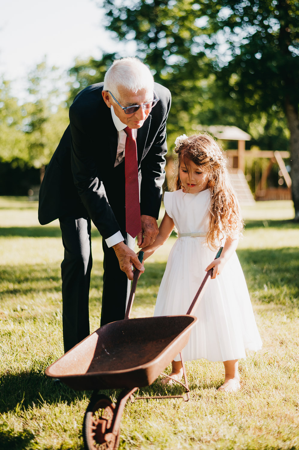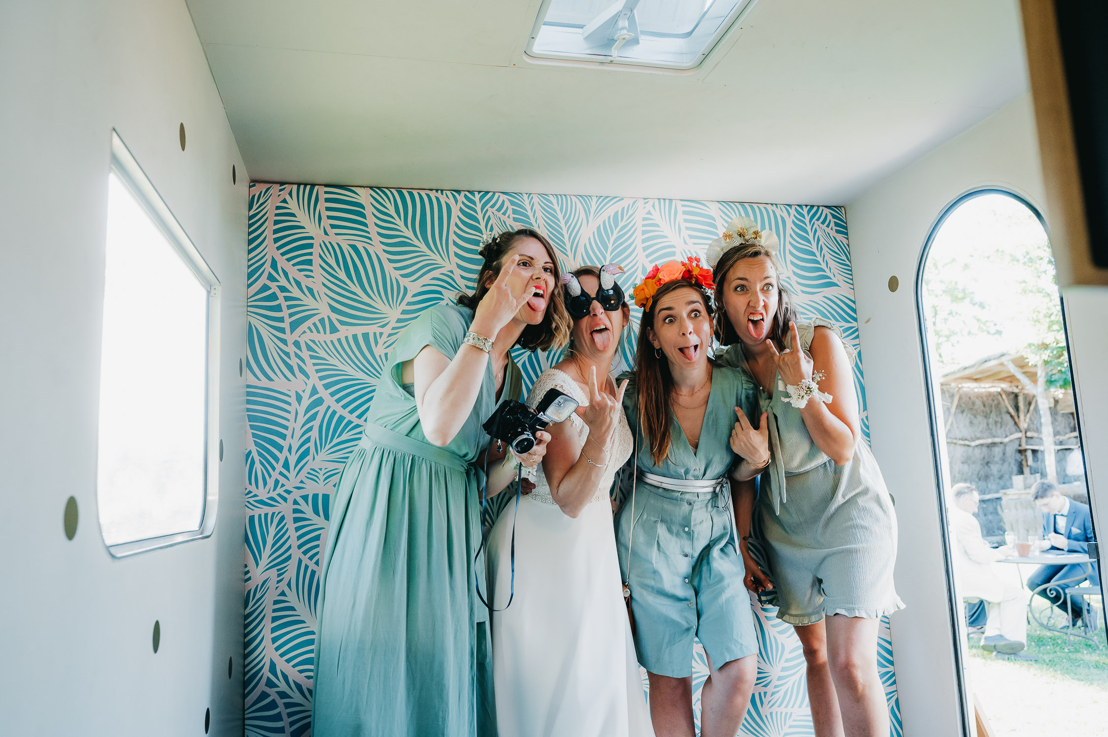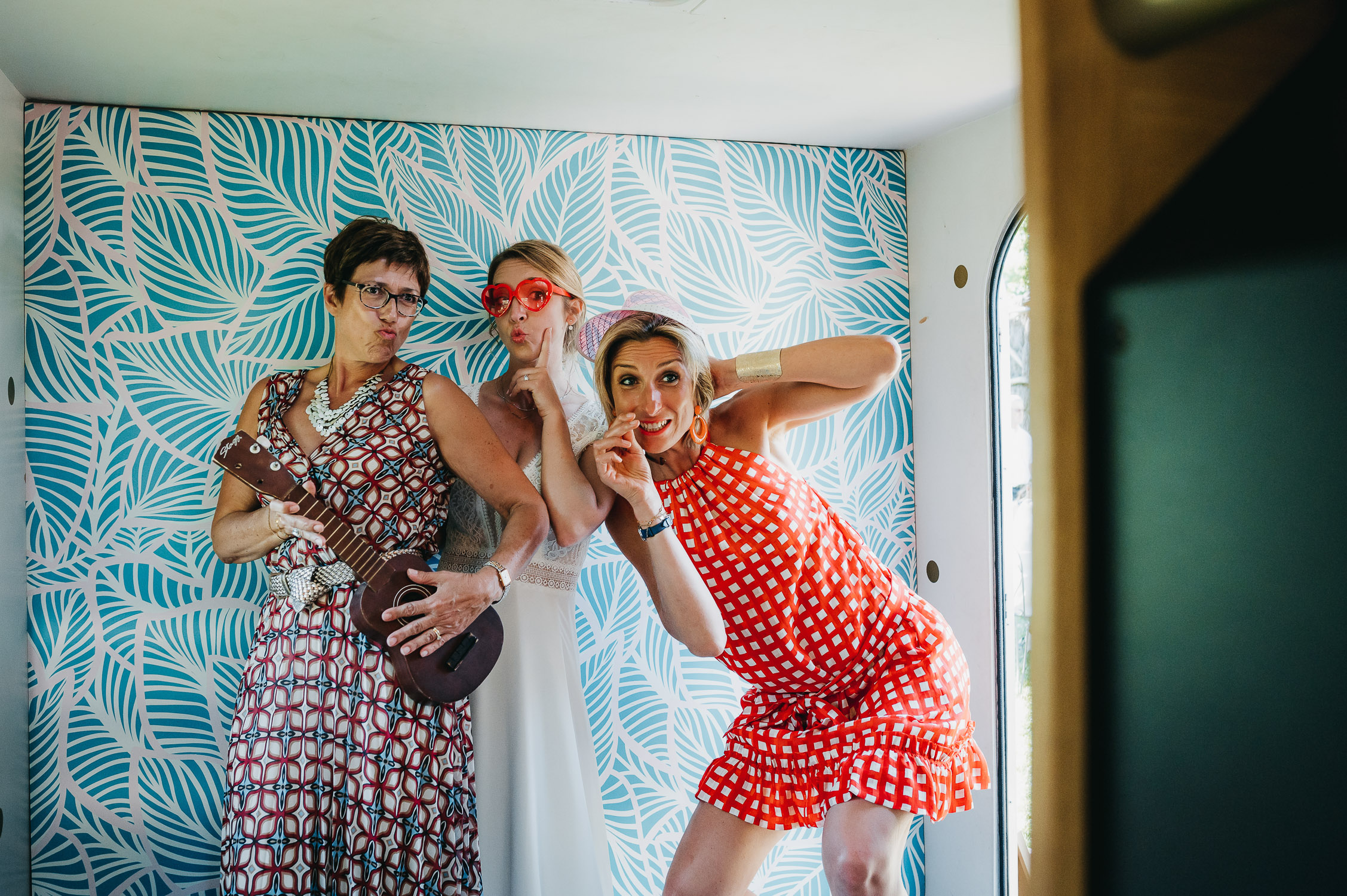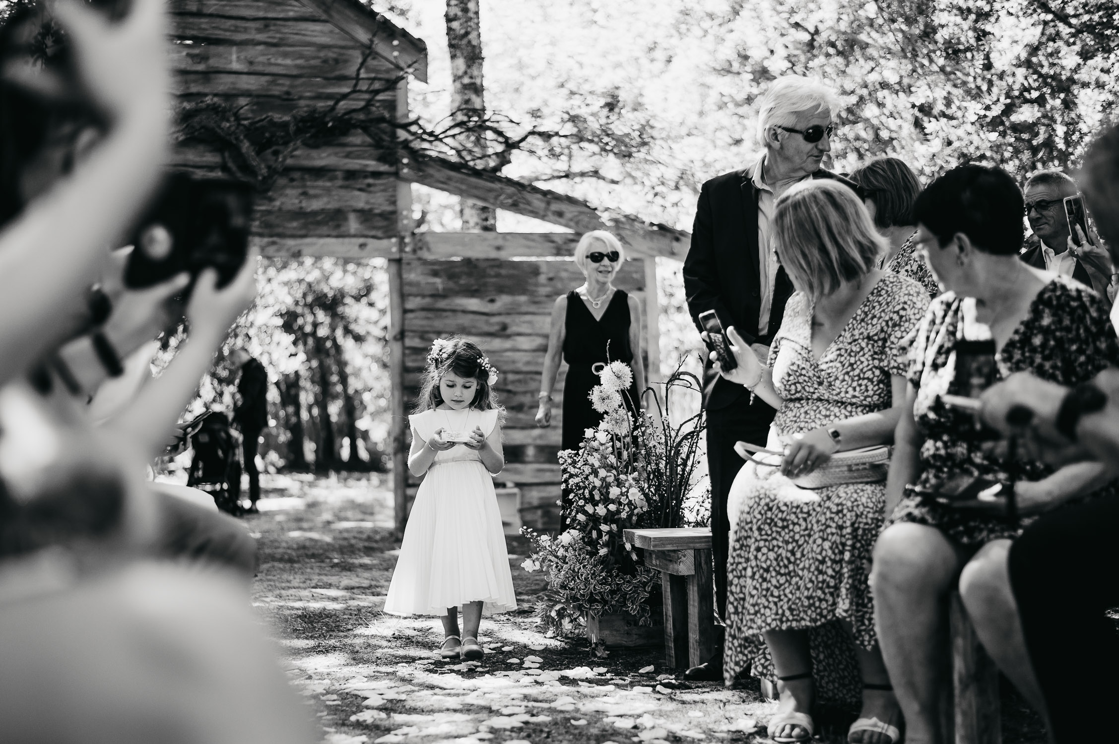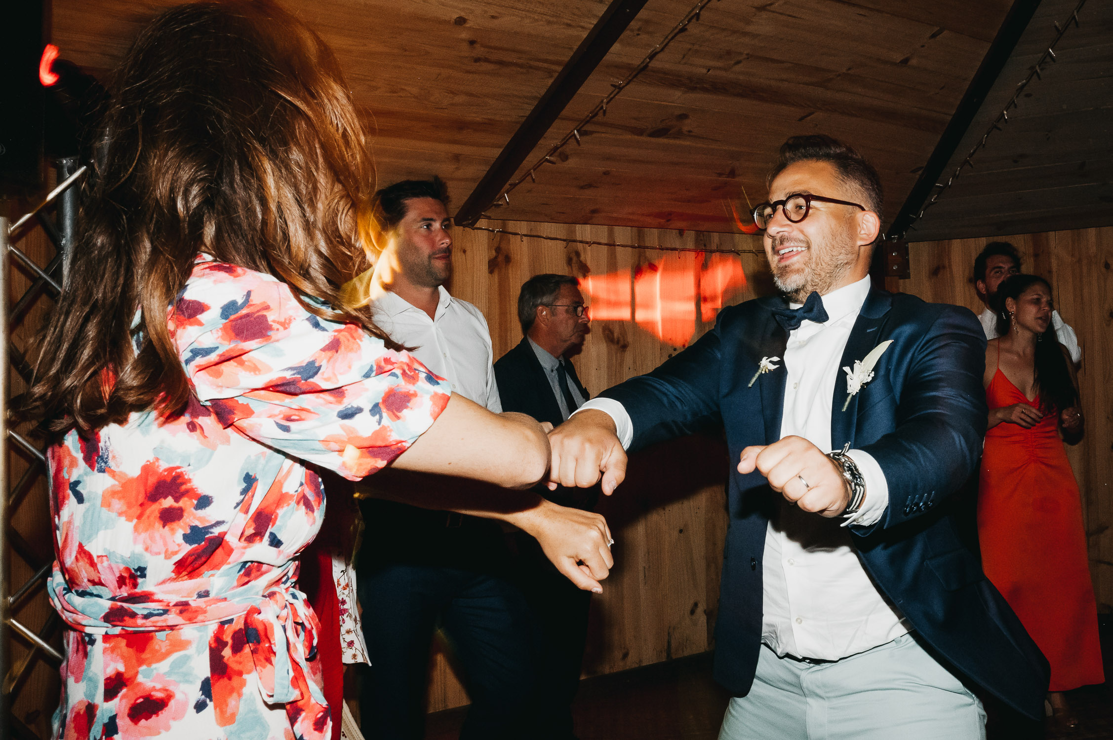 Cette journée laissera de doux et pétillants souvenirs ; des préparatifs accompagnés de leurs amis et enfants, une cérémonie chaudement émotive, une jolie décoration florale, leurs enfants qui pétillent d’amour, la jolie chanson surprise de Lily, des sauts dans les airs, une balade d’amour pour leur séance couple, un cocktail version karaoké, une entrée en salle de folie ! Une ouverture de bal qui scintille et une piste de danse qui vrille de sourires.