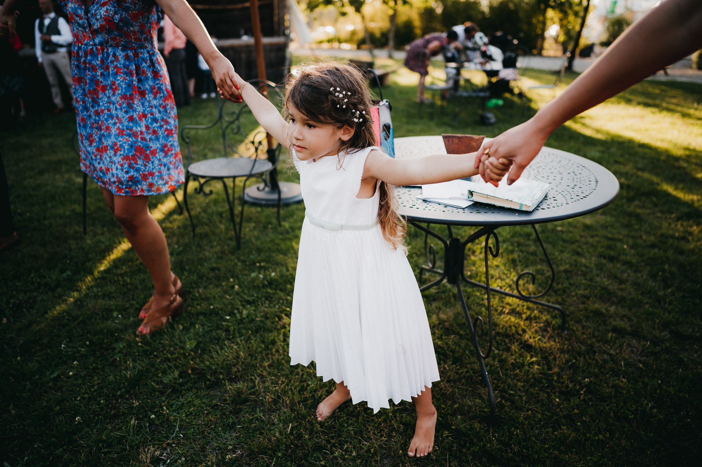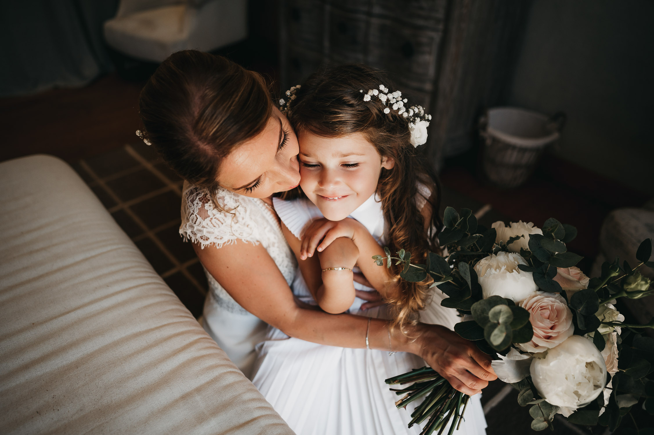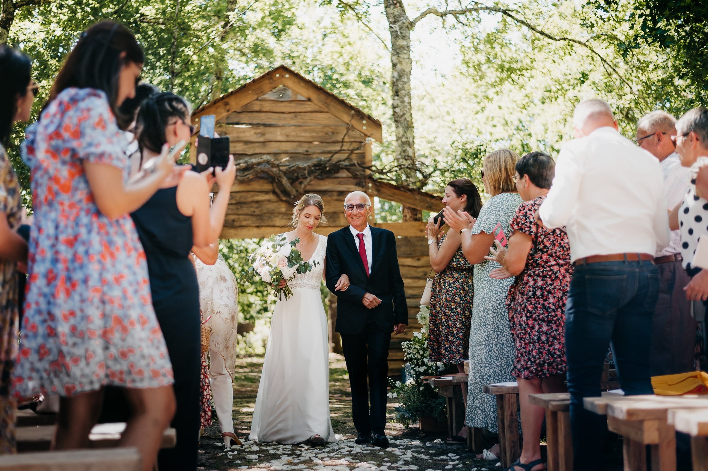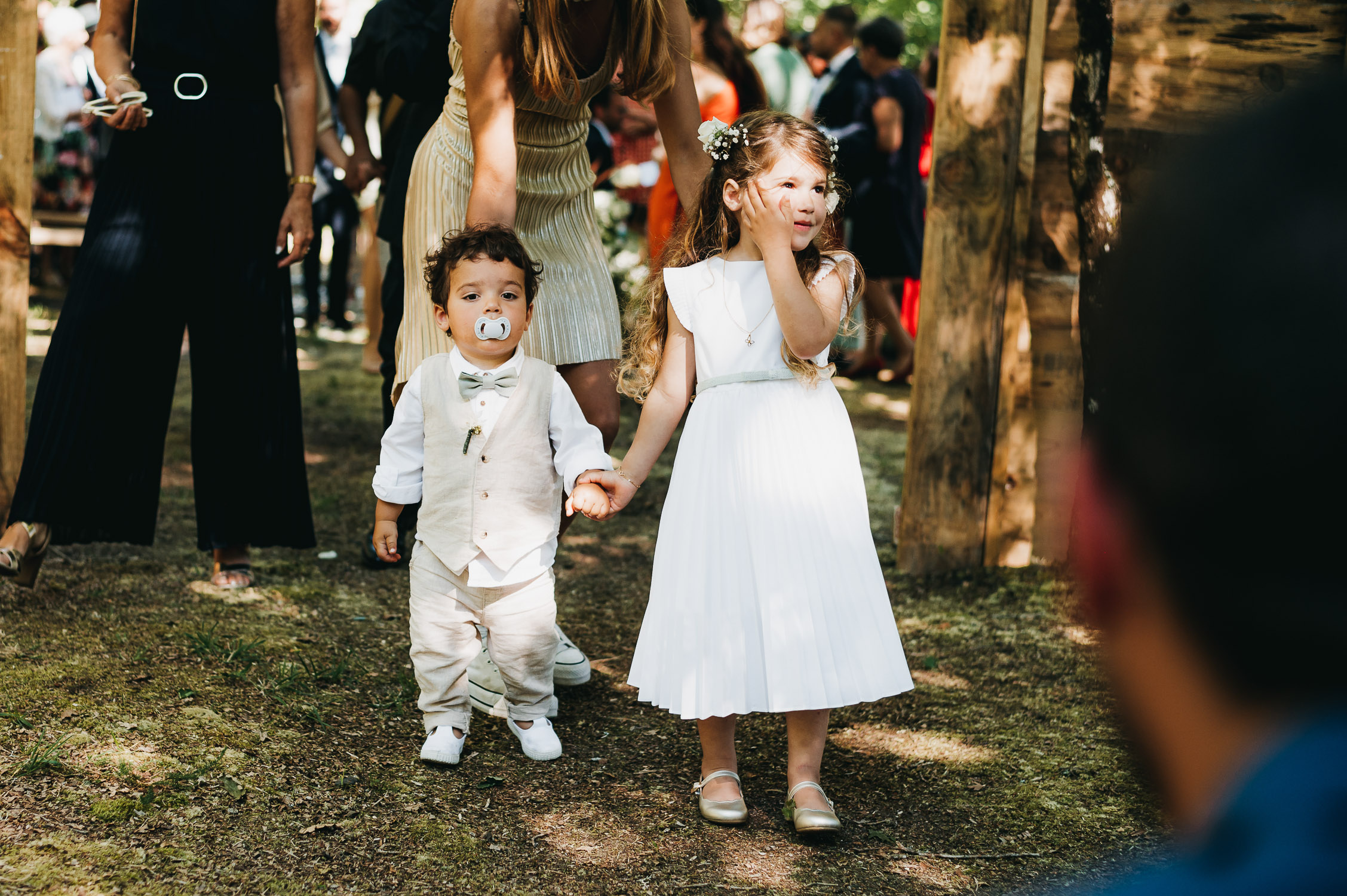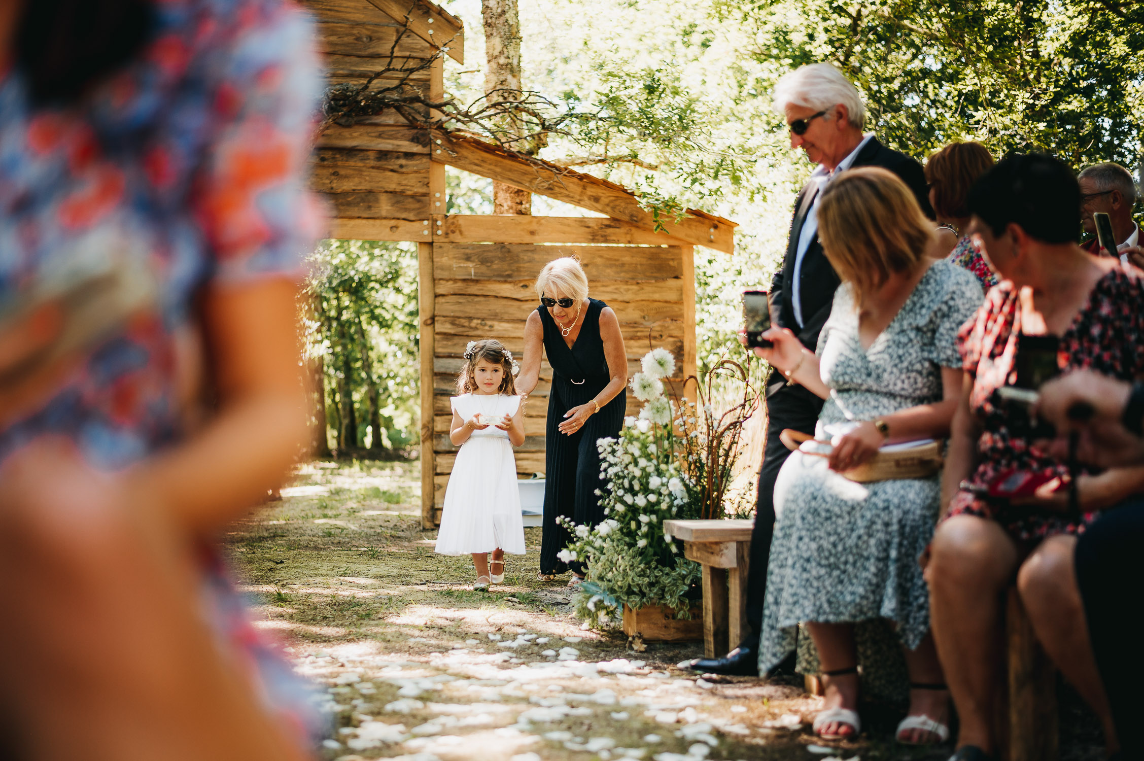 Cette journée laissera de doux et pétillants souvenirs ; des préparatifs accompagnés de leurs amis et enfants, une cérémonie chaudement émotive, une jolie décoration florale, leurs enfants qui pétillent d’amour, la jolie chanson surprise de Lily, des sauts dans les airs, une balade d’amour pour leur séance couple, un cocktail version karaoké, une entrée en salle de folie ! Une ouverture de bal qui scintille et une piste de danse qui vrille de sourires.