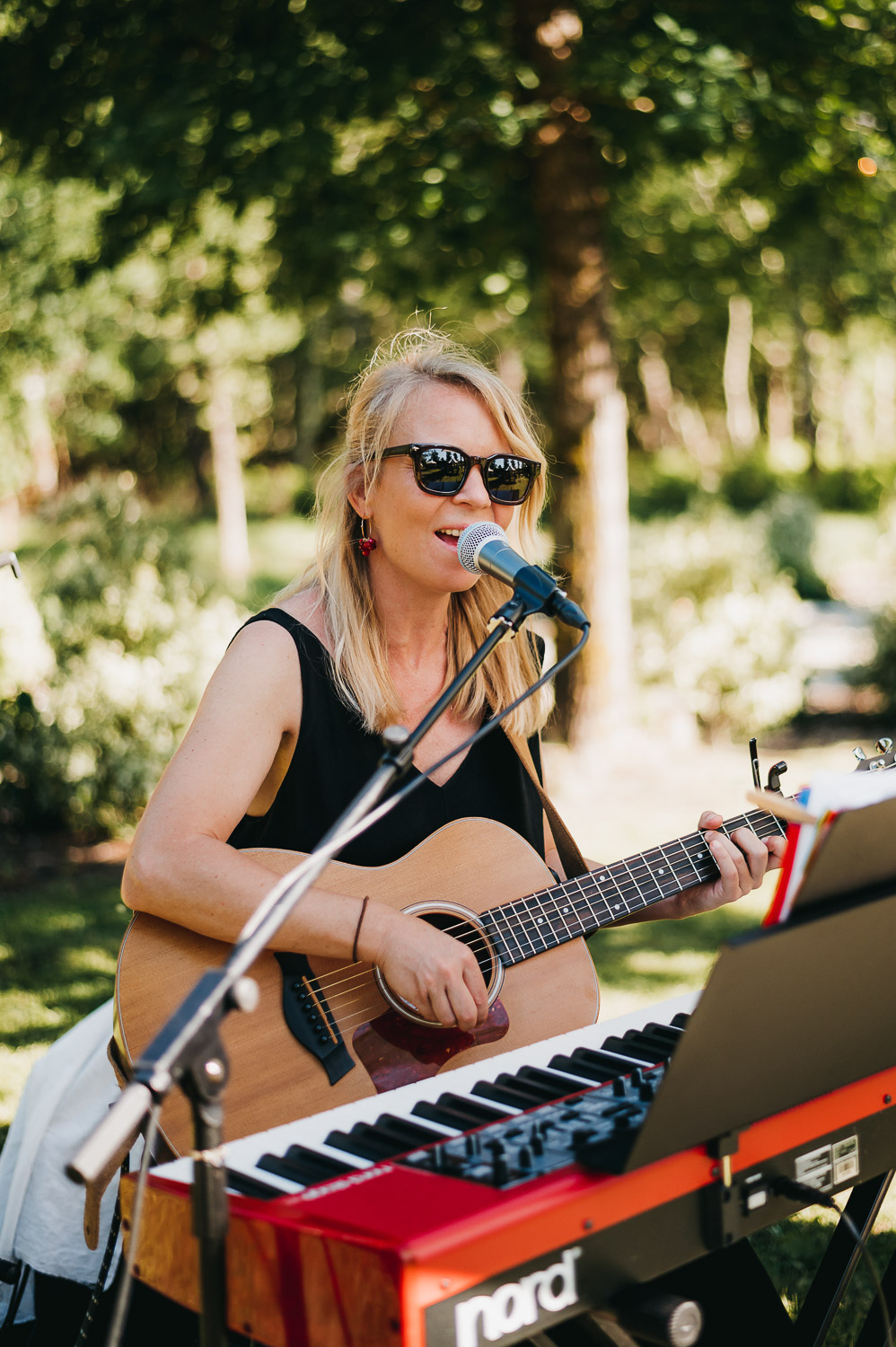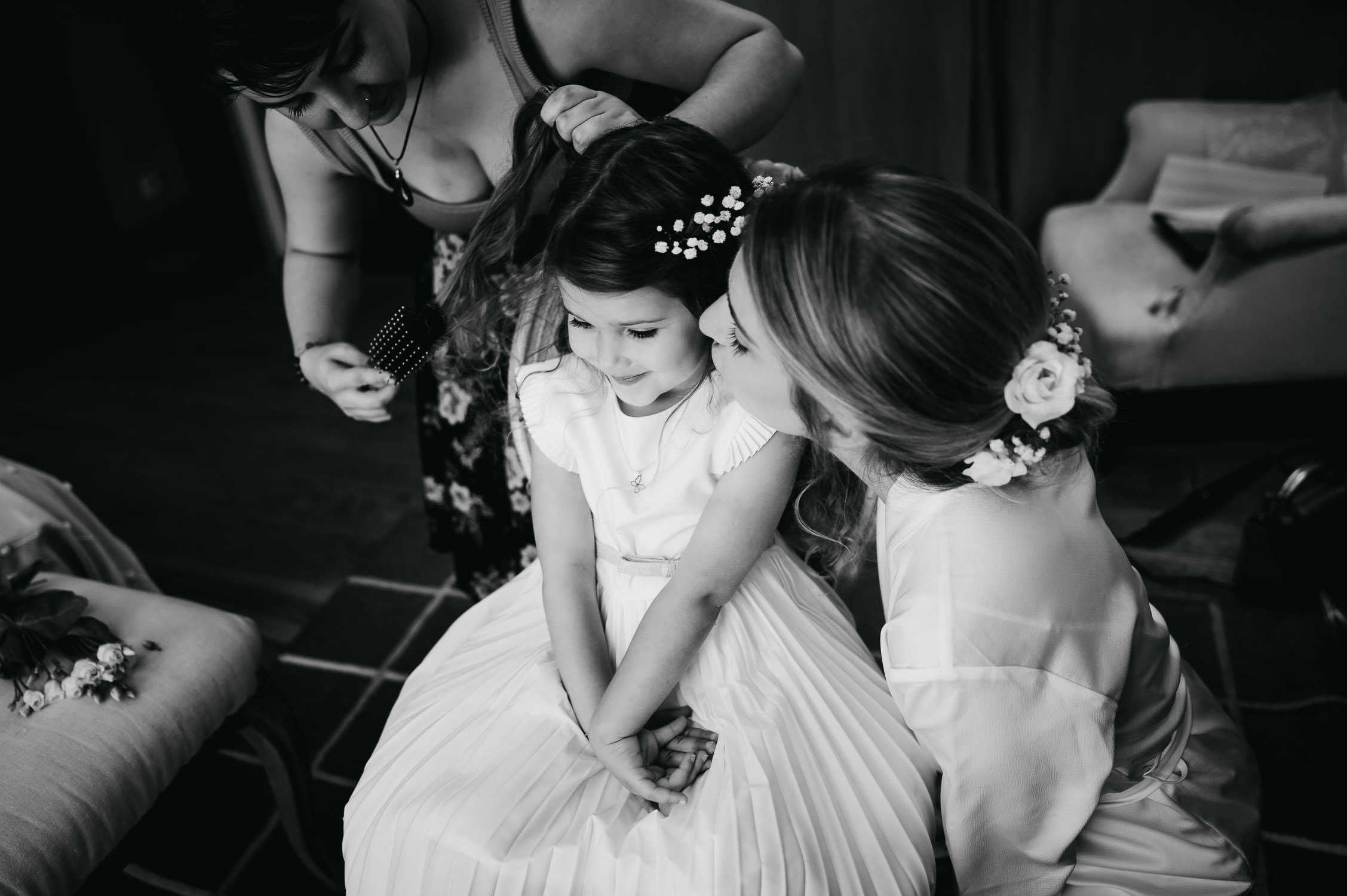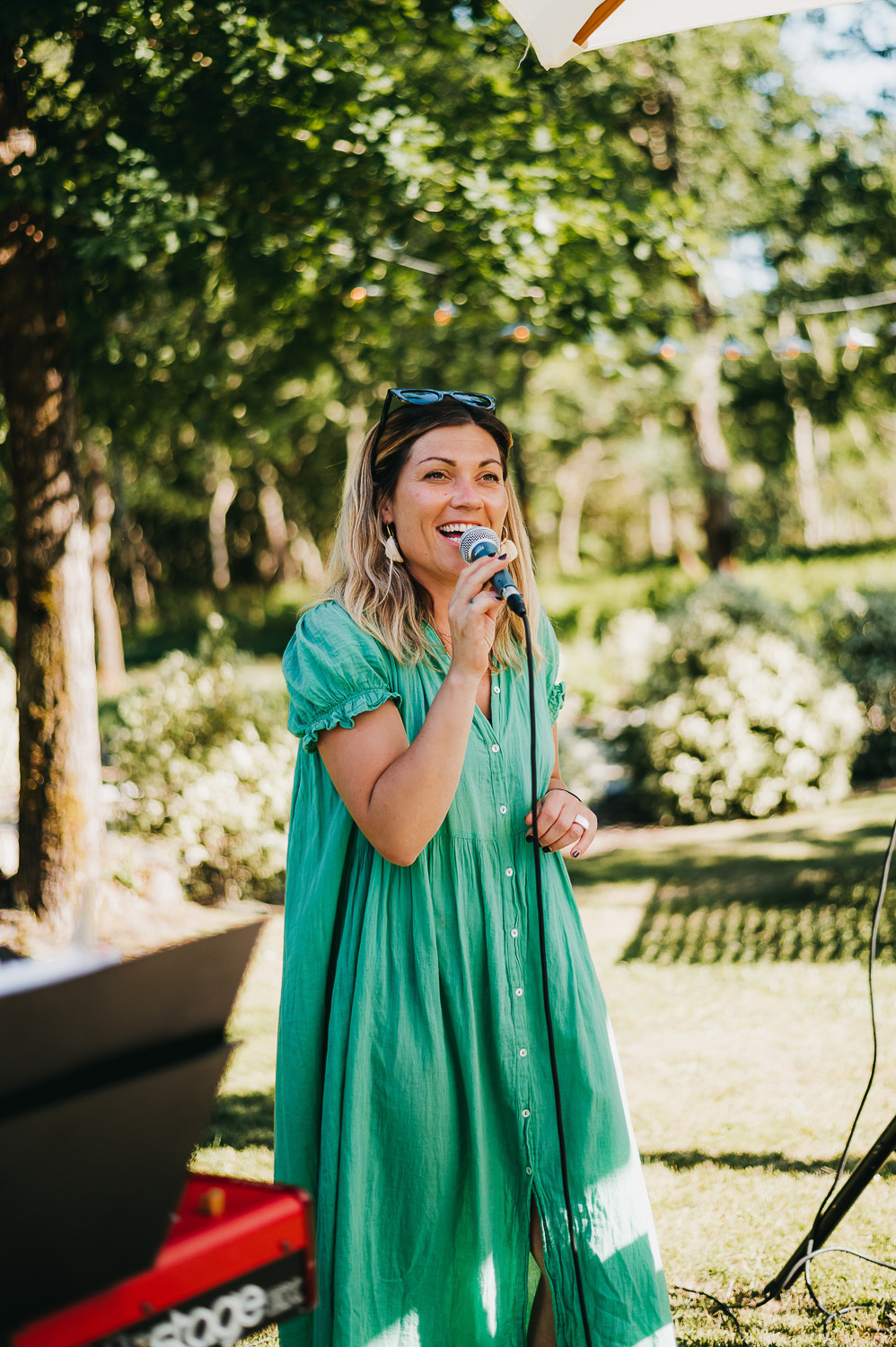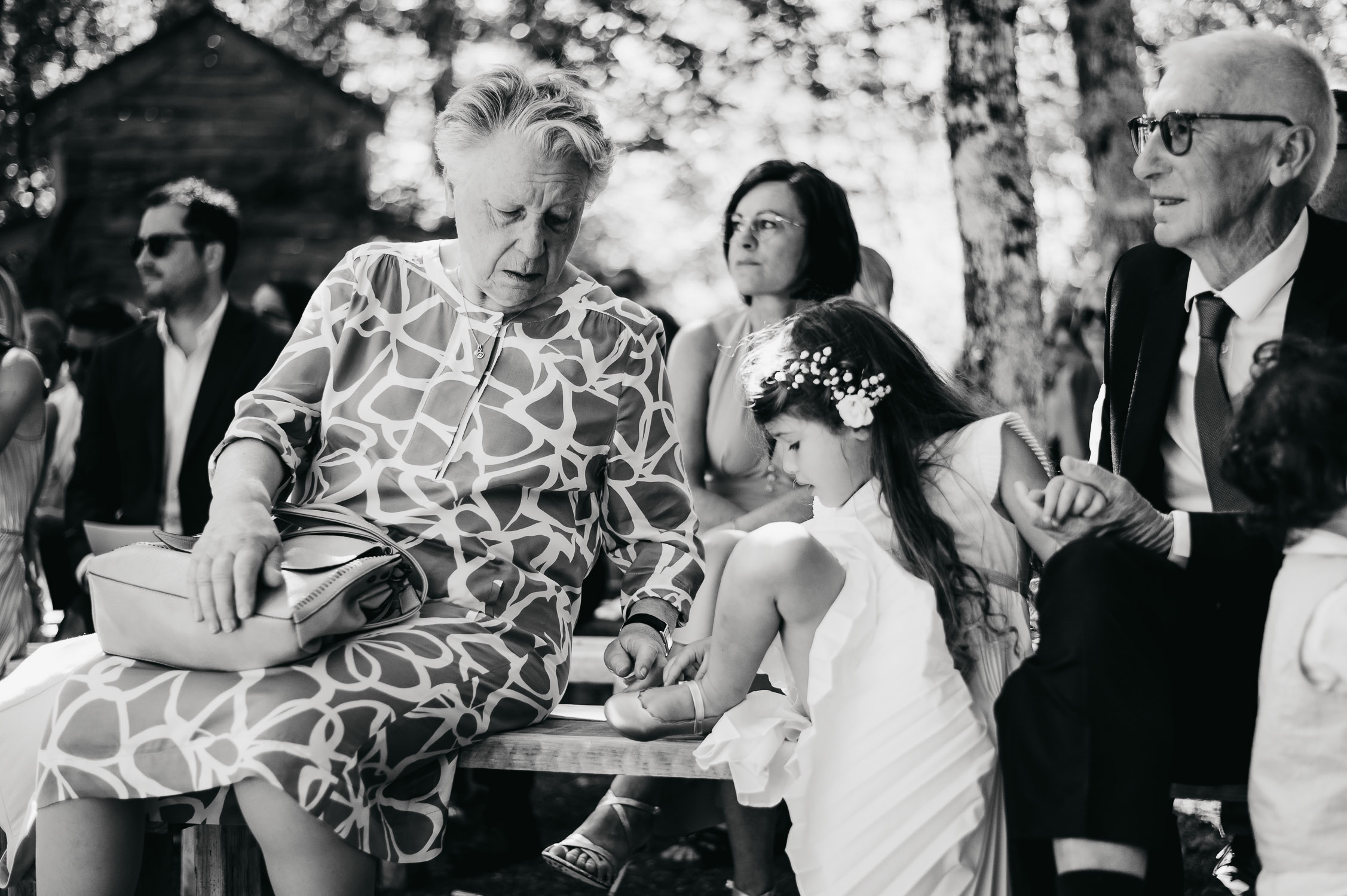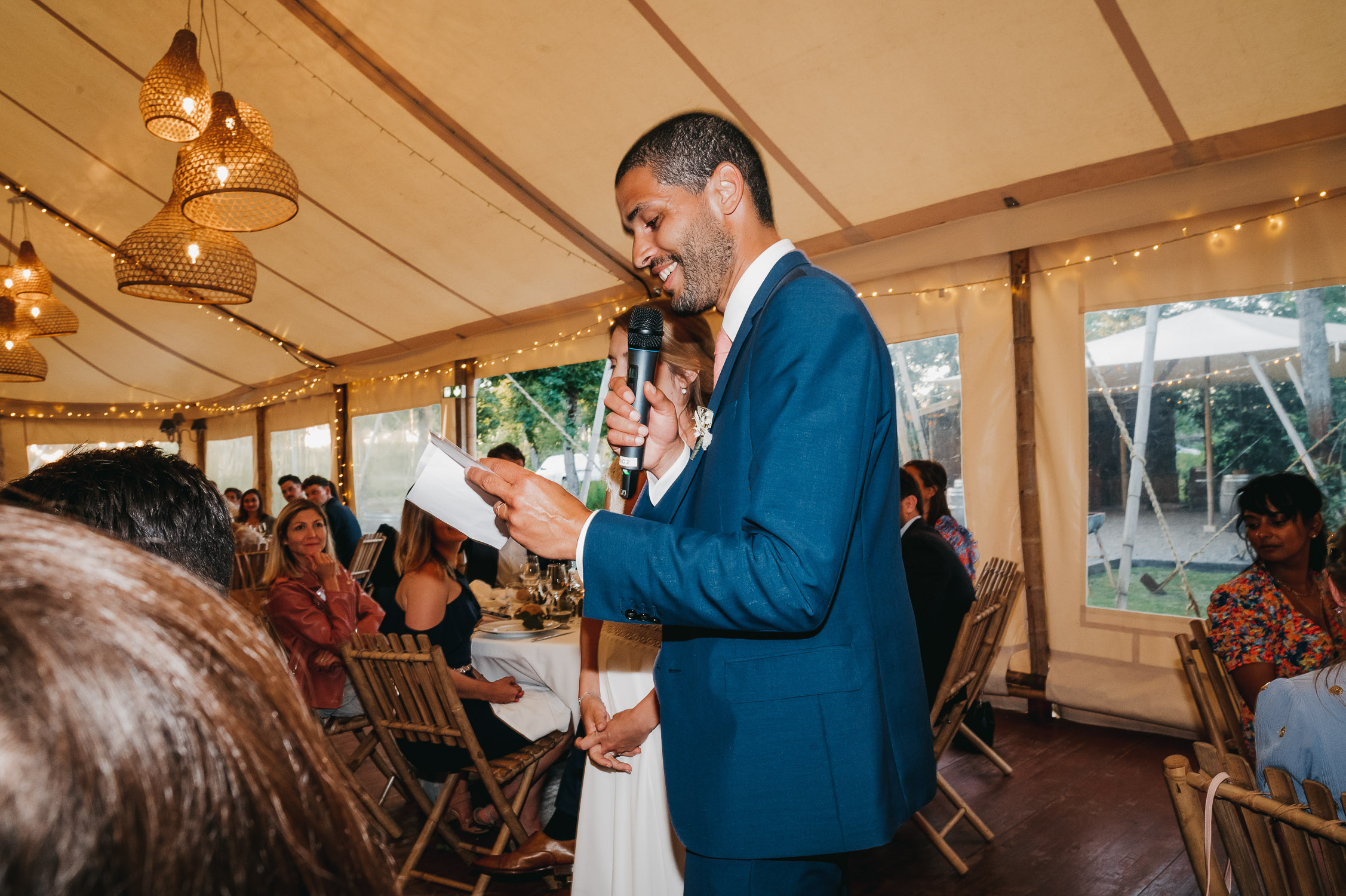 Cette journée laissera de doux et pétillants souvenirs ; des préparatifs accompagnés de leurs amis et enfants, une cérémonie chaudement émotive, une jolie décoration florale, leurs enfants qui pétillent d’amour, la jolie chanson surprise de Lily, des sauts dans les airs, une balade d’amour pour leur séance couple, un cocktail version karaoké, une entrée en salle de folie ! Une ouverture de bal qui scintille et une piste de danse qui vrille de sourires.