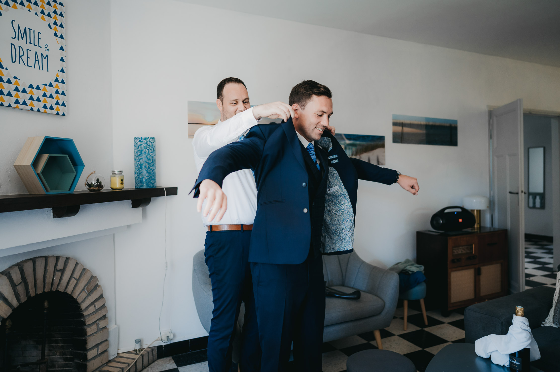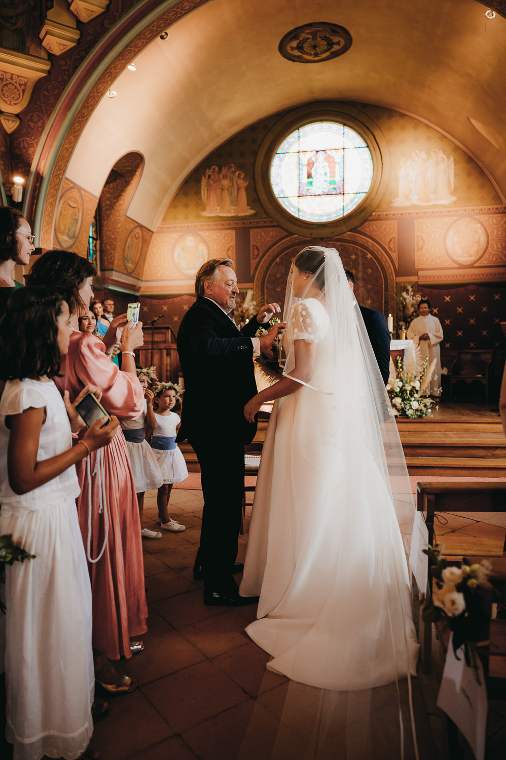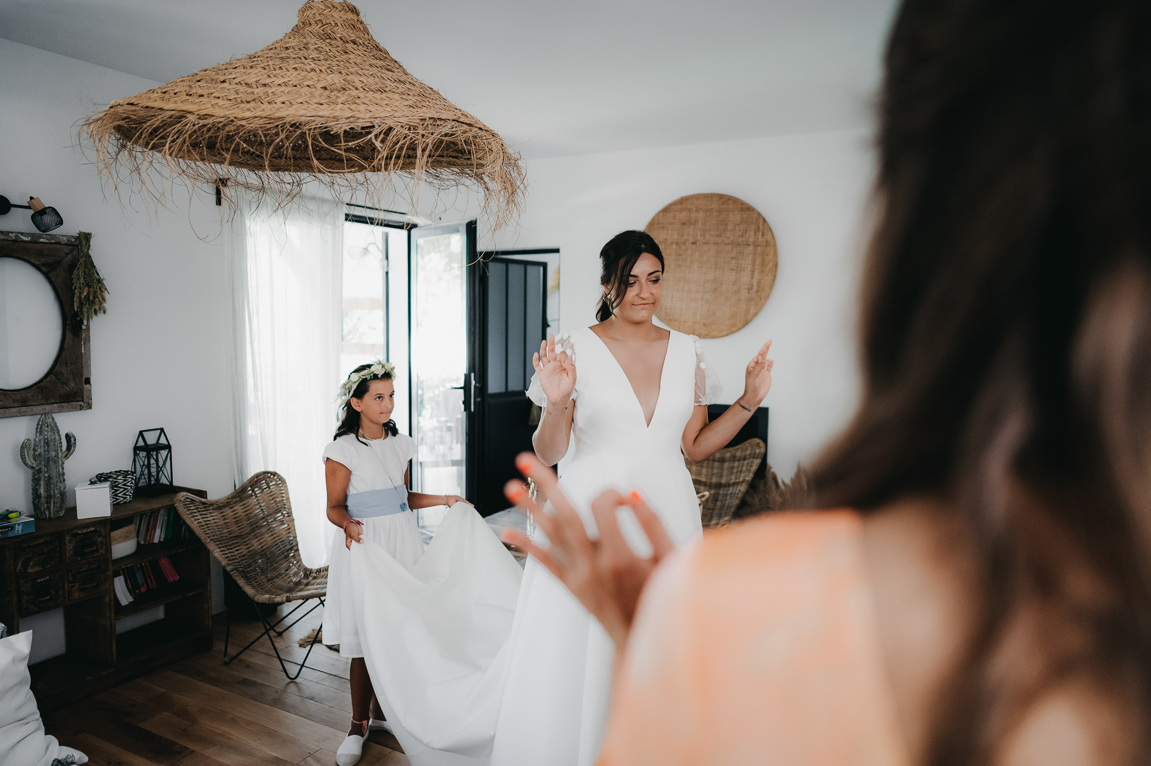 La distance ne nous a pas empêché de préparer leur jour J ! Bien au contraire. Nous avons beaucoup échangé en amont sur leur mariage via WhatsApp. Ils m’ont partagé les photos de leur premier mariage civil à Lille, les week-ends en famille, les sorties avec les amis. Et quand ces derniers sont descendus pour avancer sur leur mariage, nous en avons profité pour boire un café. Il est important pour moi de garder un lien avec mes mariés tout au long des préparatifs. Ces échanges sont des indices pour adapter mon reportage à leur image.