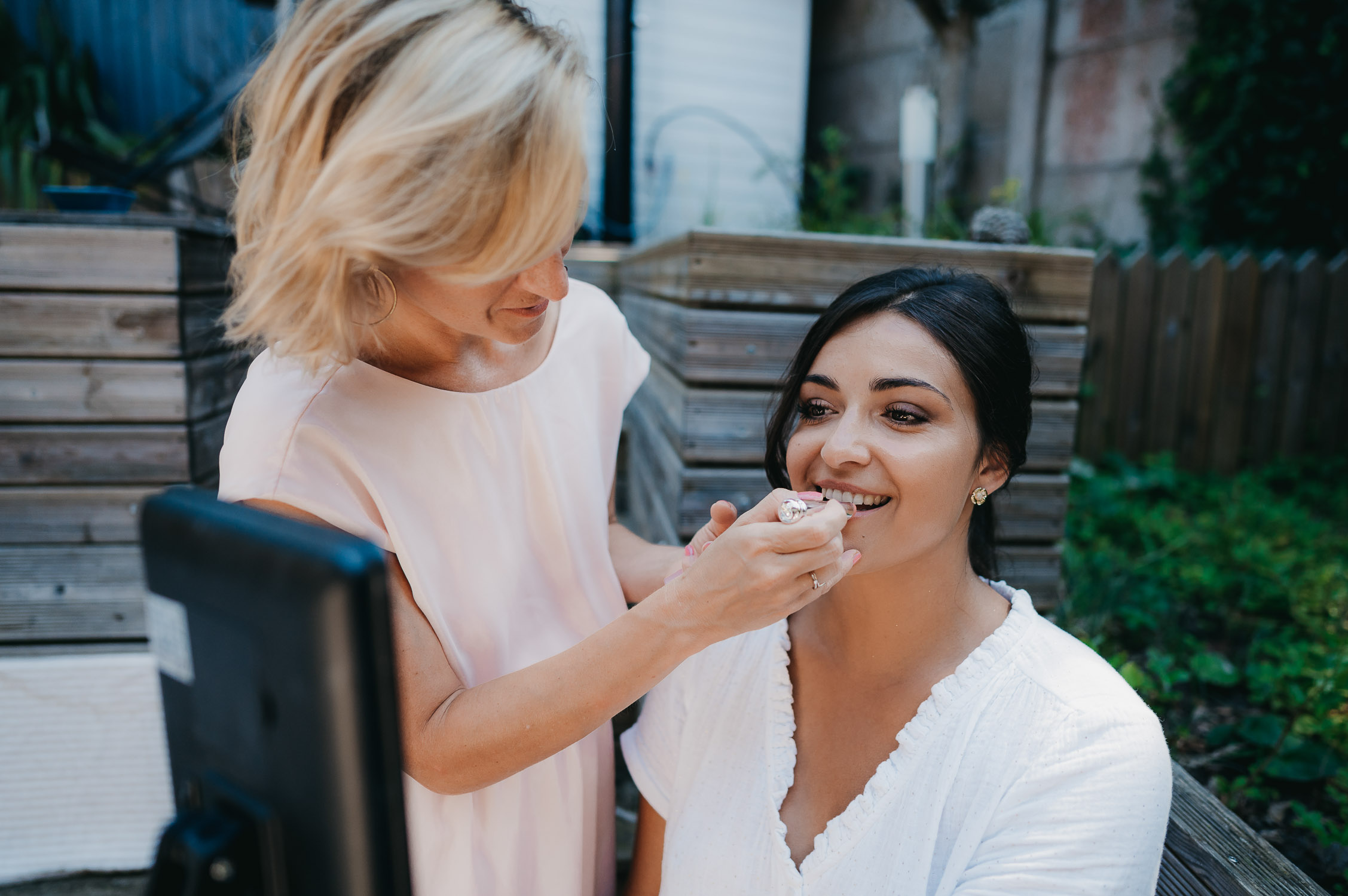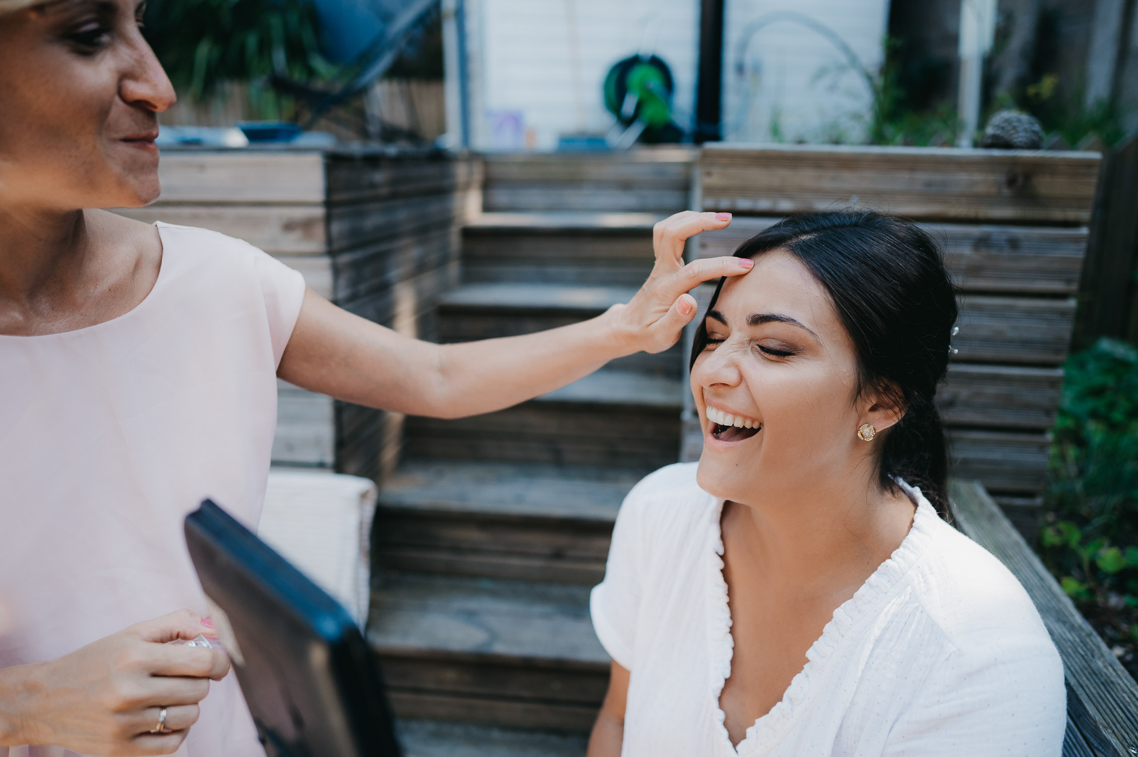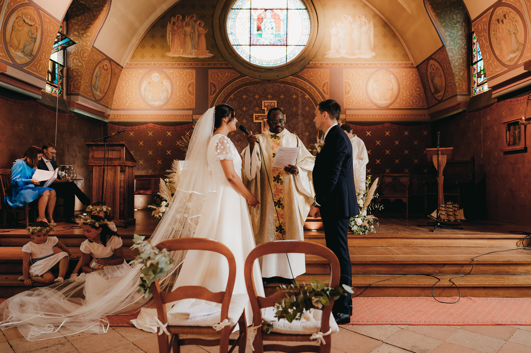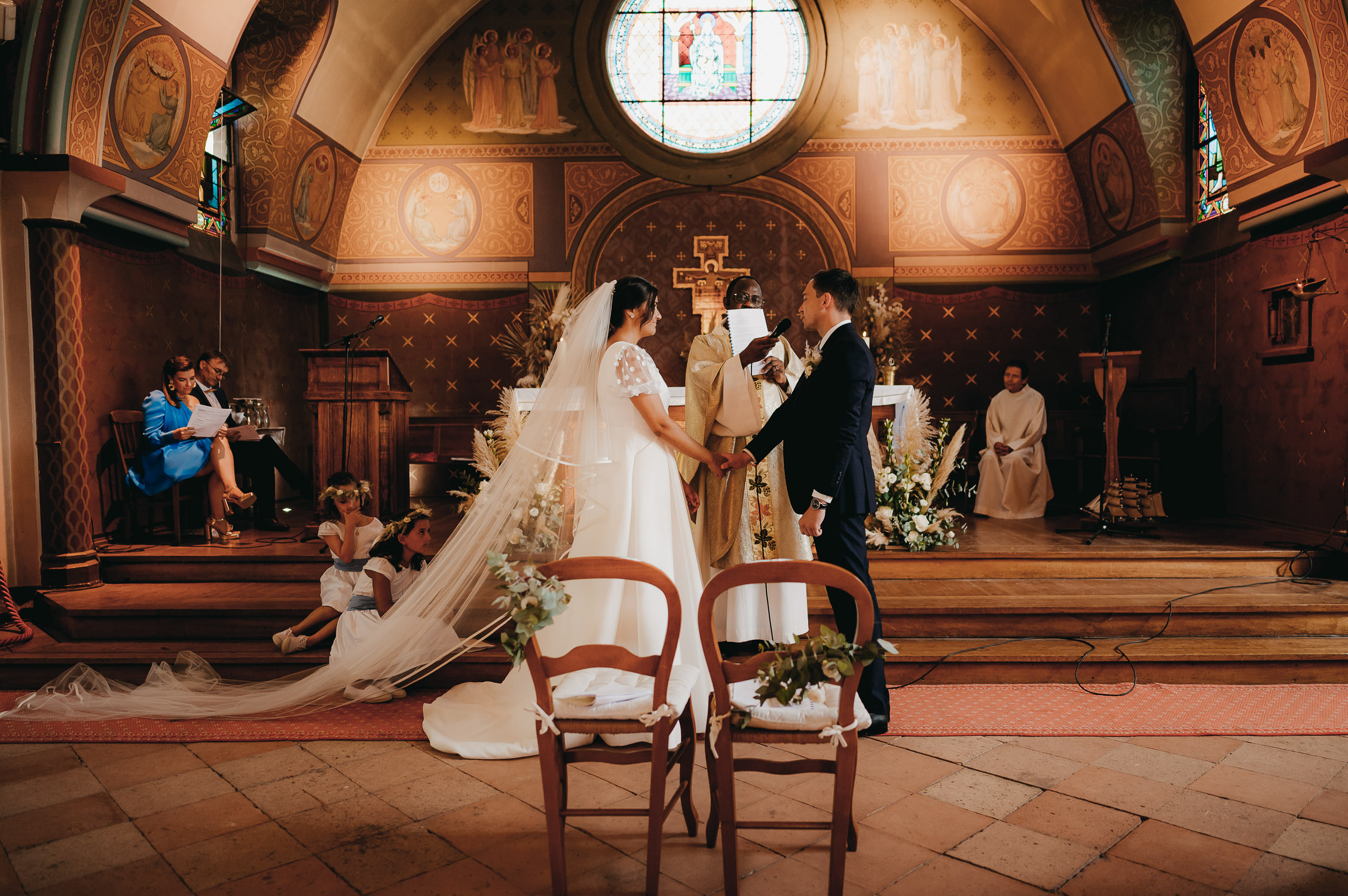 La distance ne nous a pas empêché de préparer leur jour J ! Bien au contraire. Nous avons beaucoup échangé en amont sur leur mariage via WhatsApp. Ils m’ont partagé les photos de leur premier mariage civil à Lille, les week-ends en famille, les sorties avec les amis. Et quand ces derniers sont descendus pour avancer sur leur mariage, nous en avons profité pour boire un café. Il est important pour moi de garder un lien avec mes mariés tout au long des préparatifs. Ces échanges sont des indices pour adapter mon reportage à leur image.