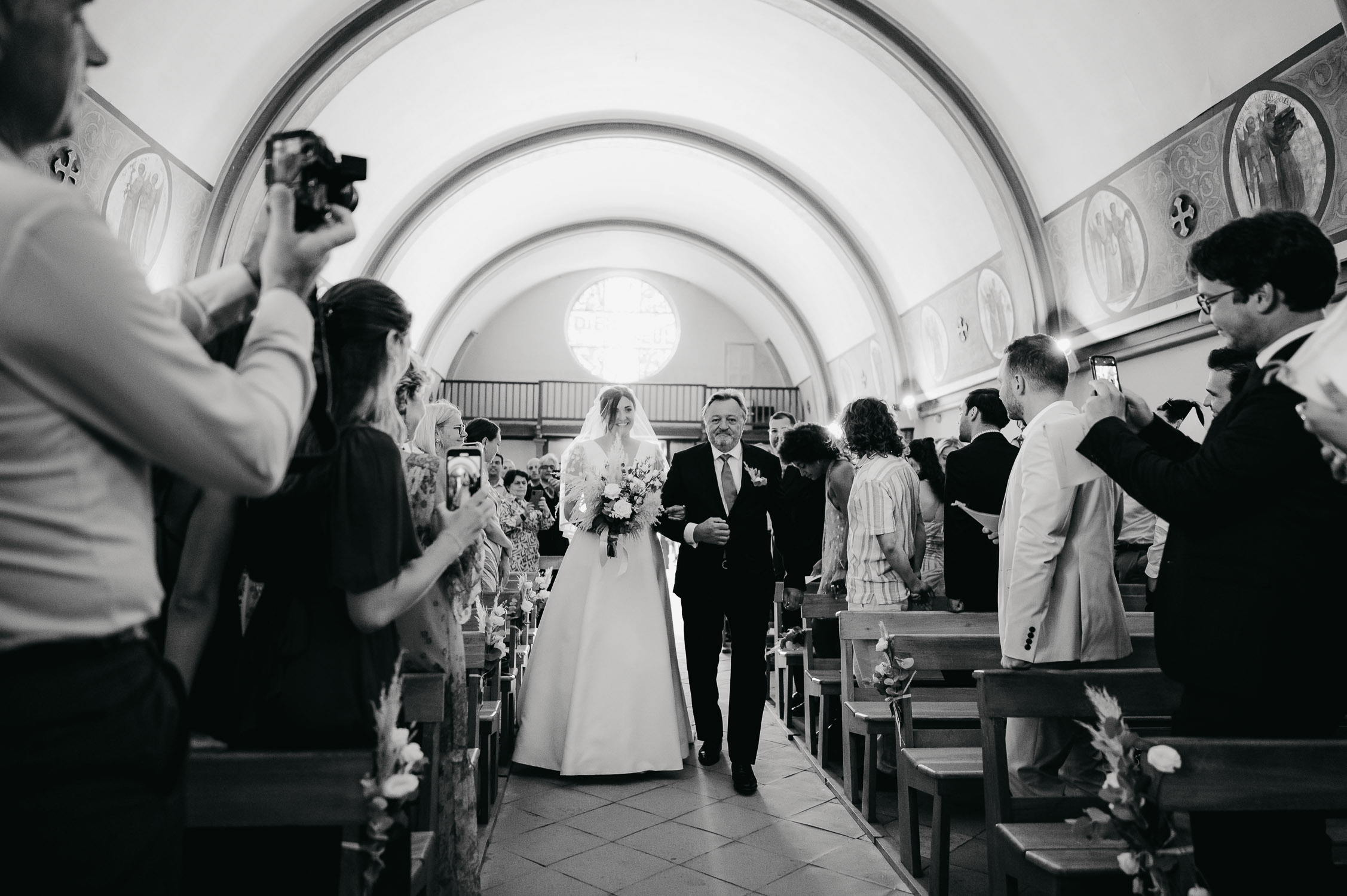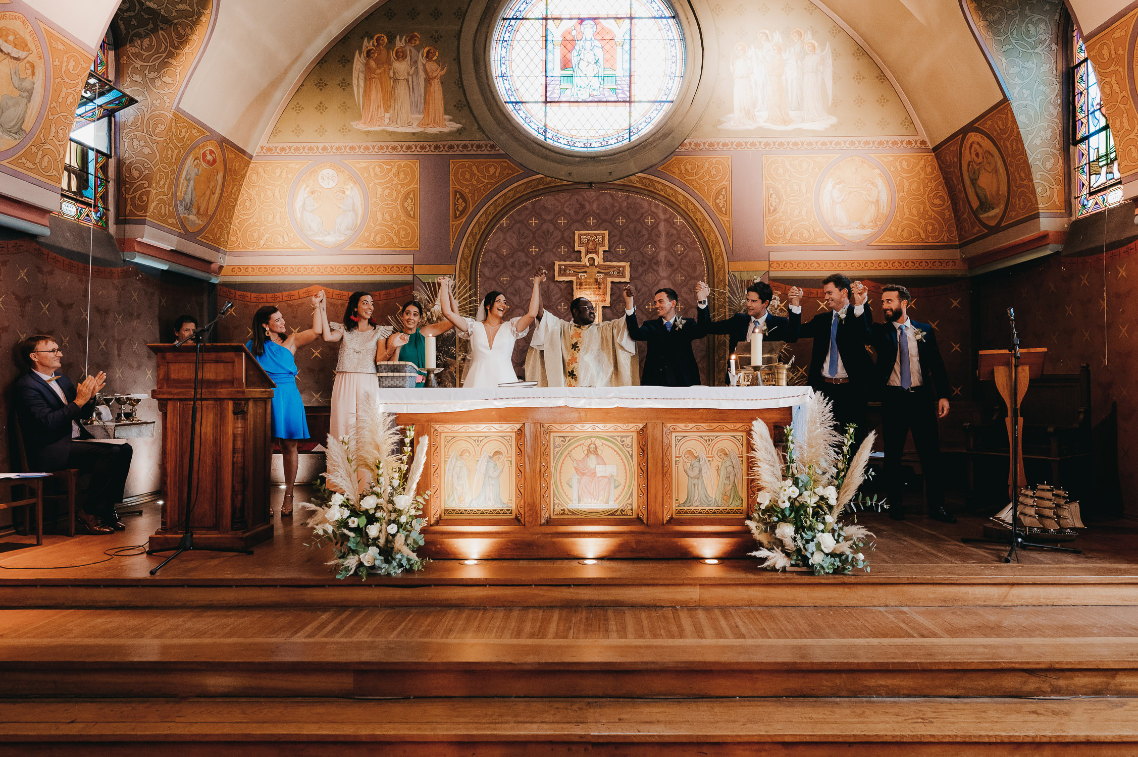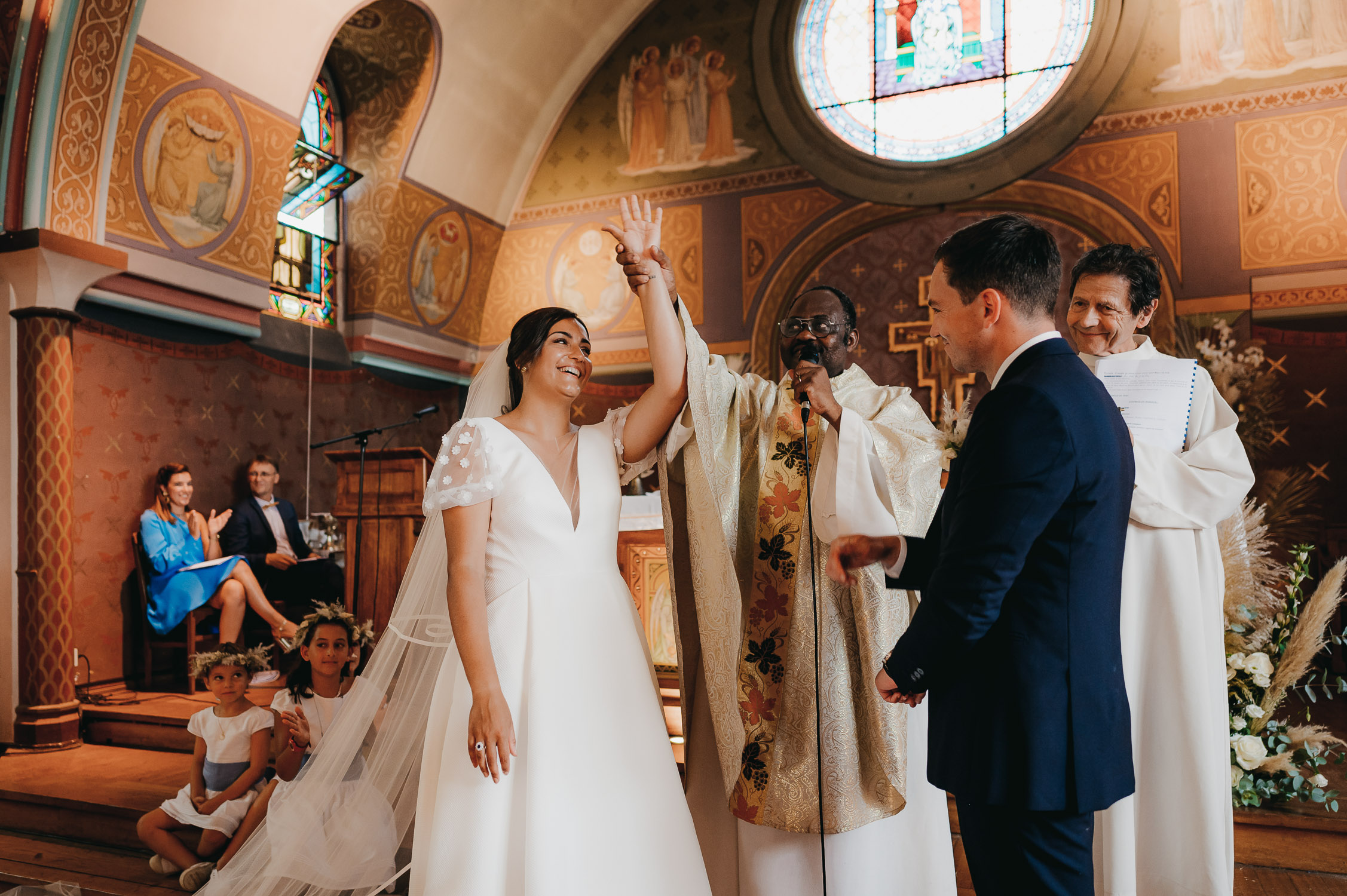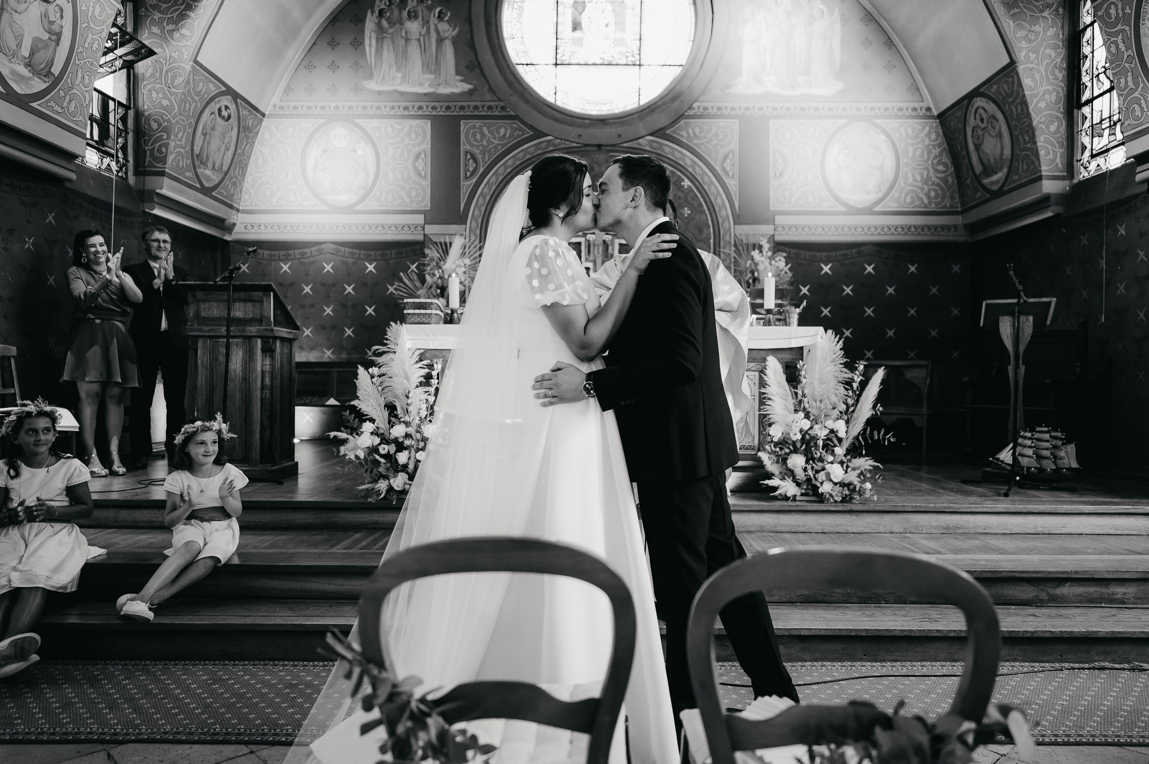 Leur mariage fut pour moi une journée agréable à vivre en tant que photographe de mariage. Mille énergies et émotions ont imprégnés cette journée. Je me souviendrais des préparatifs de chacun entourés de leurs familles et amis, de l’accueil du prêtre et de ses recommandations me concernant « Soit la MOINS discrète possible ! Je veux que tu prennes toutes les photos possibles ! » (oui oui, vous avez bien lu.), l’ambiance explosive de la cérémonie, leur cocktail et ses surprises dans le jardin du Tir au Vol, de l’ambiance survoltée qui ont accompagnée toute leur soirée, de la meilleure vidéo/montage des amis d’Arnaud que j’ai pu voir sur mes 10 ans de carrière !